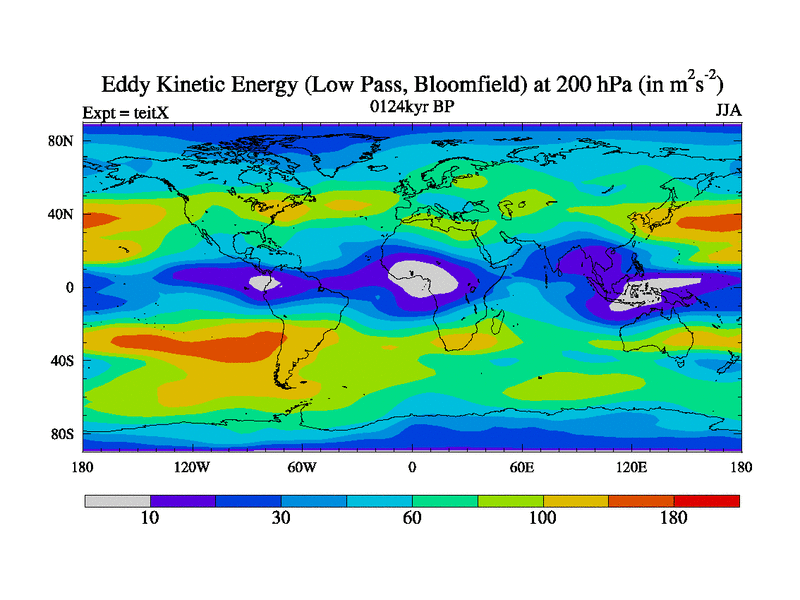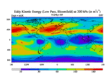 Low Pass Eddy Kinetic Energy at 200 hPa