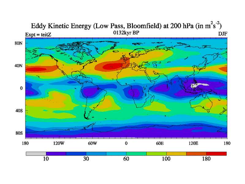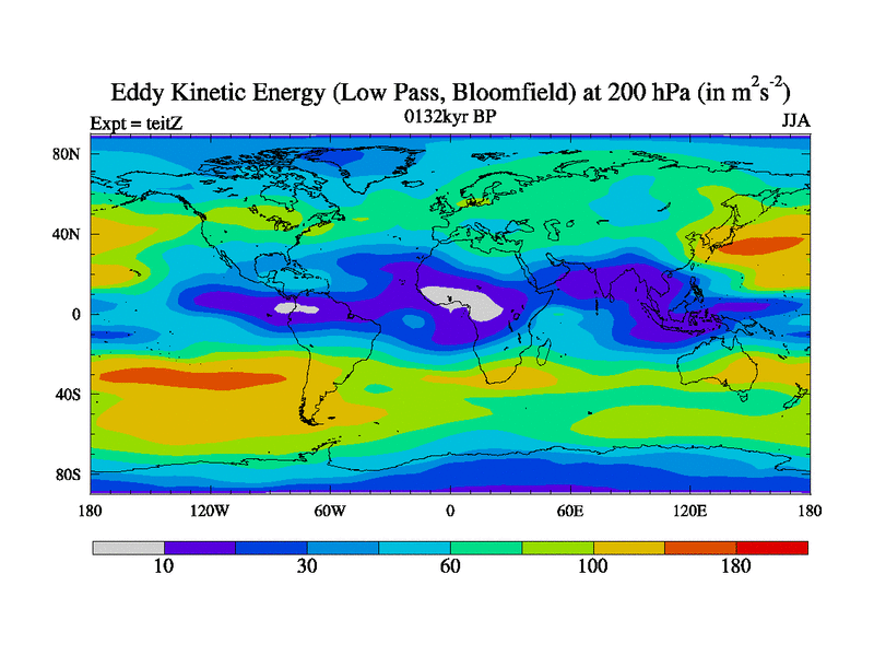 Low Pass Eddy Kinetic Energy at 200 hPa