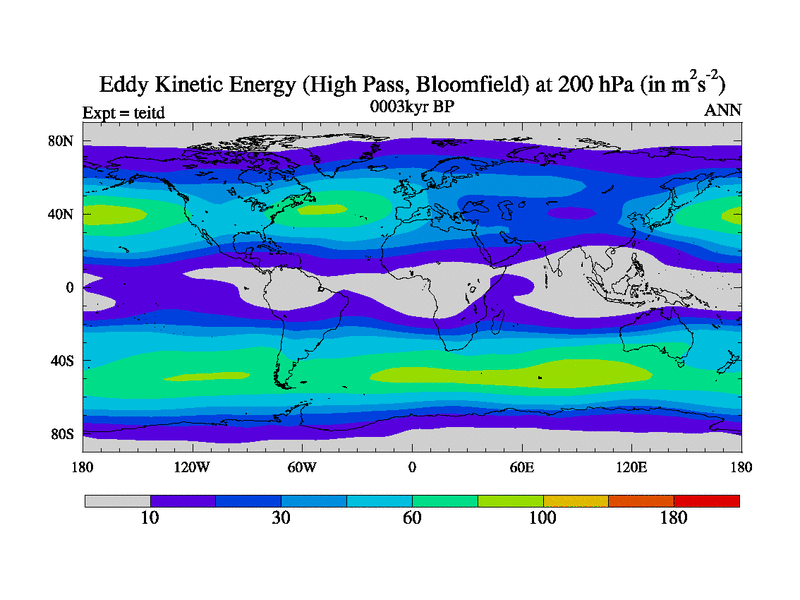 High Pass Eddy Kinetic Energy at 200 hPa