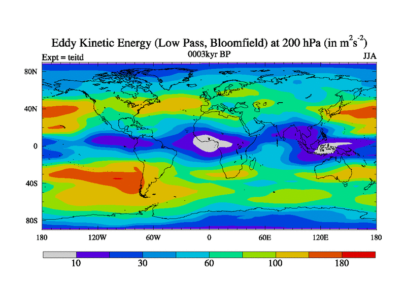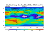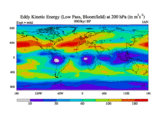 Low Pass Eddy Kinetic Energy at 200 hPa