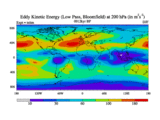 Low Pass Eddy Kinetic Energy at 200 hPa