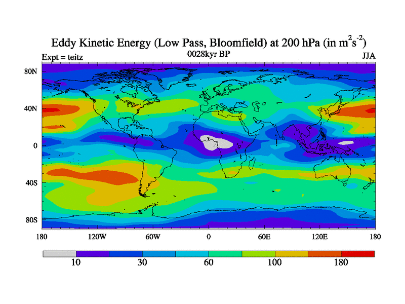 Low Pass Eddy Kinetic Energy at 200 hPa