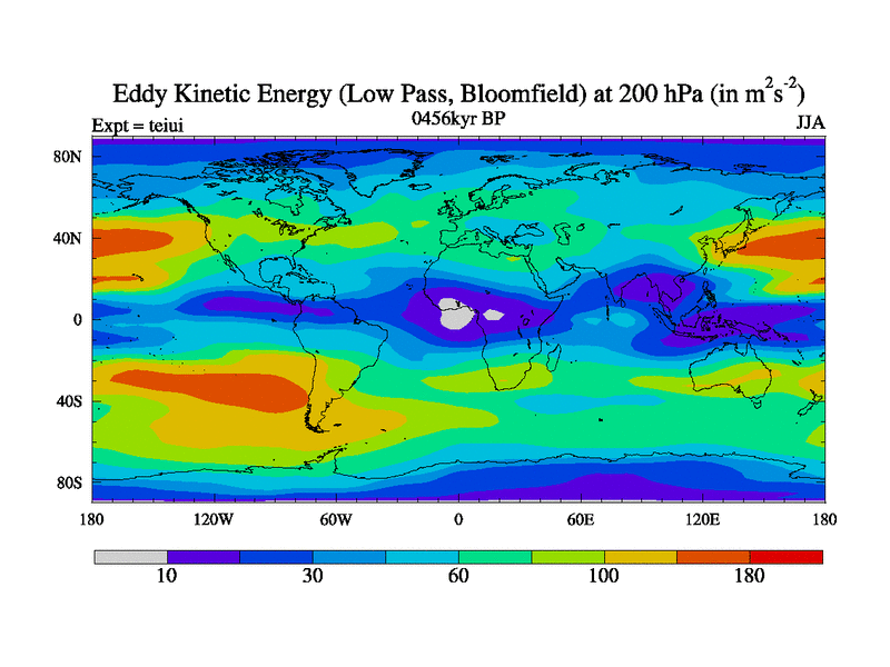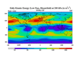 Low Pass Eddy Kinetic Energy at 200 hPa