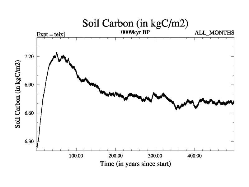 This is the pre-industrial simulation for a new set of BBC long runs using TRIFFID. dynamic mode, started from teii set of simulations (new BBC equilibrium TRIFFID runs). This version includes the dark_respiration update.