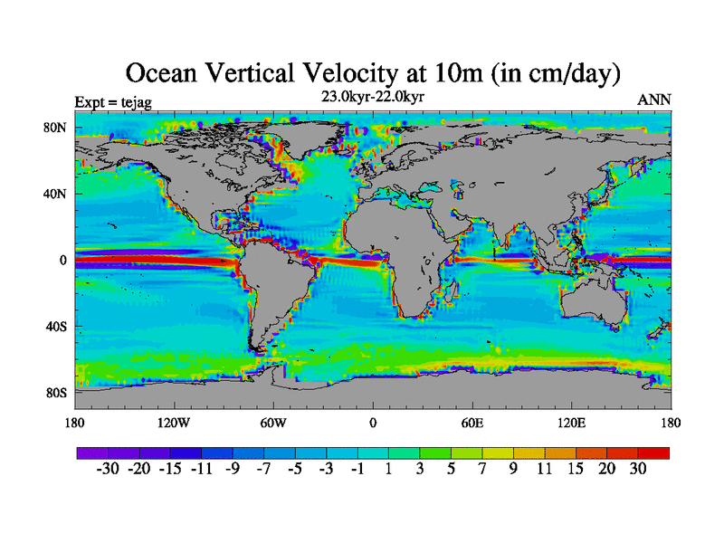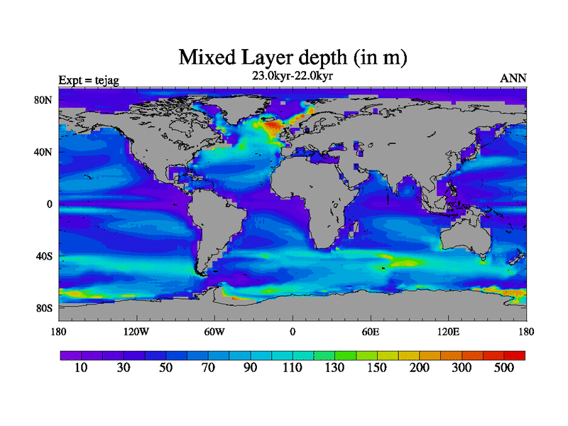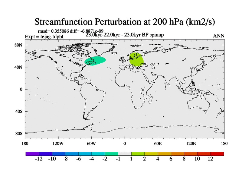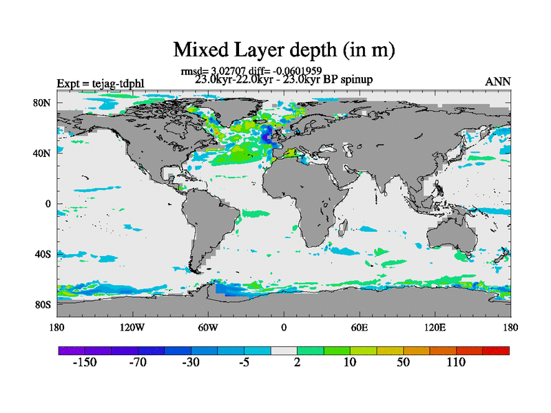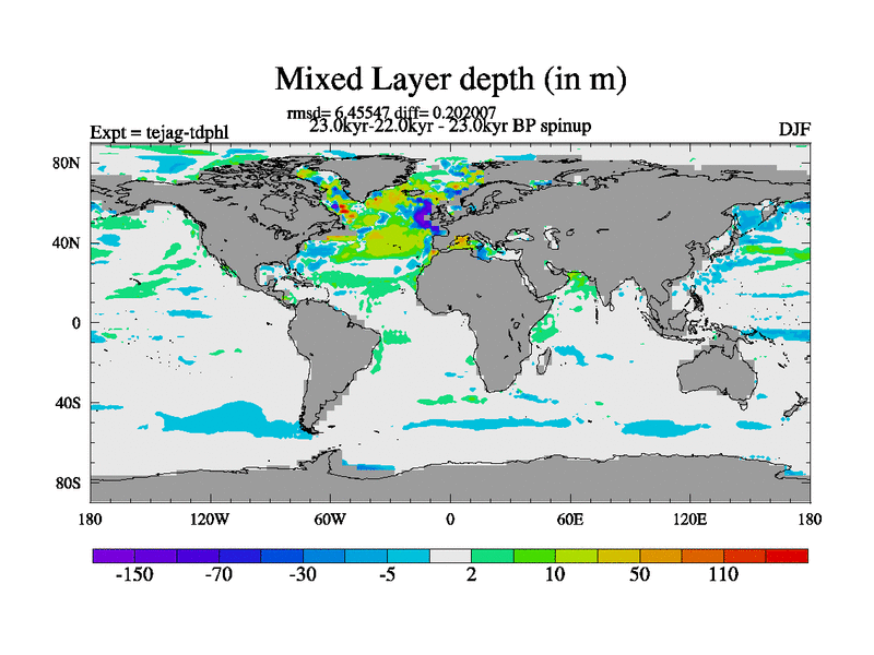 This is part of our deglaciation simulations. All forcings included except melt water fluxes. Started from the tdphl spinup. Revised runoff maps, Russian rivers to Med. |