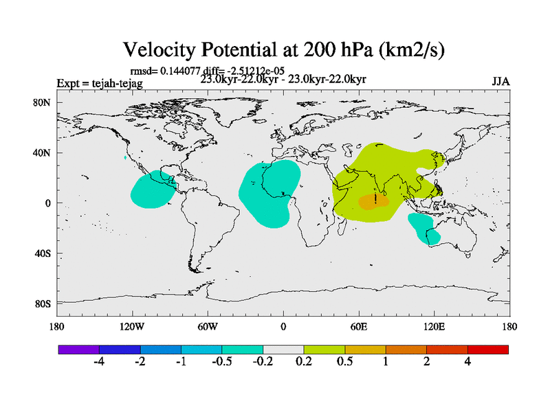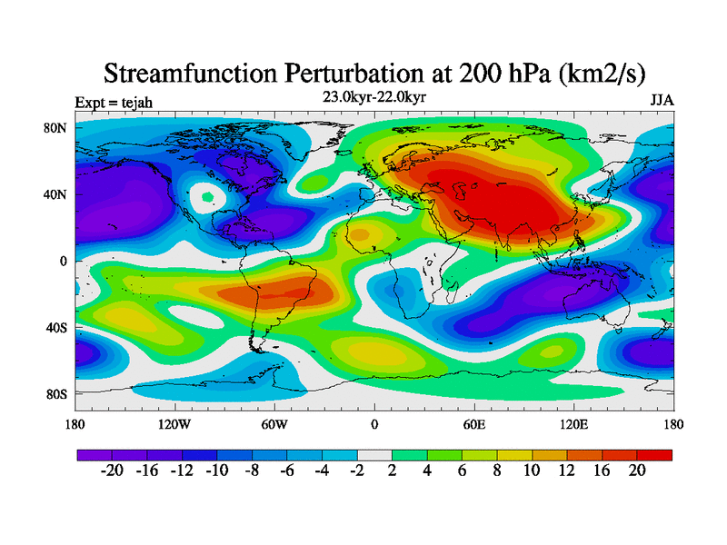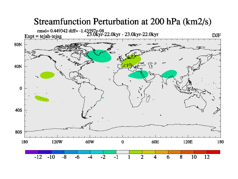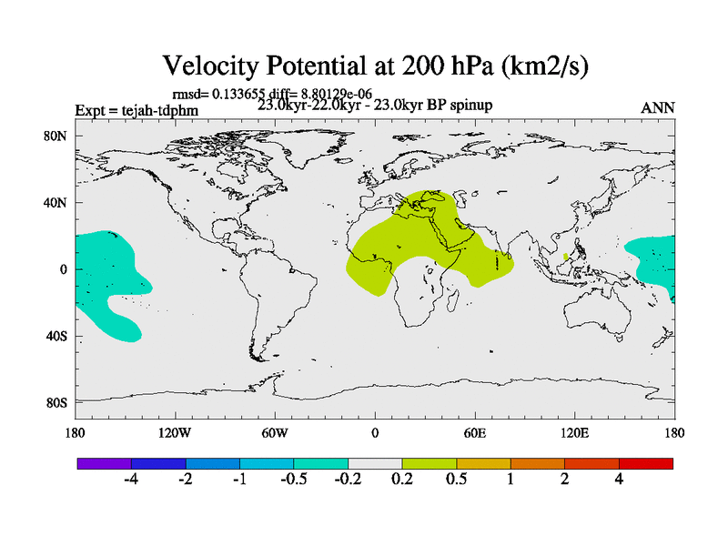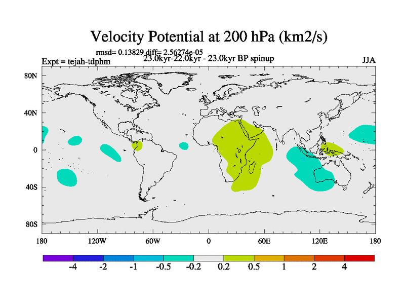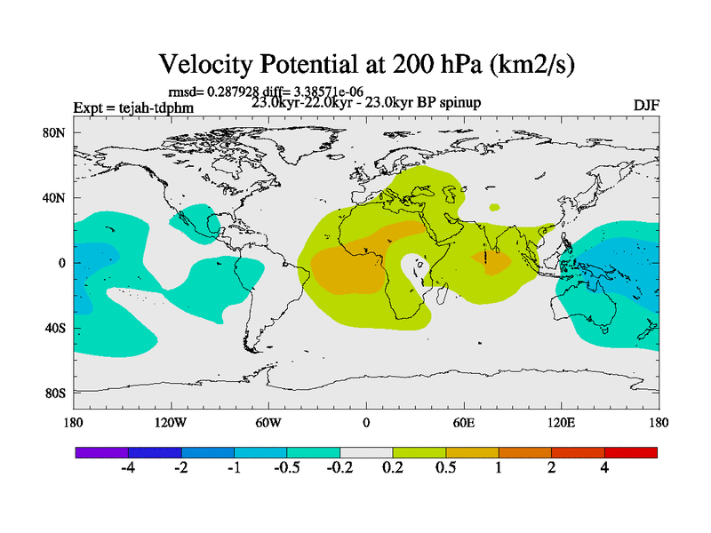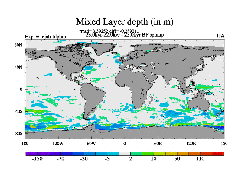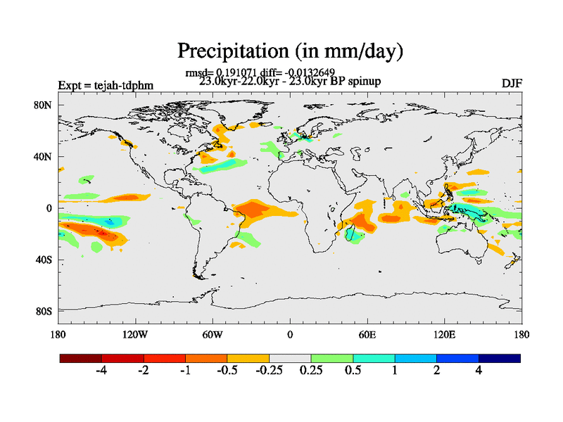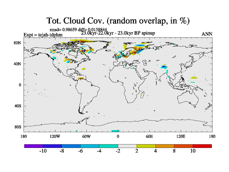 This is part of our deglaciation simulations. All forcings included except melt water fluxes. Started from the tdphm spinup. Revised runoff maps, Russian rivers to Med. This uses real meltwater fluxes. |