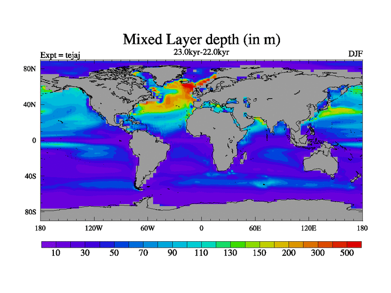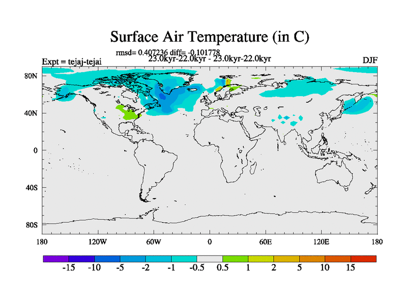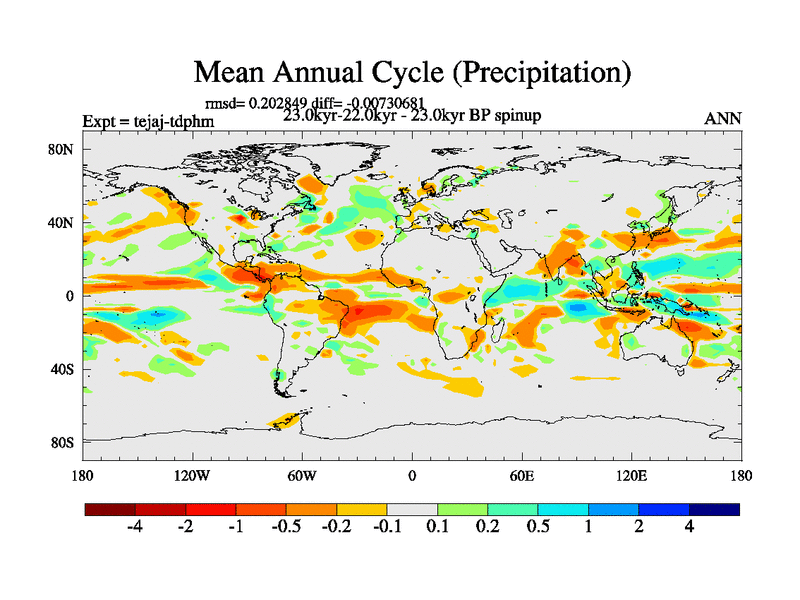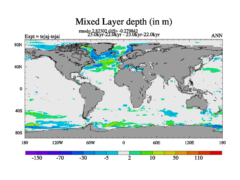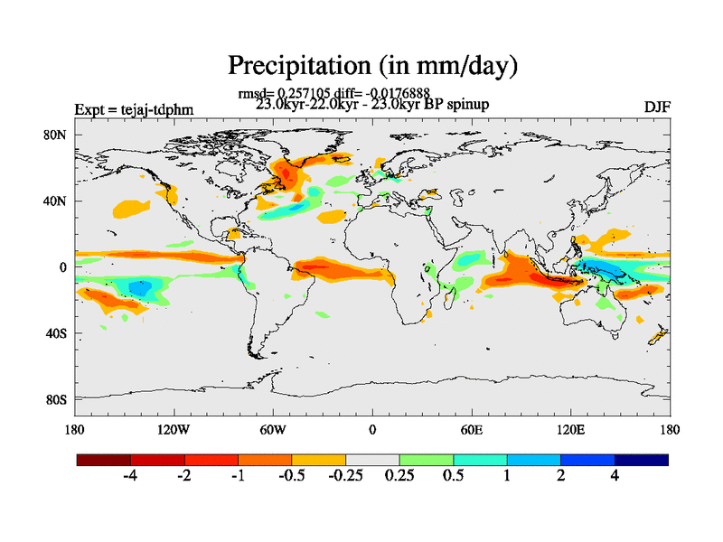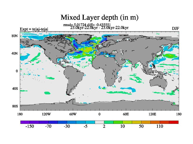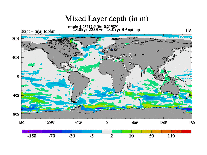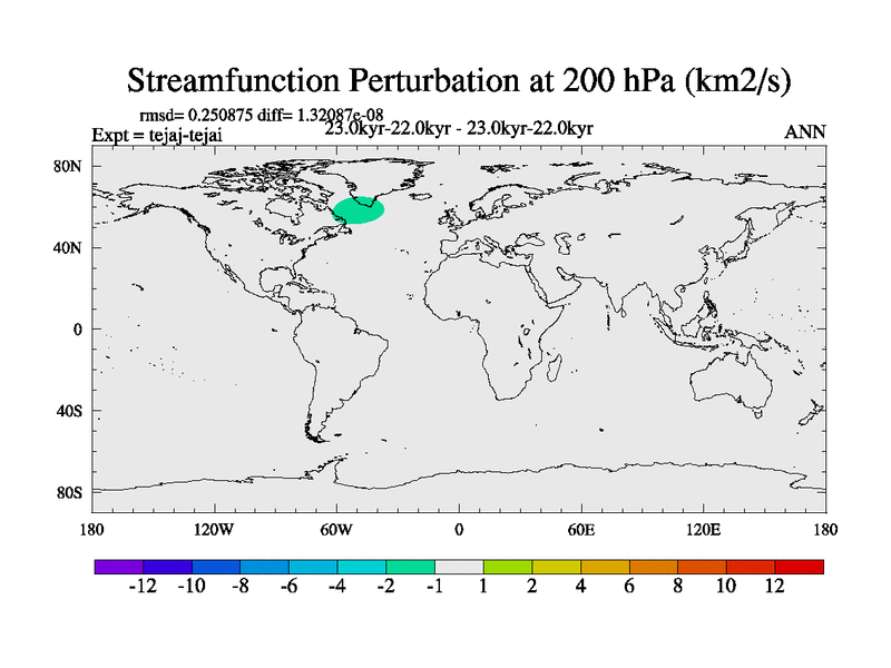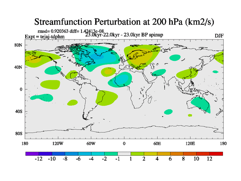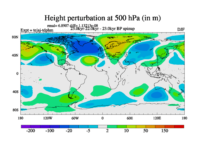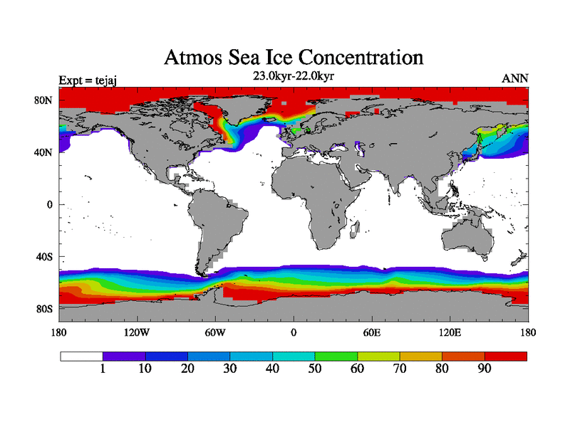 This is part of our deglaciation simulations. All forcings included except melt water fluxes. Started from the tdphm spinup. Revised runoff maps, Russian rivers to Arctic. This version with real meltwater. |