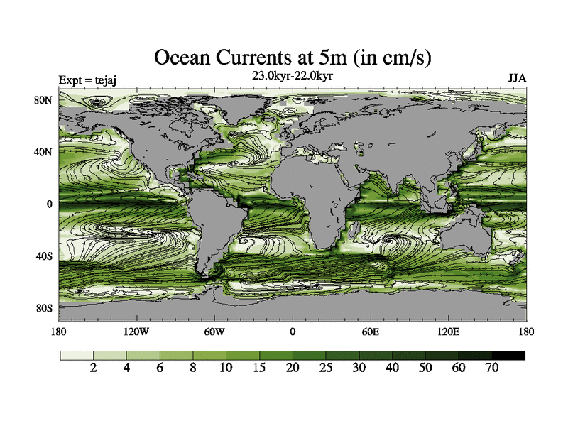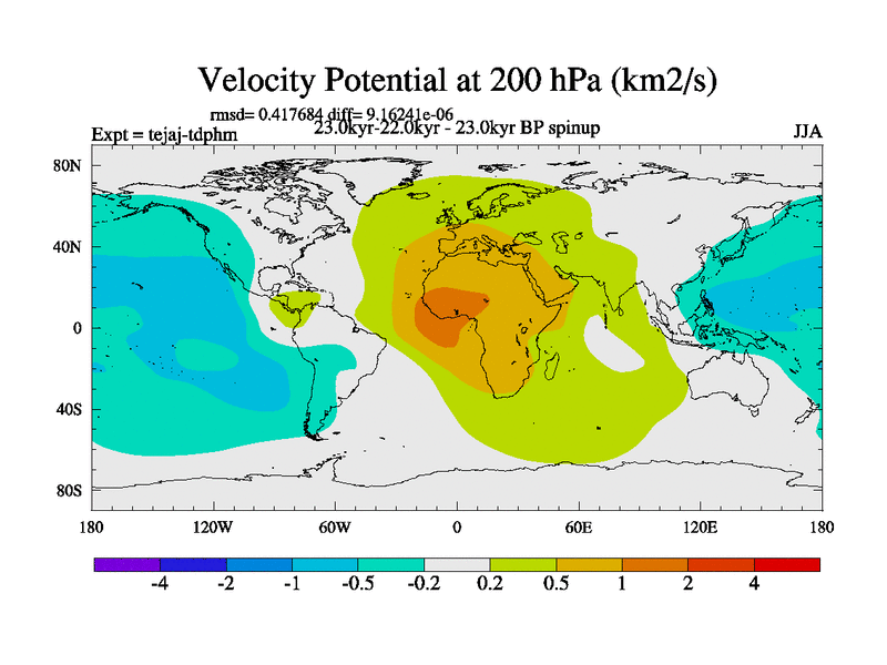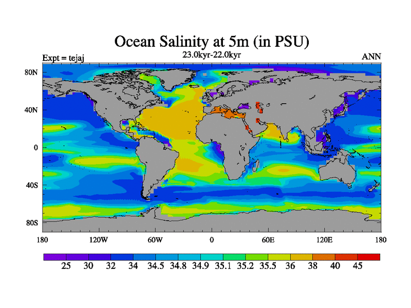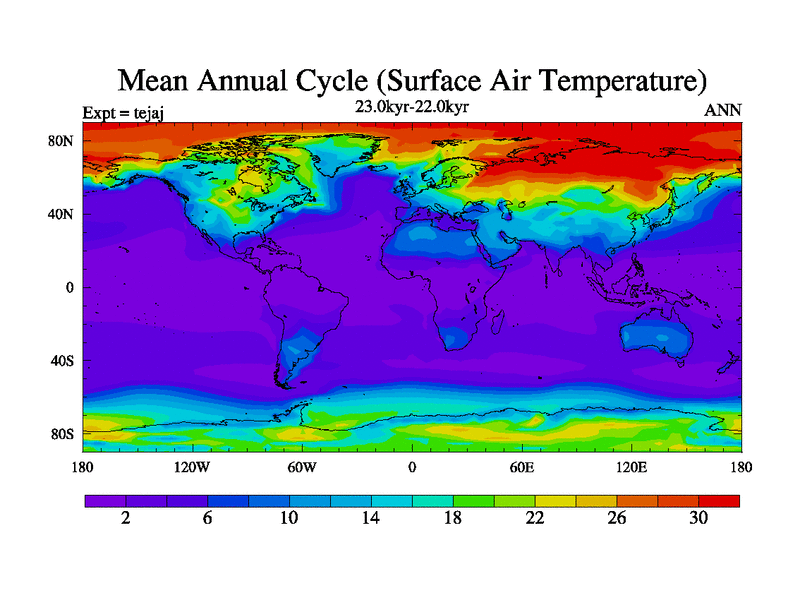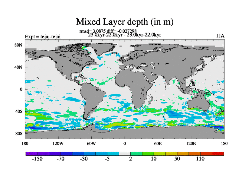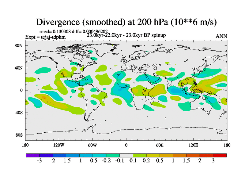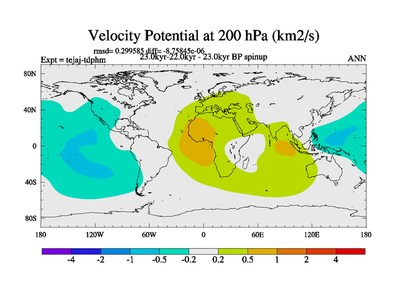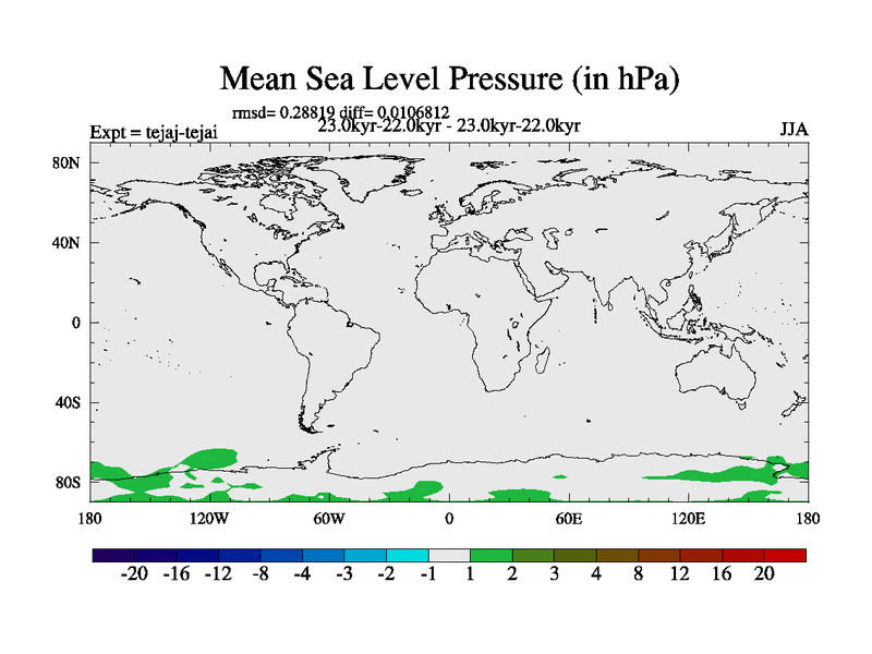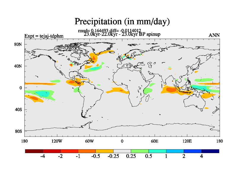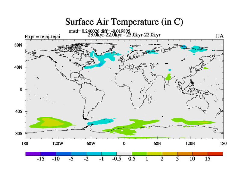 This is part of our deglaciation simulations. All forcings included except melt water fluxes. Started from the tdphm spinup. Revised runoff maps, Russian rivers to Arctic. This version with real meltwater. |