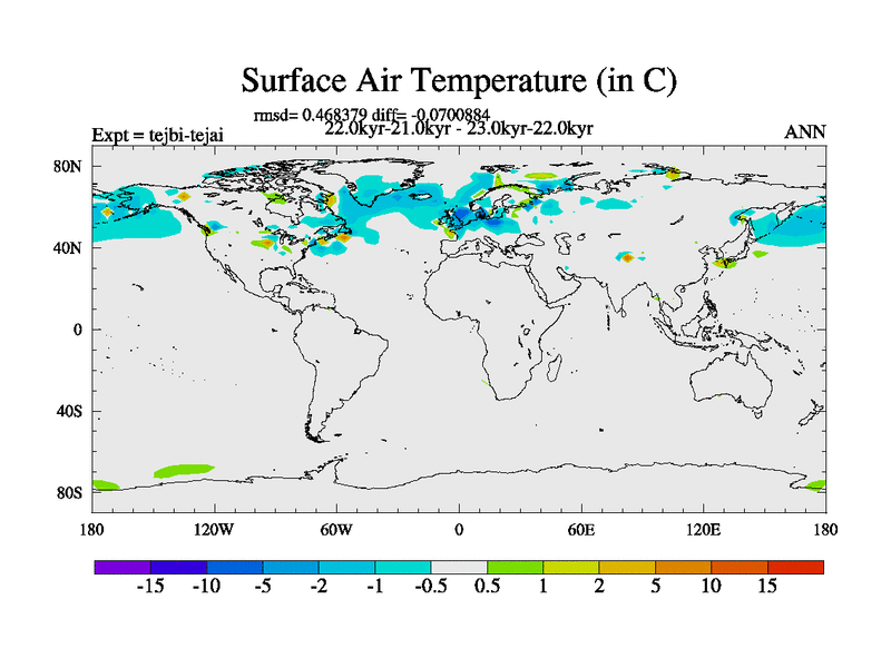 This is part of our deglaciation simulations. All forcings included except melt water fluxes. This series originally started from the tdphl spinup. Revised runoff maps, Russian rivers to Arctic. |