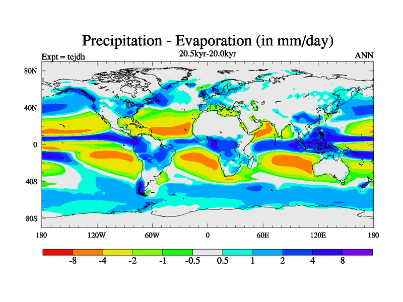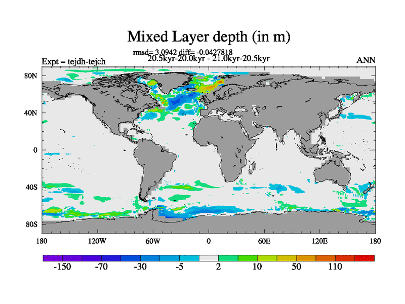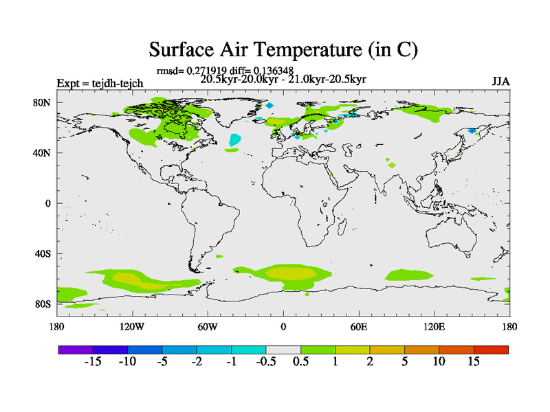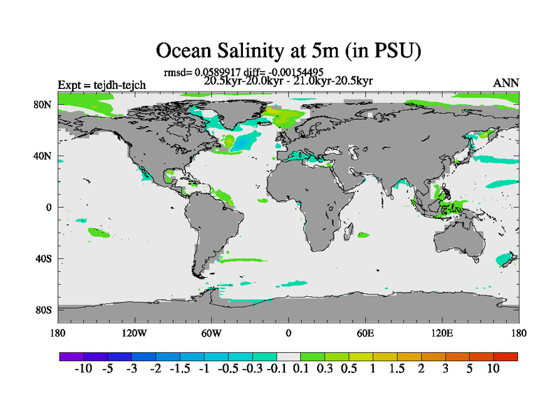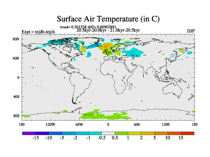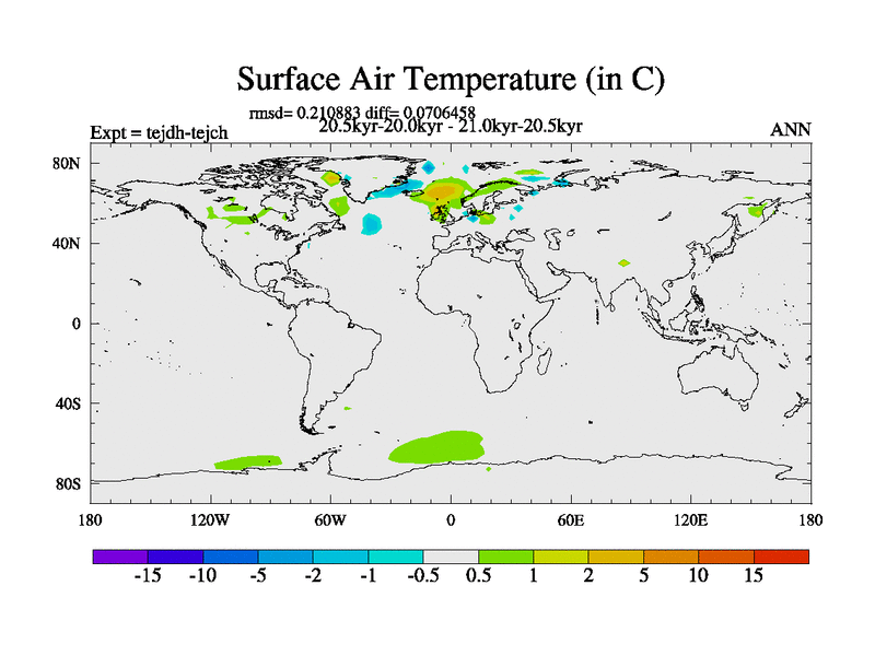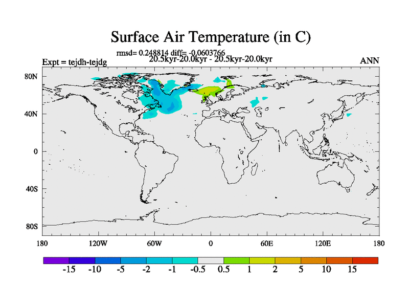 This is part of our deglaciation simulations. All forcings included except melt water fluxes. This series originally started from the tdphm spinup. Revised runoff maps, Russian rivers to Med. This vresion uses real meltwater fluxes.