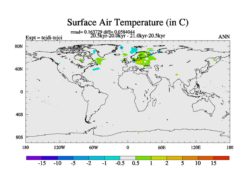This is part of our deglaciation simulations. All forcings included except melt water fluxes. This series originally started from the tdphl spinup. Revised runoff maps, Russian rivers to Arctic. |