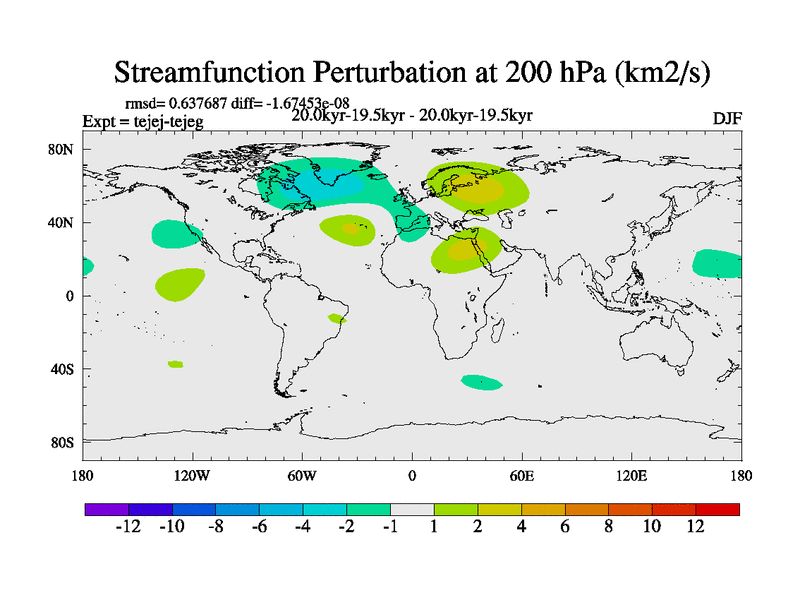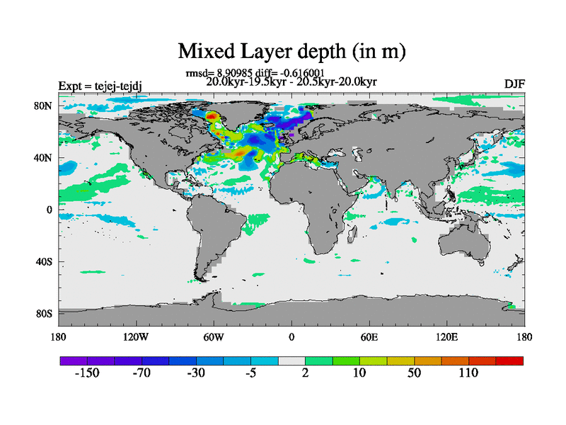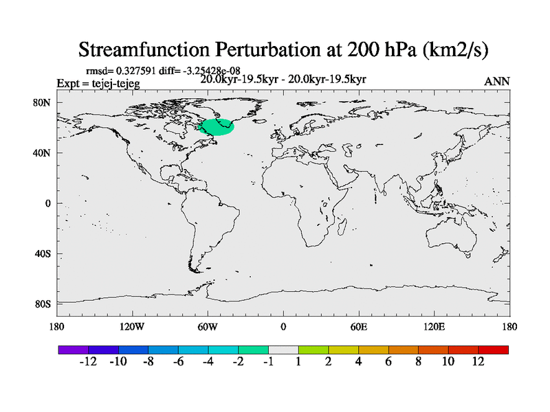 This is part of our deglaciation simulations. All forcings included except melt water fluxes. This series originally started from the tdphm spinup. Revised runoff maps, Russian rivers to Arctic. This vresion uses real meltwater fluxes. |