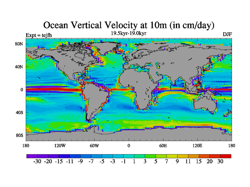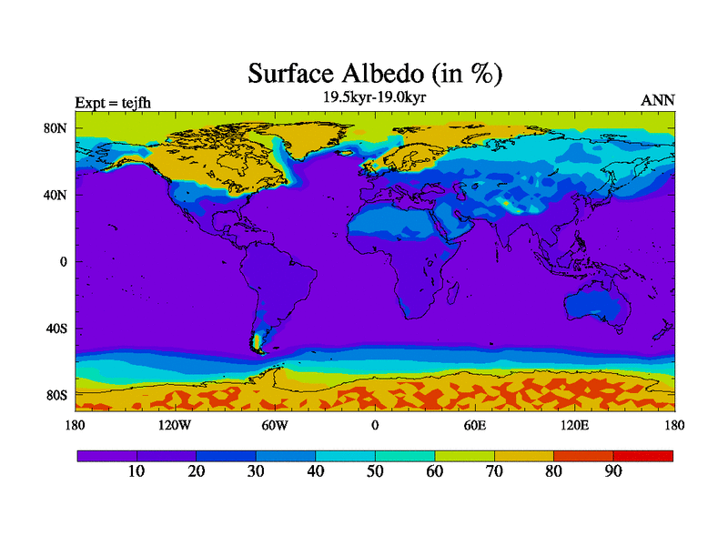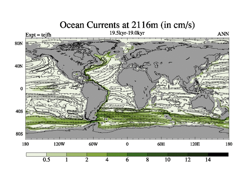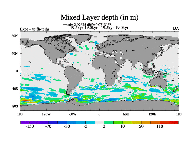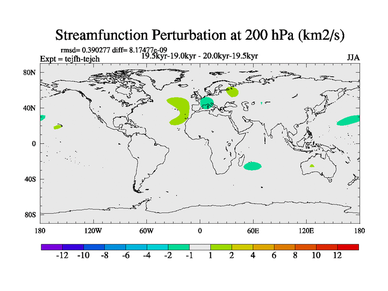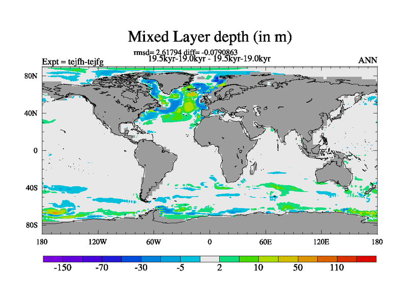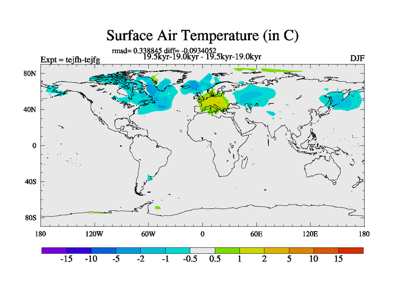 This is part of our deglaciation simulations. All forcings included except melt water fluxes. This series originally started from the tdphm spinup. Revised runoff maps, Russian rivers to Med. This vresion uses real meltwater fluxes. |