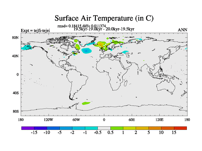 This is part of our deglaciation simulations. All forcings included except melt water fluxes. This series originally started from the tdphl spinup. Revised runoff maps, Russian rivers to Arctic. |