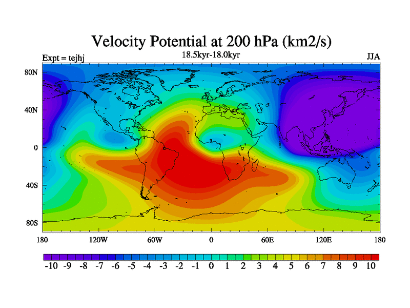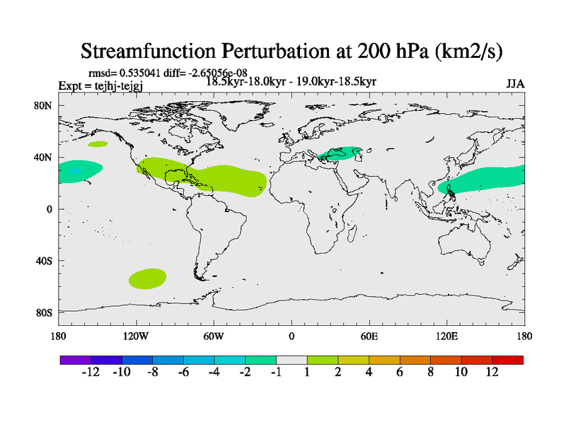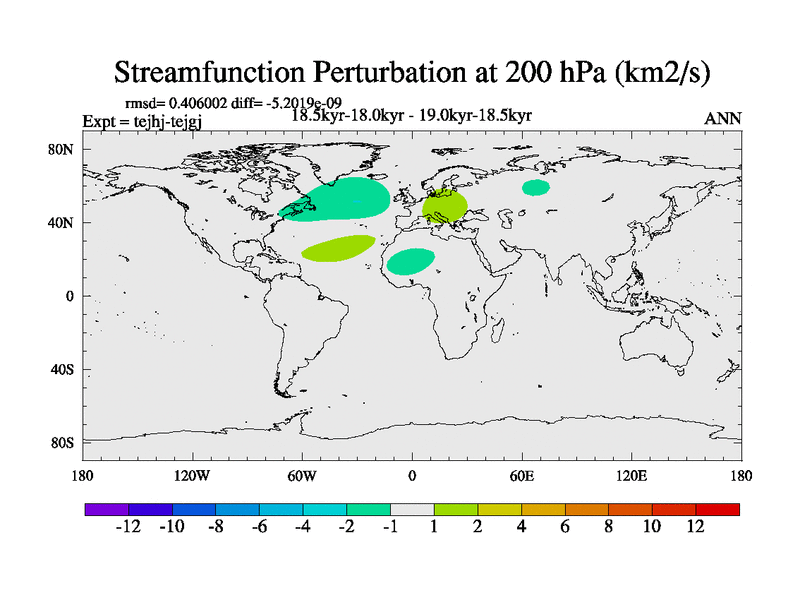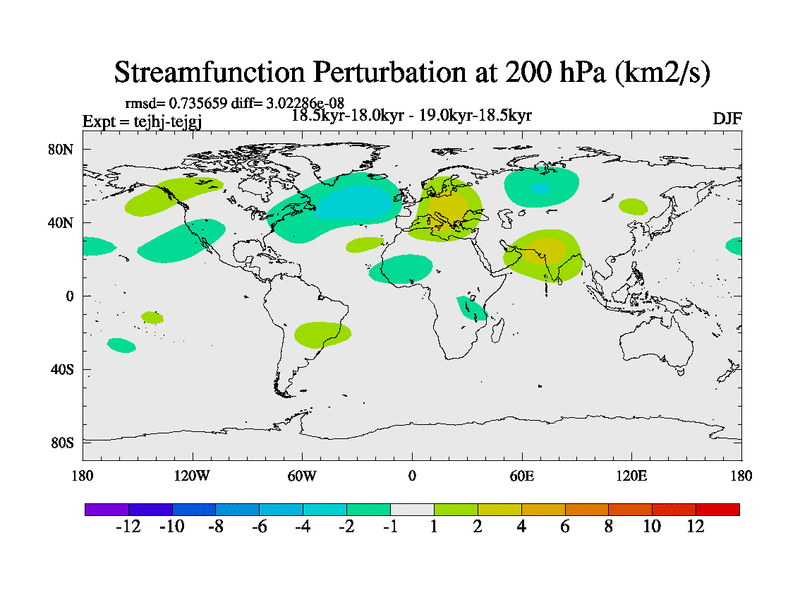This is part of our deglaciation simulations. All forcings included except melt water fluxes. This series originally started from the tdphm spinup. Revised runoff maps, Russian rivers to Arctic. This vresion uses real meltwater fluxes. |