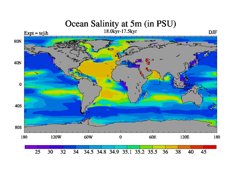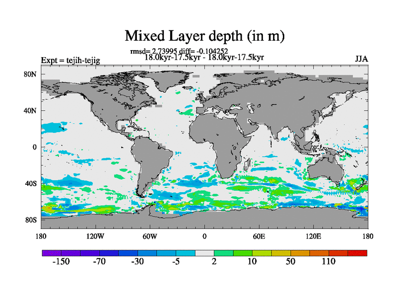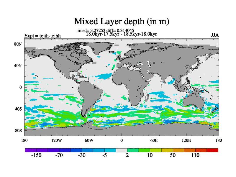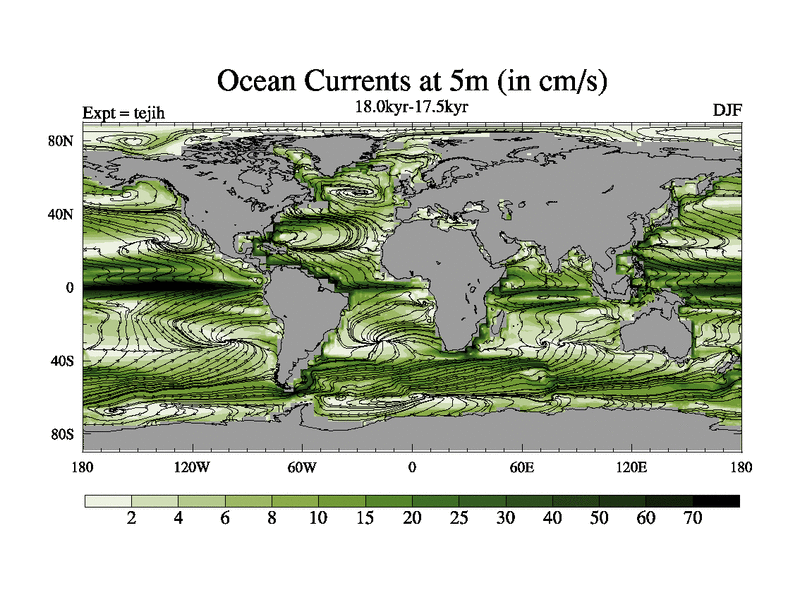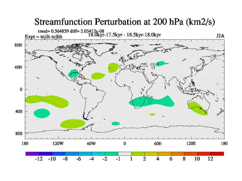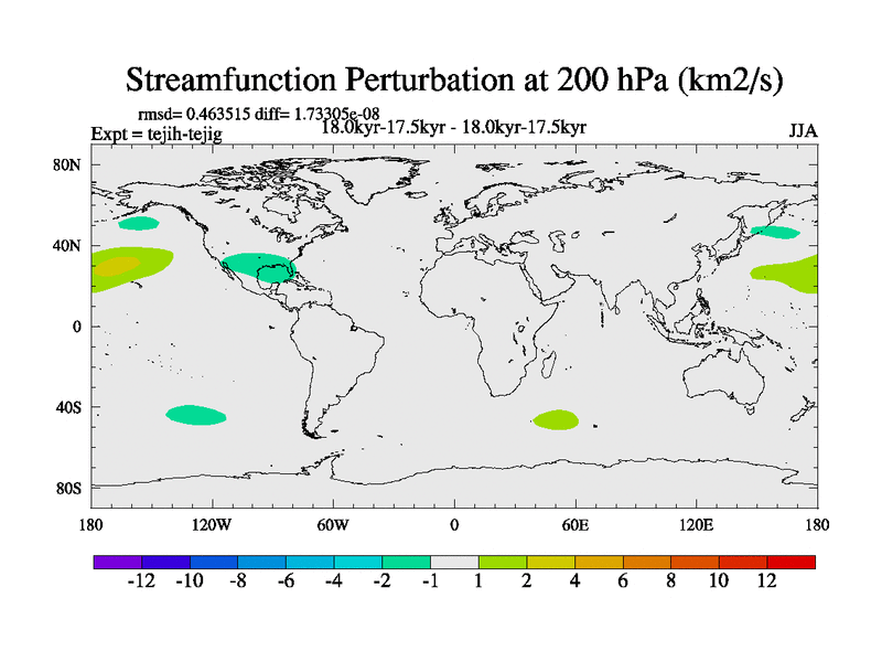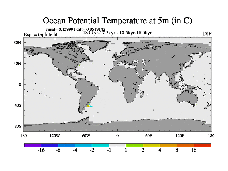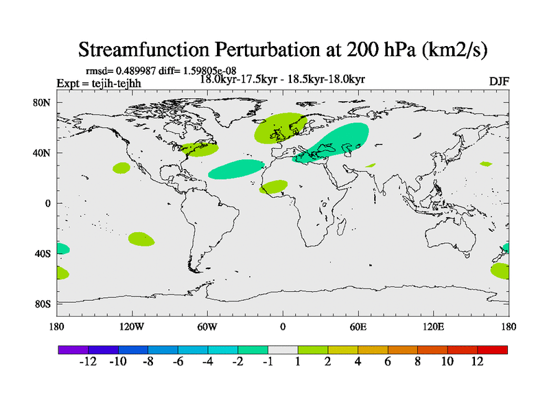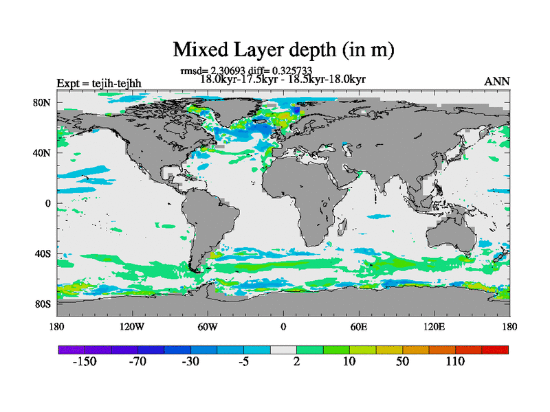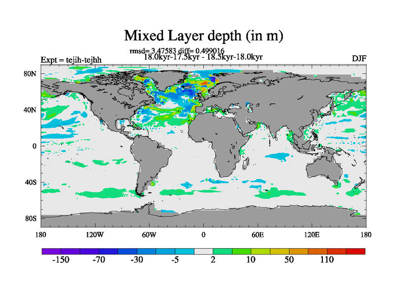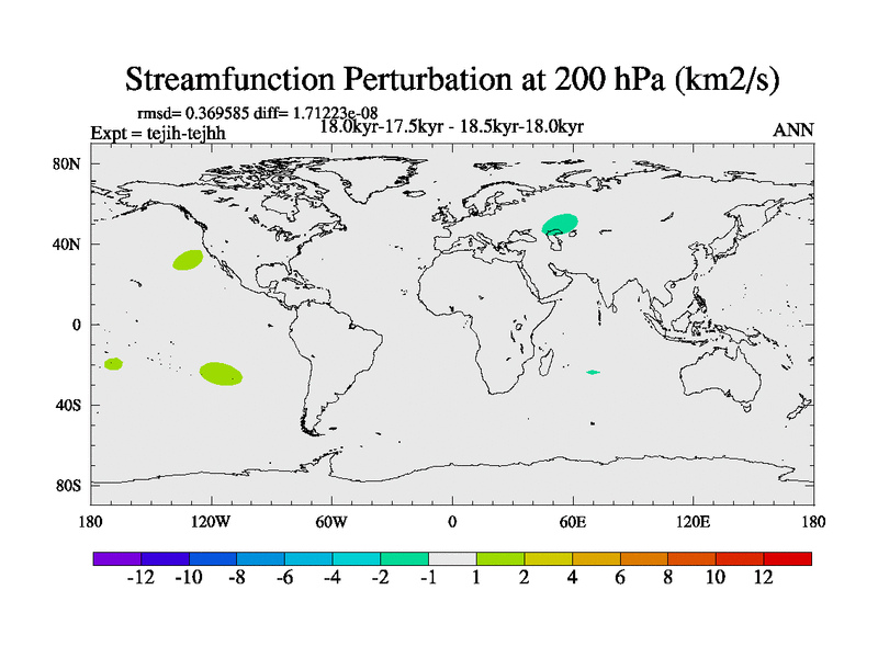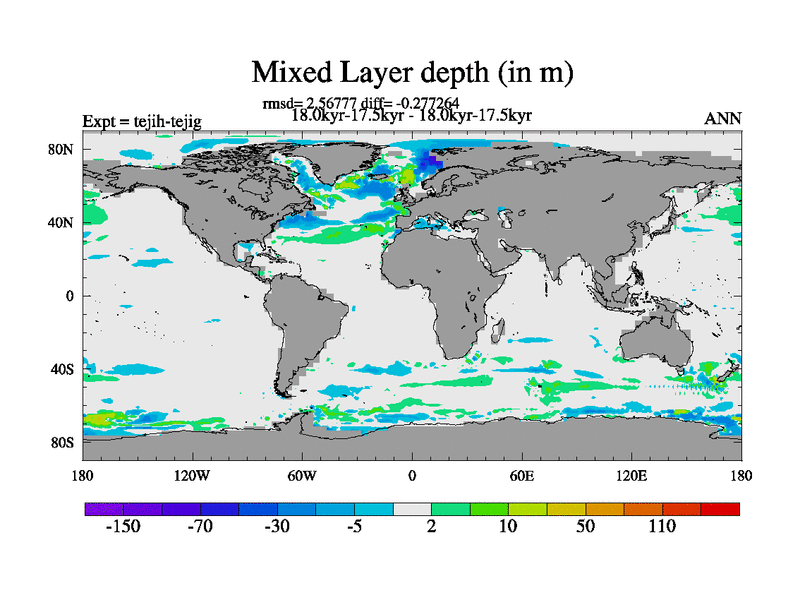This is part of our deglaciation simulations. All forcings included except melt water fluxes. This series originally started from the tdphm spinup. Revised runoff maps, Russian rivers to Med. This vresion uses real meltwater fluxes. |