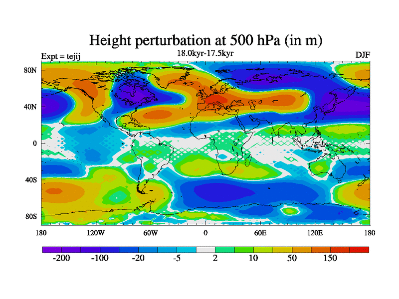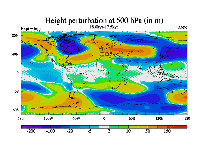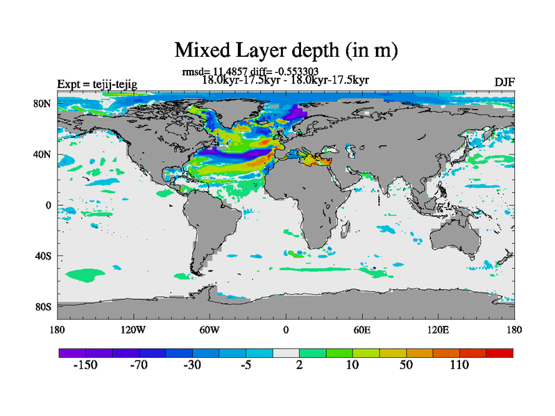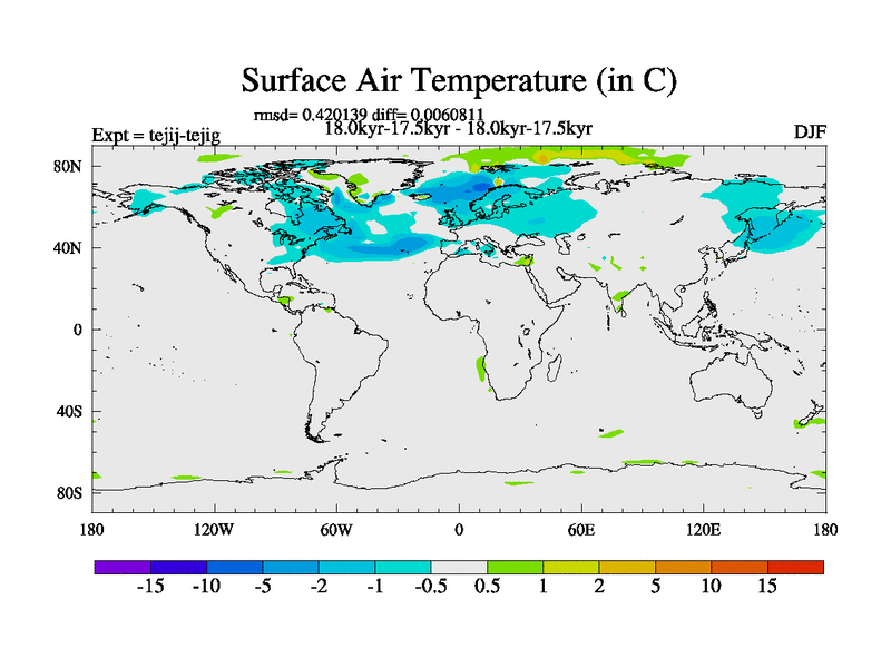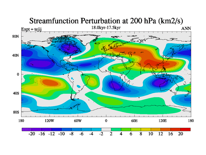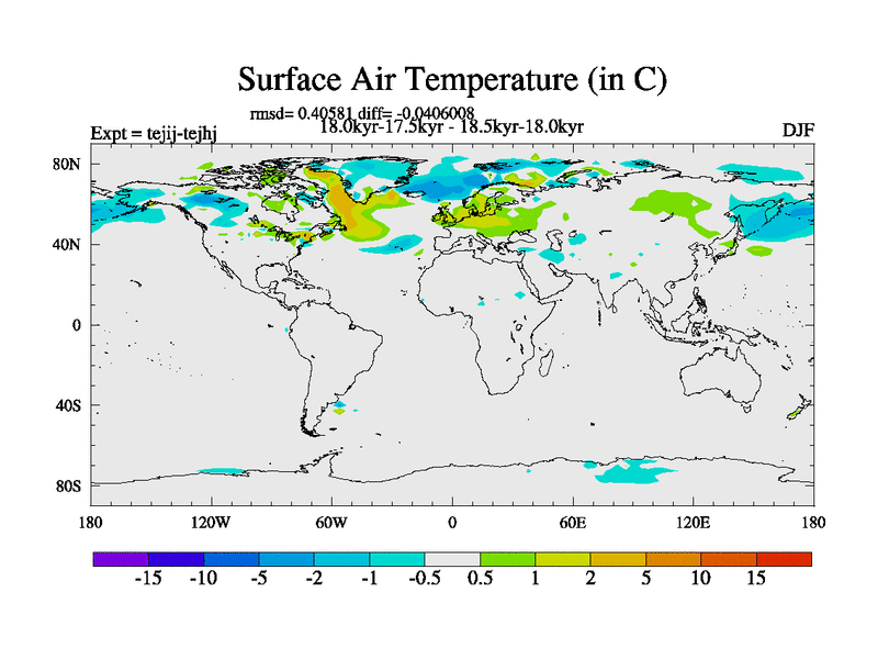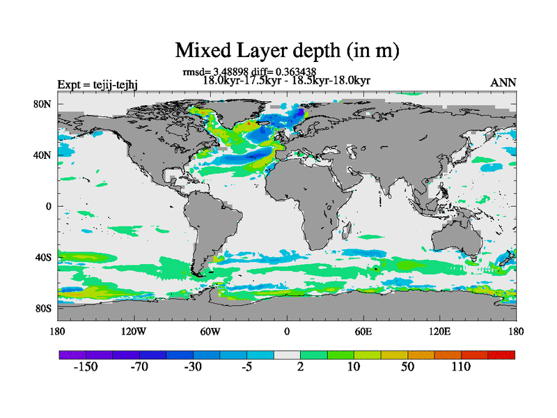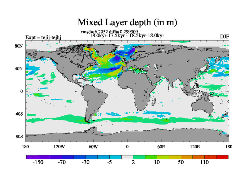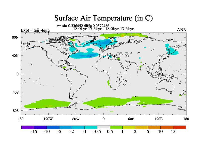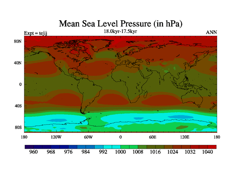 This is part of our deglaciation simulations. All forcings included except melt water fluxes. This series originally started from the tdphm spinup. Revised runoff maps, Russian rivers to Arctic. This vresion uses real meltwater fluxes. |