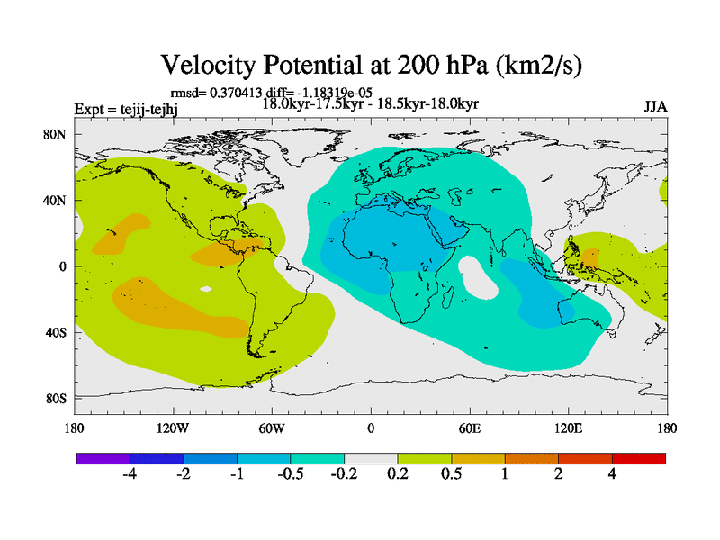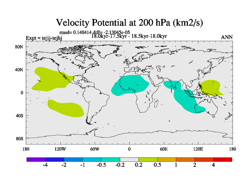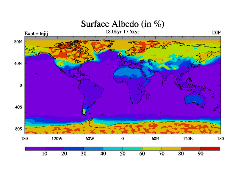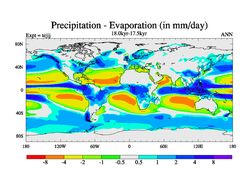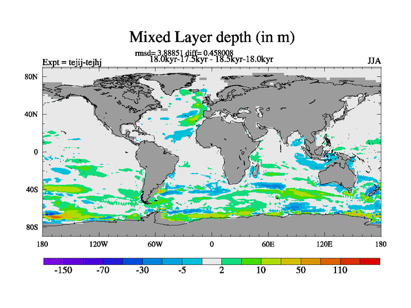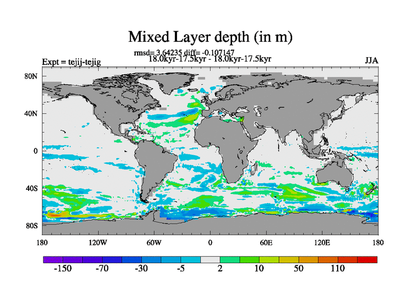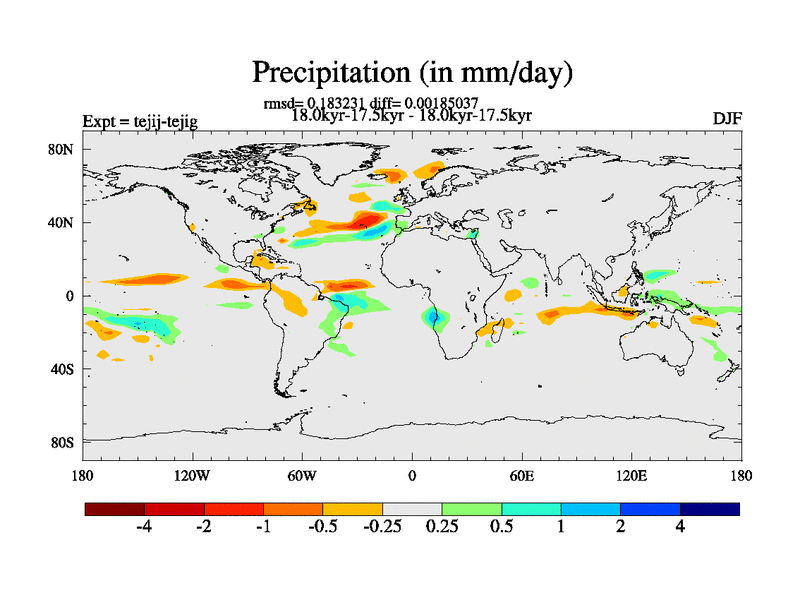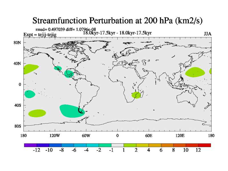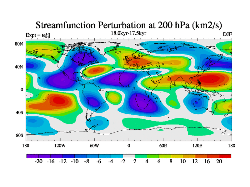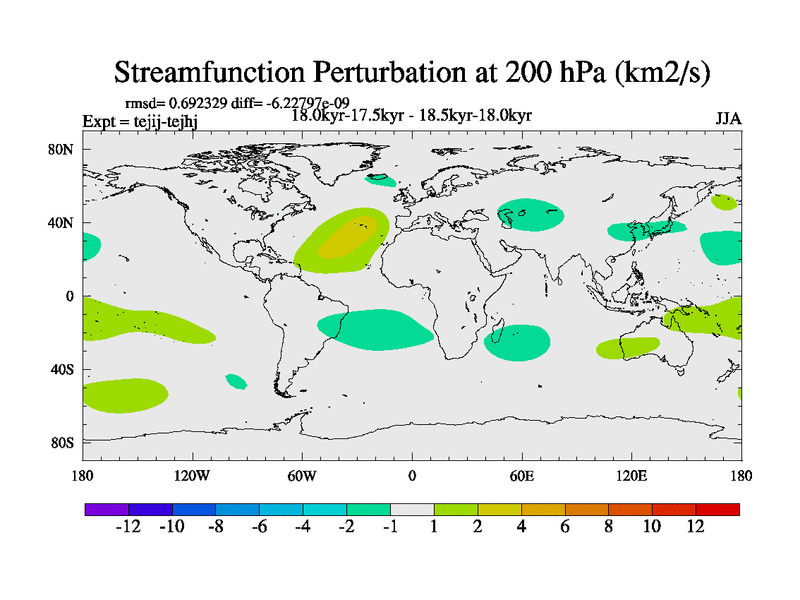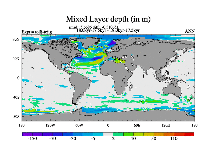 This is part of our deglaciation simulations. All forcings included except melt water fluxes. This series originally started from the tdphm spinup. Revised runoff maps, Russian rivers to Arctic. This vresion uses real meltwater fluxes. |
