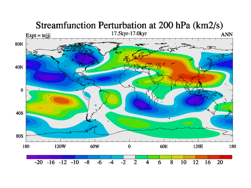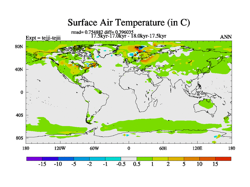 This is part of our deglaciation simulations. All forcings included except melt water fluxes. This series originally started from the tdphl spinup. Revised runoff maps, Russian rivers to Arctic. |