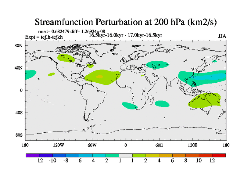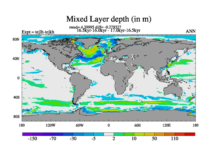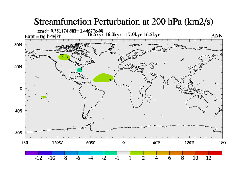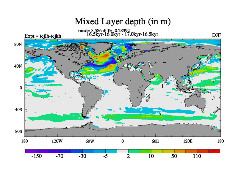 This is part of our deglaciation simulations. All forcings included except melt water fluxes. This series originally started from the tdphm spinup. Revised runoff maps, Russian rivers to Med. This vresion uses real meltwater fluxes. |