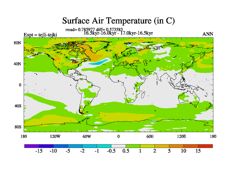 This is part of our deglaciation simulations. All forcings included except melt water fluxes. This series originally started from the tdphl spinup. Revised runoff maps, Russian rivers to Arctic. |