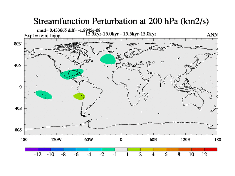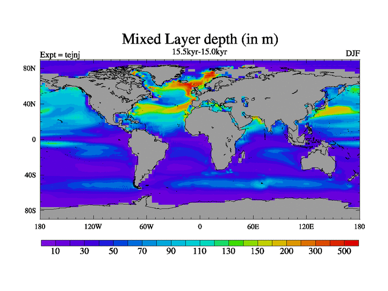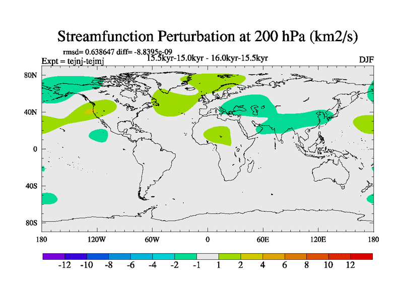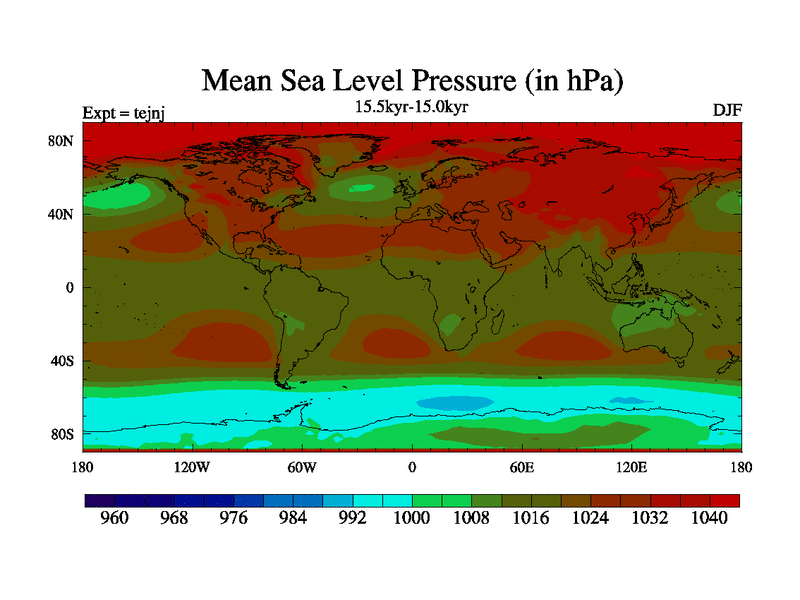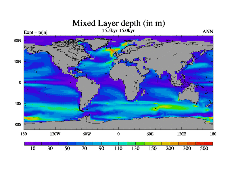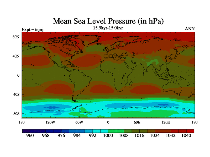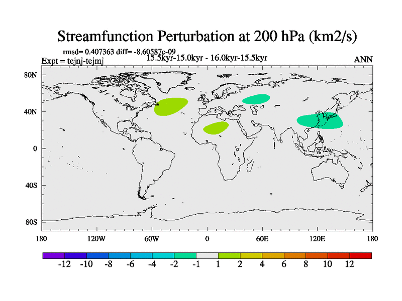 This is part of our deglaciation simulations. All forcings included except melt water fluxes. This series originally started from the tdphm spinup. Revised runoff maps, Russian rivers to Arctic. This vresion uses real meltwater fluxes. |