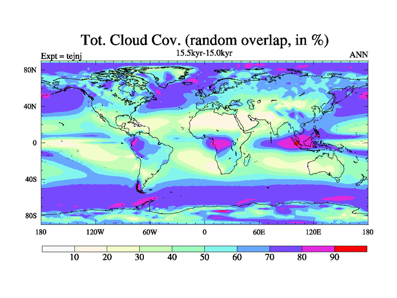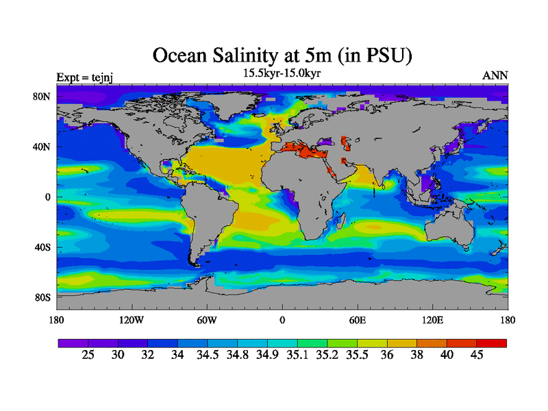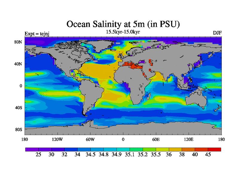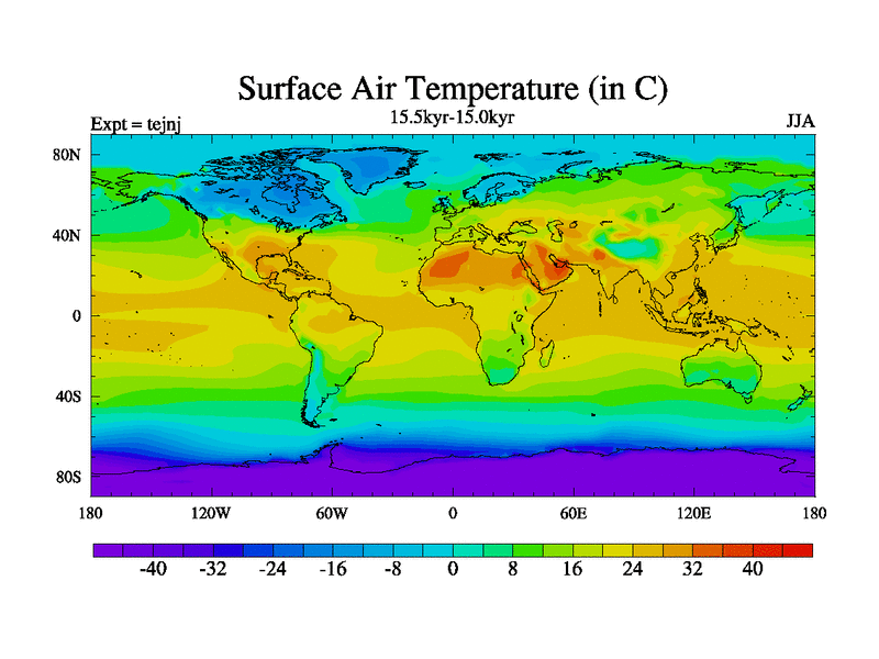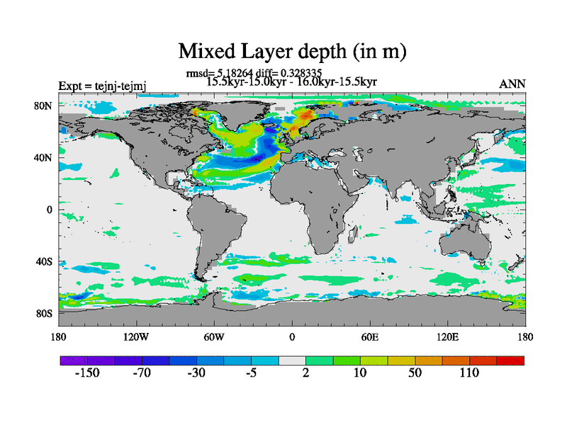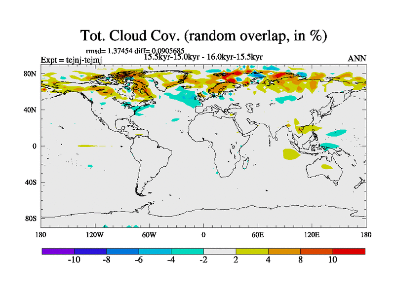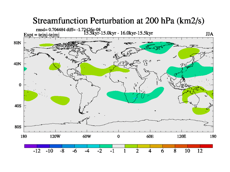 This is part of our deglaciation simulations. All forcings included except melt water fluxes. This series originally started from the tdphm spinup. Revised runoff maps, Russian rivers to Arctic. This vresion uses real meltwater fluxes. |