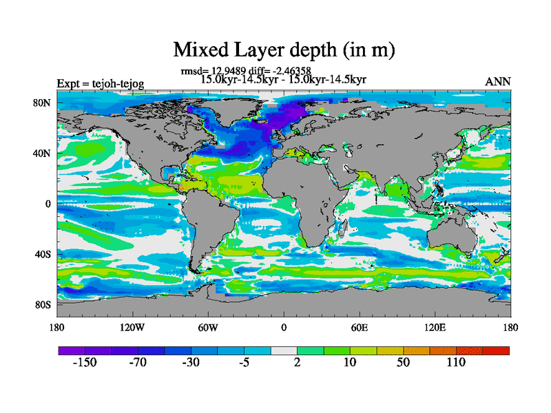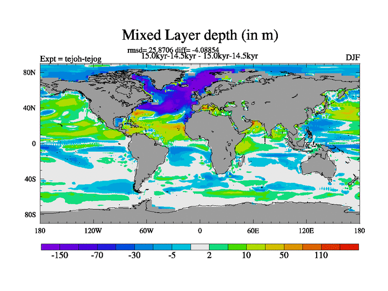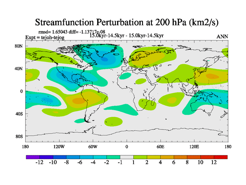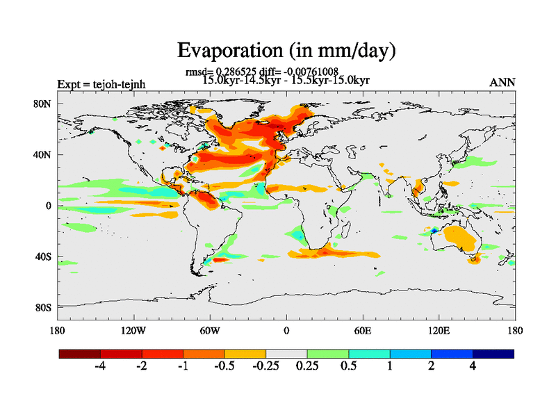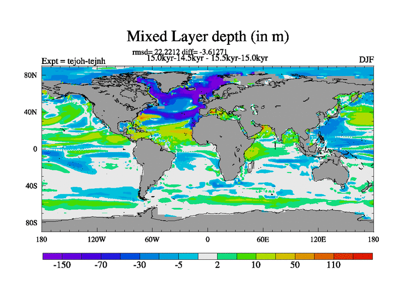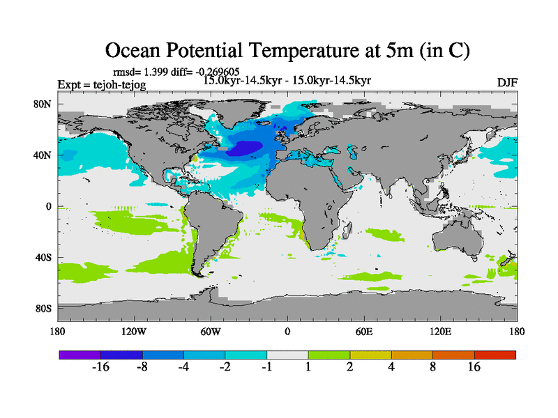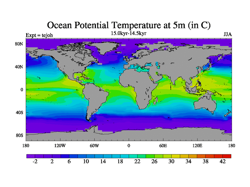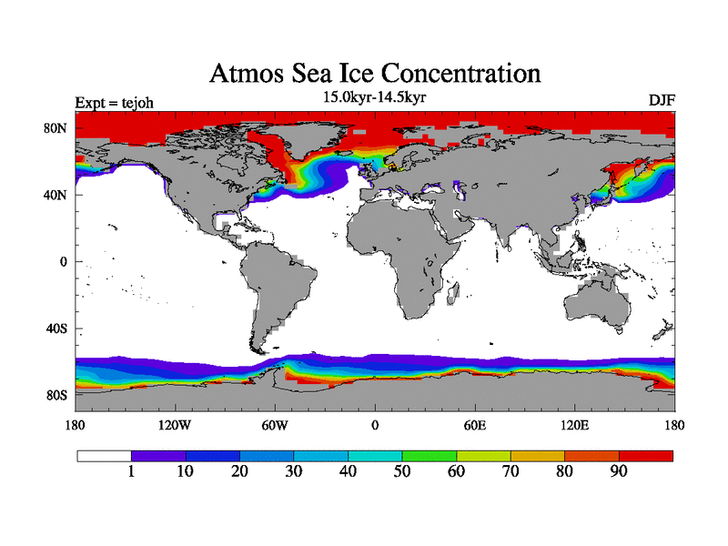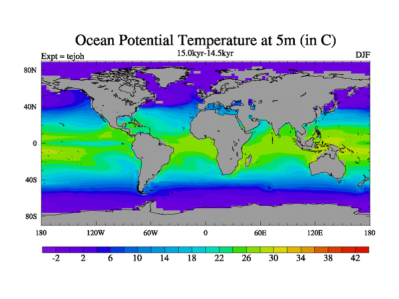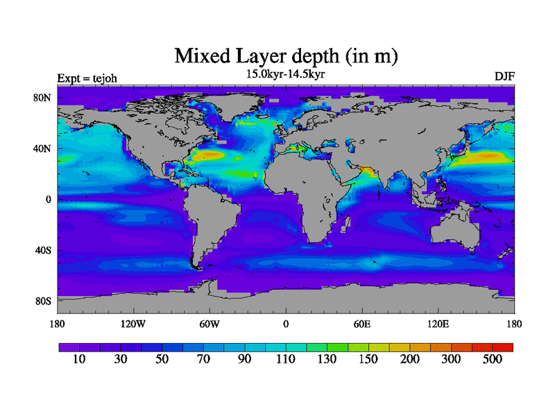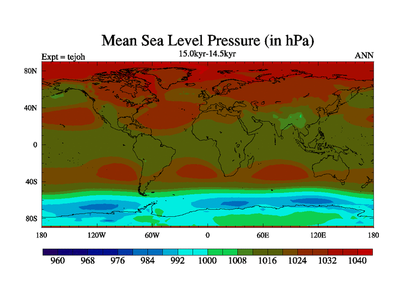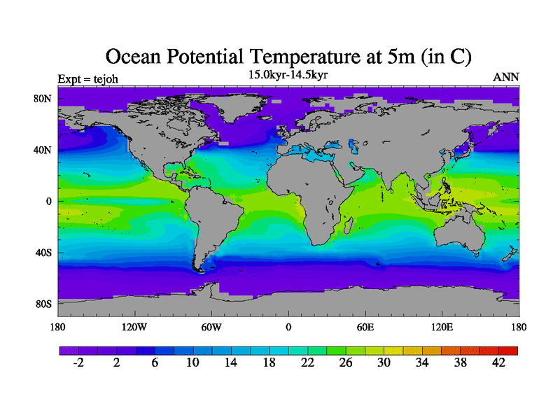 This is part of our deglaciation simulations. All forcings included except melt water fluxes. This series originally started from the tdphm spinup. Revised runoff maps, Russian rivers to Med. This vresion uses real meltwater fluxes. |