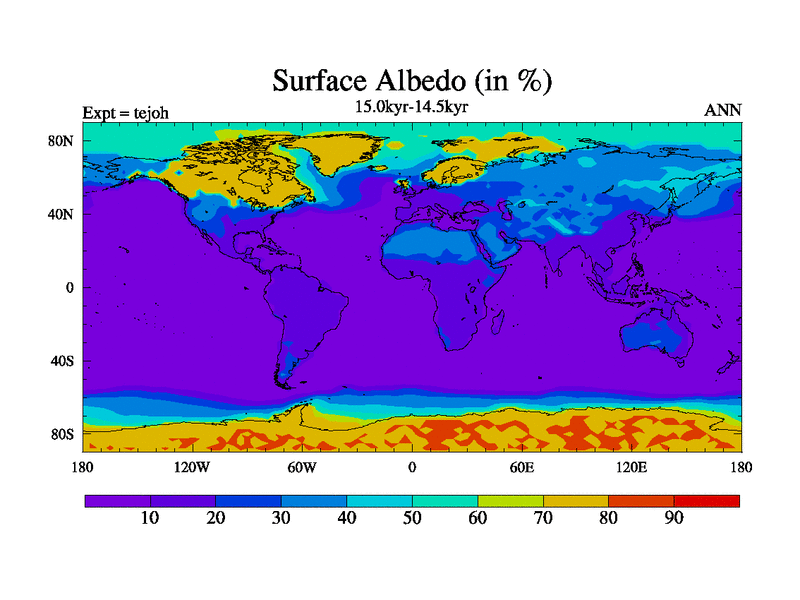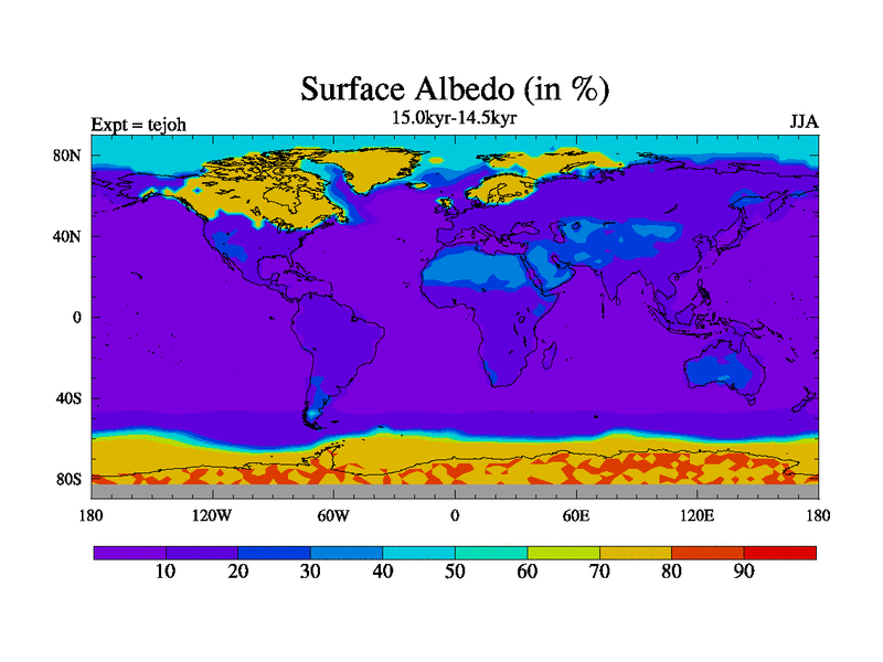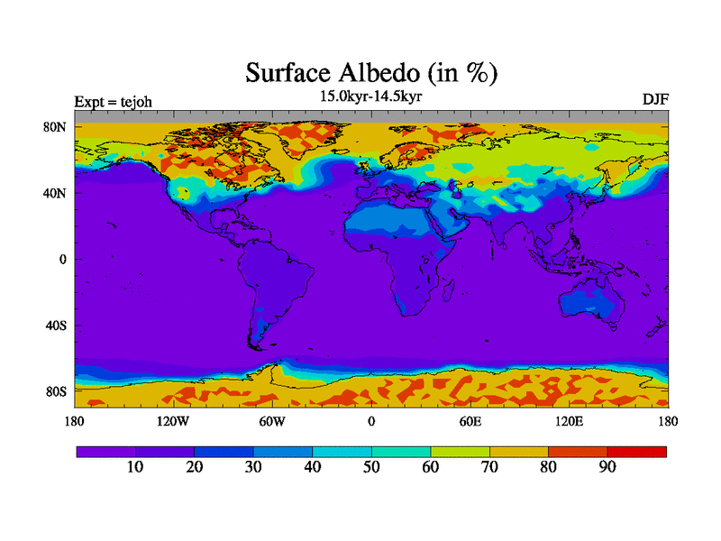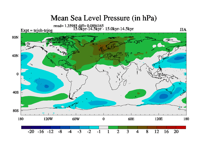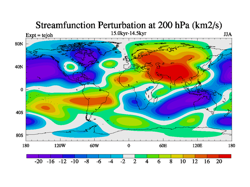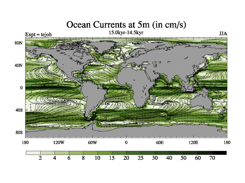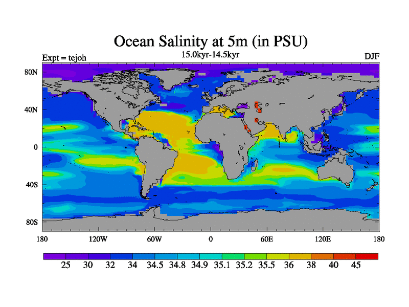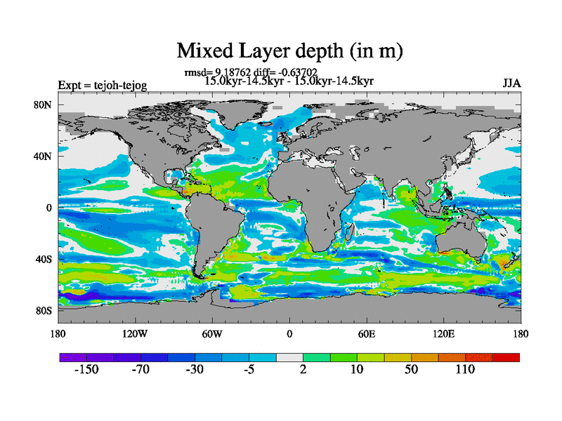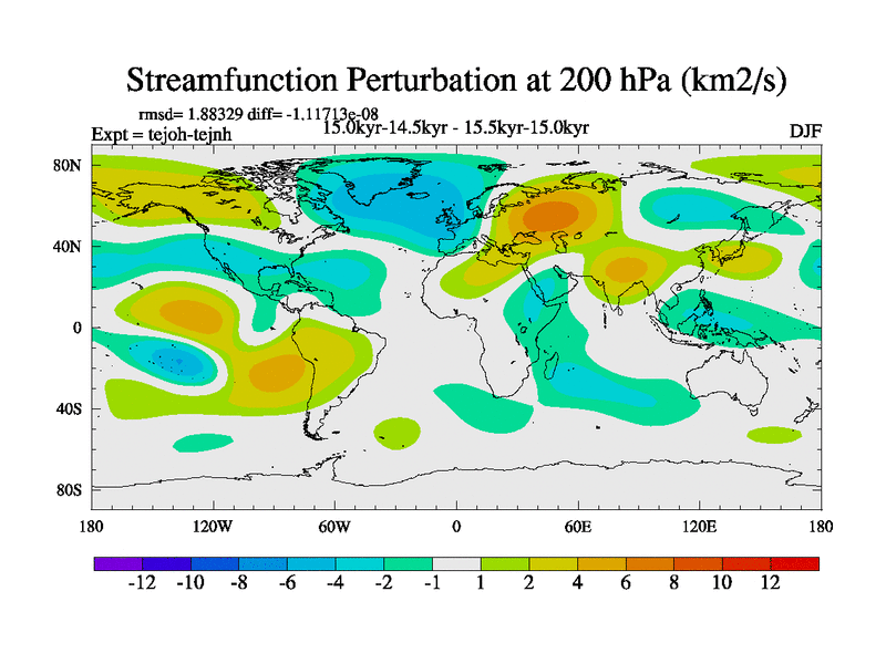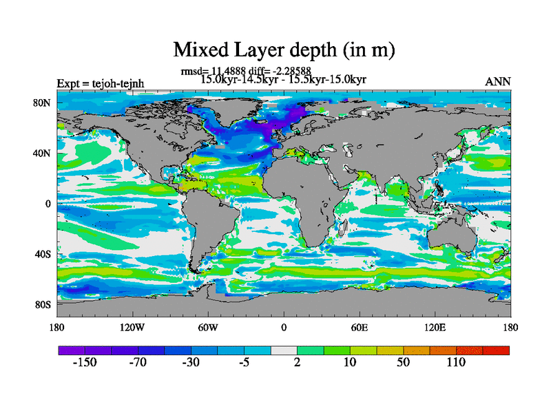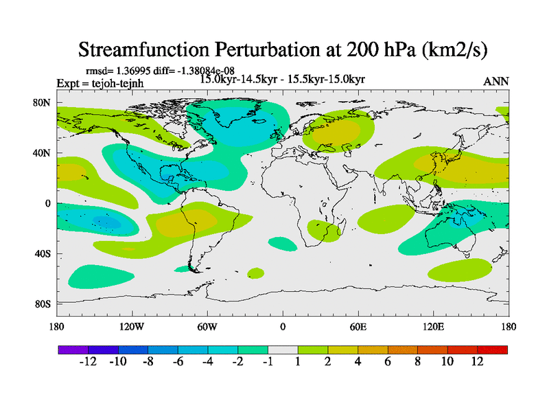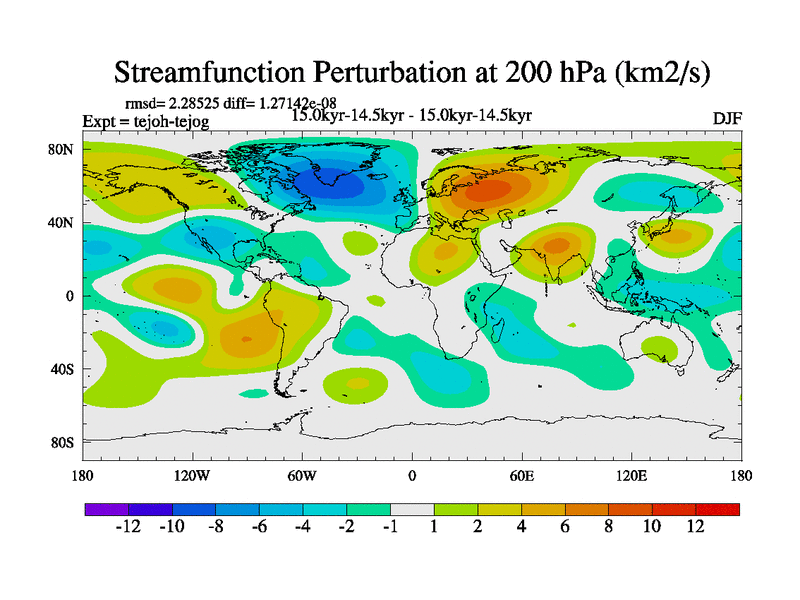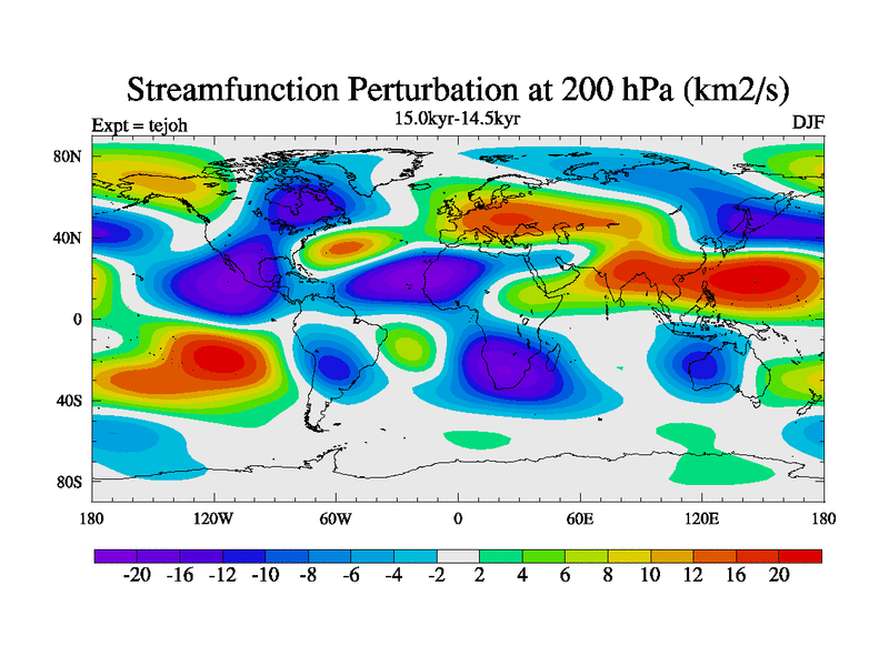 This is part of our deglaciation simulations. All forcings included except melt water fluxes. This series originally started from the tdphm spinup. Revised runoff maps, Russian rivers to Med. This vresion uses real meltwater fluxes. |