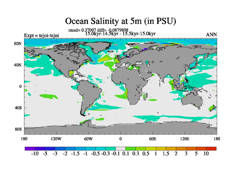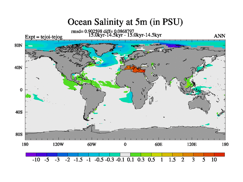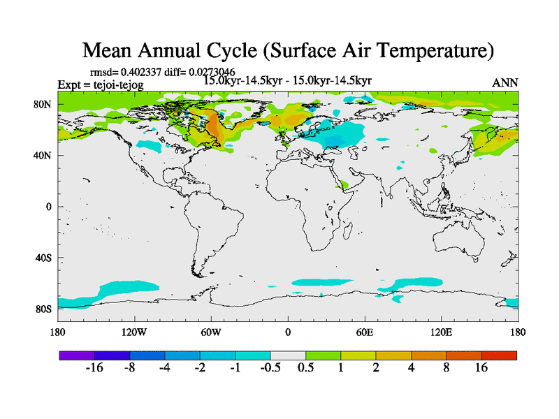 This is part of our deglaciation simulations. All forcings included except melt water fluxes. This series originally started from the tdphl spinup. Revised runoff maps, Russian rivers to Arctic. |