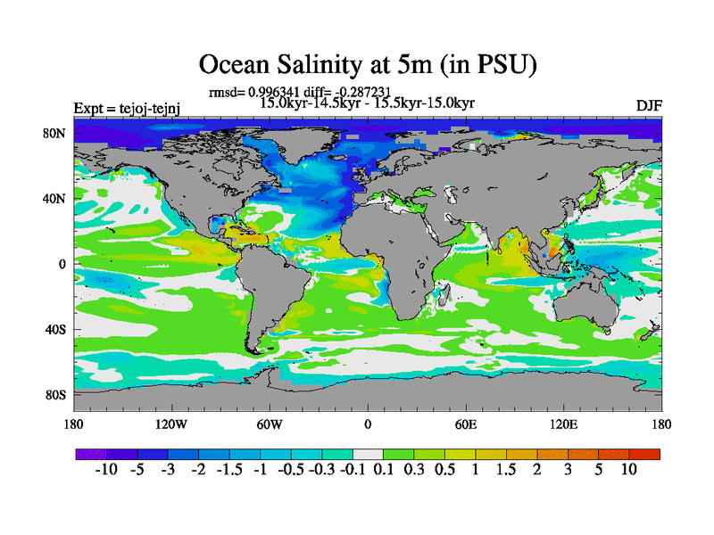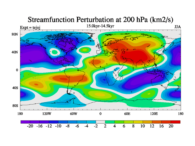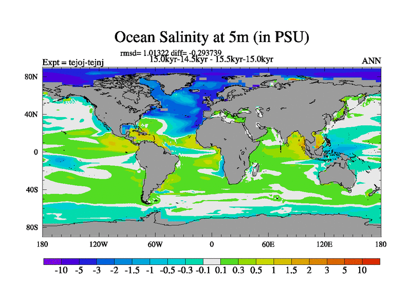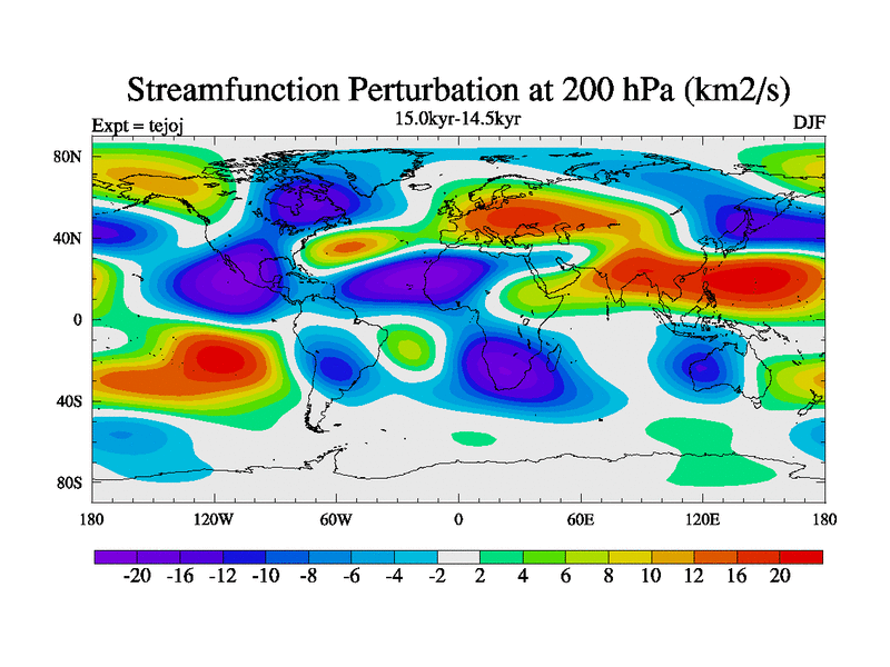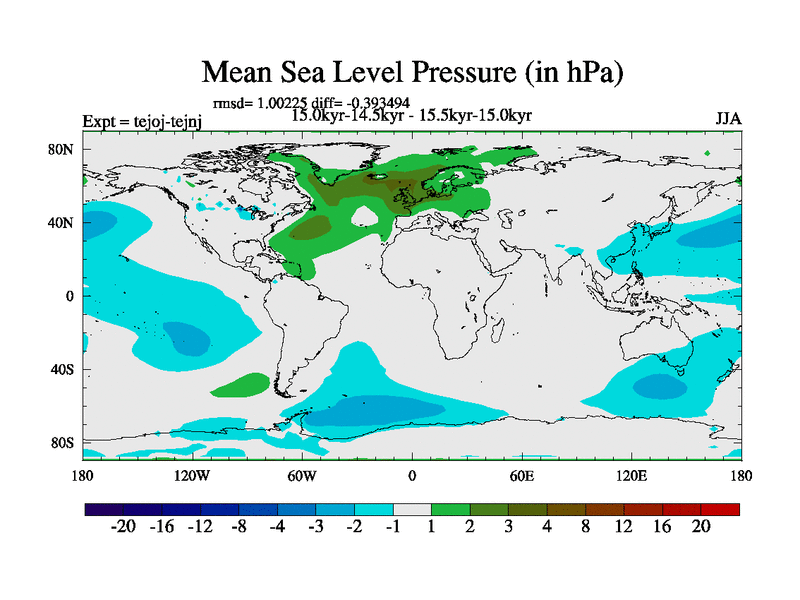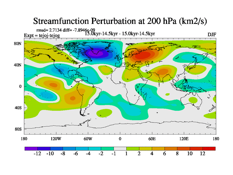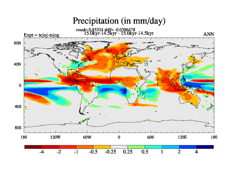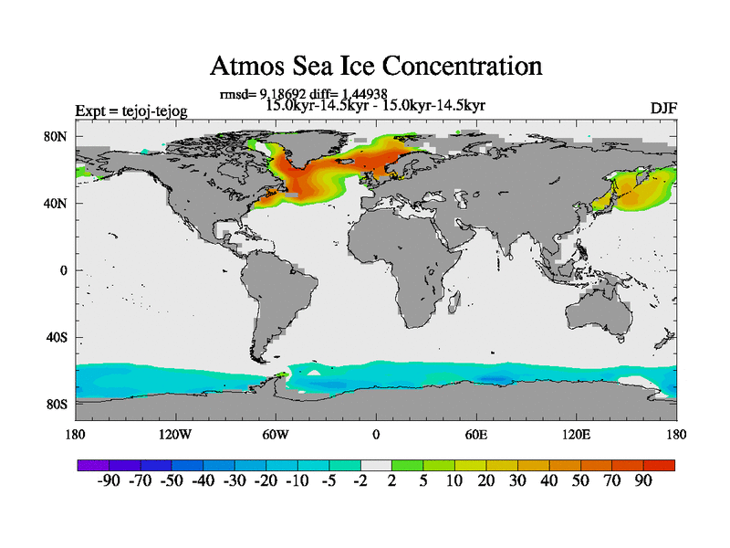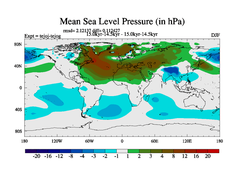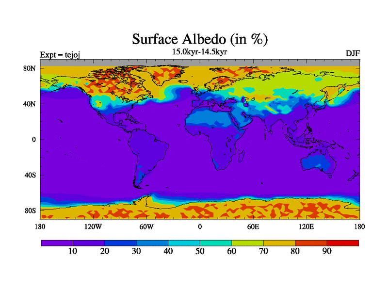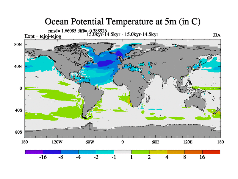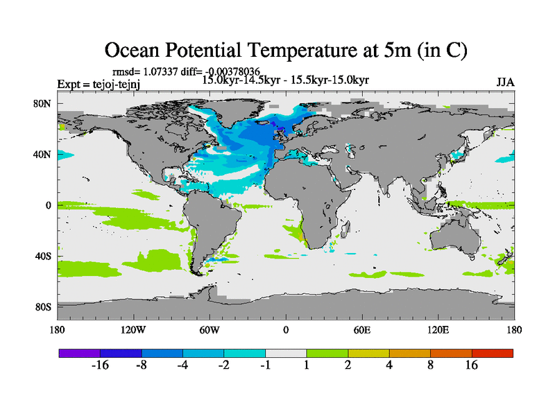 This is part of our deglaciation simulations. All forcings included except melt water fluxes. This series originally started from the tdphm spinup. Revised runoff maps, Russian rivers to Arctic. This vresion uses real meltwater fluxes. |
