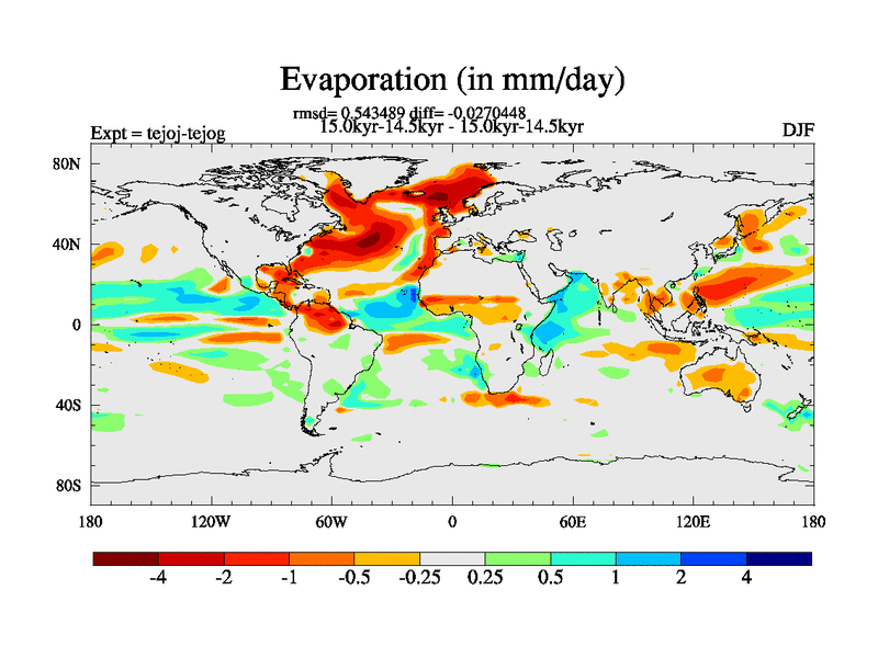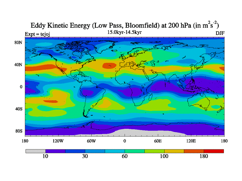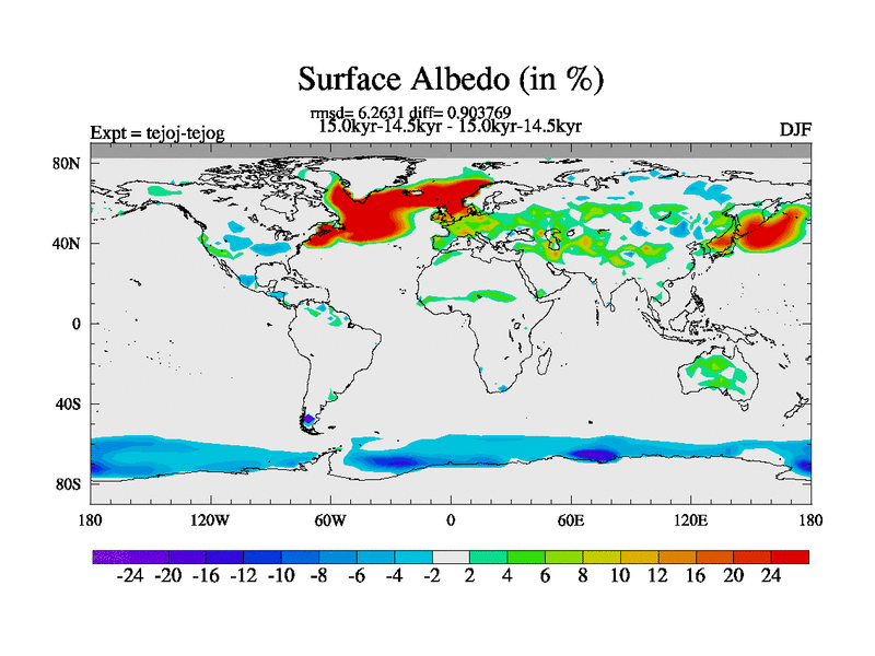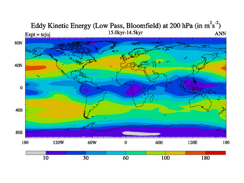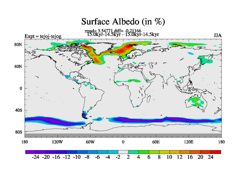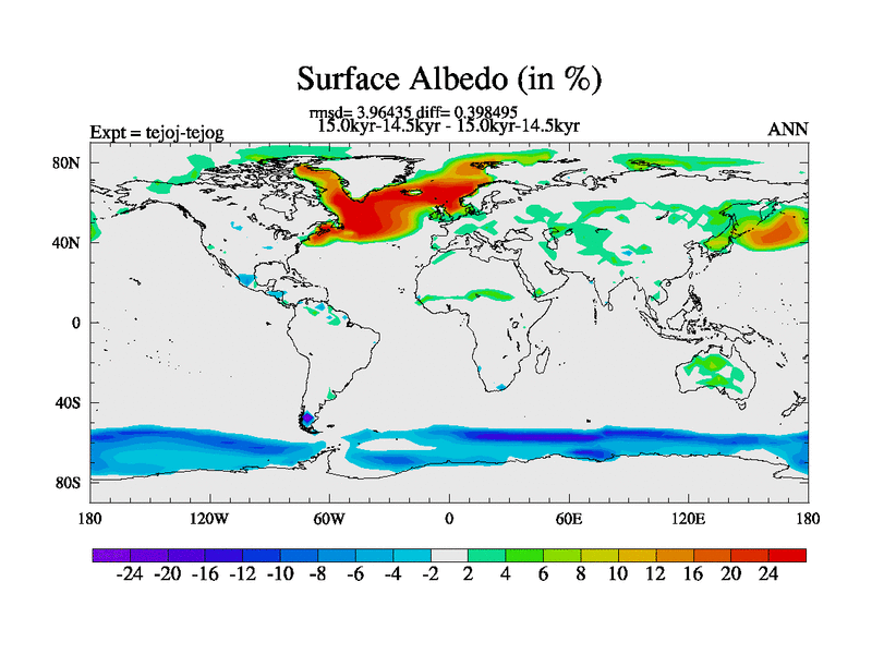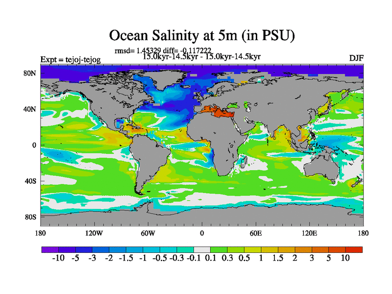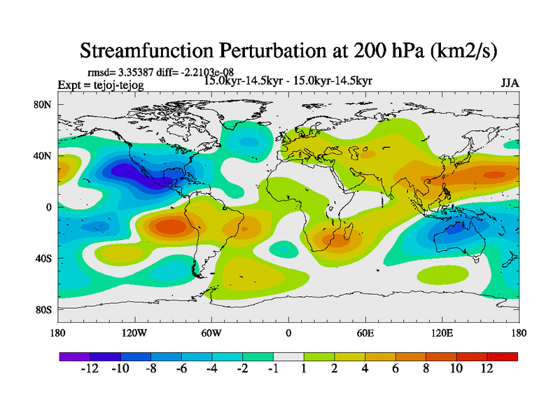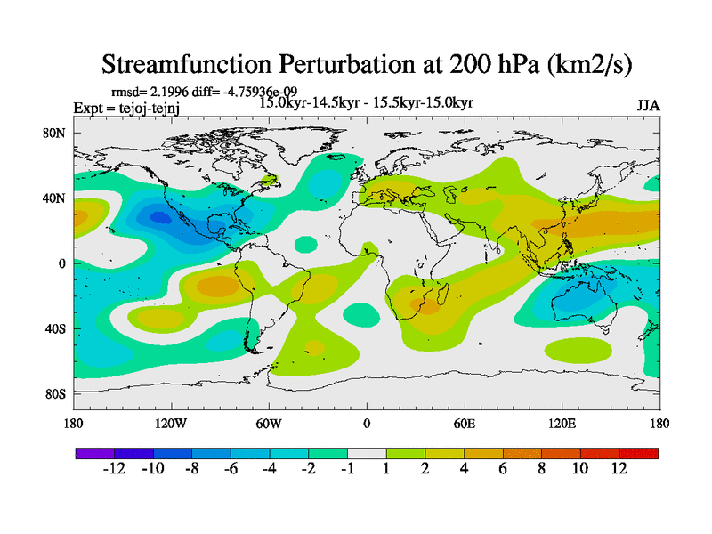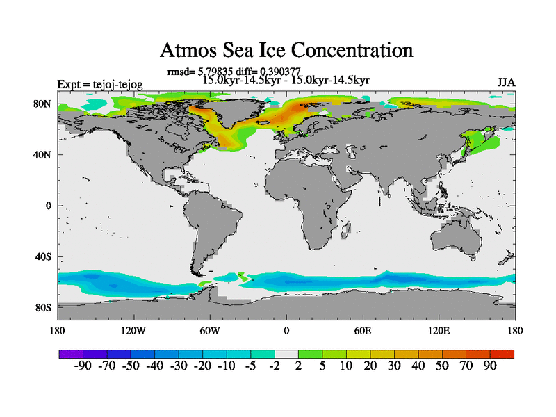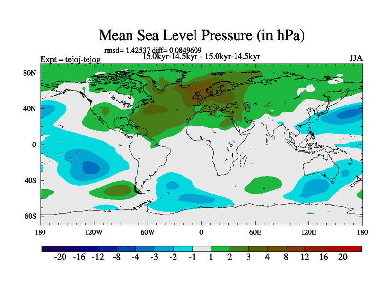 This is part of our deglaciation simulations. All forcings included except melt water fluxes. This series originally started from the tdphm spinup. Revised runoff maps, Russian rivers to Arctic. This vresion uses real meltwater fluxes. |