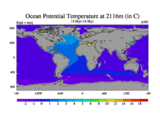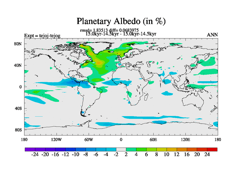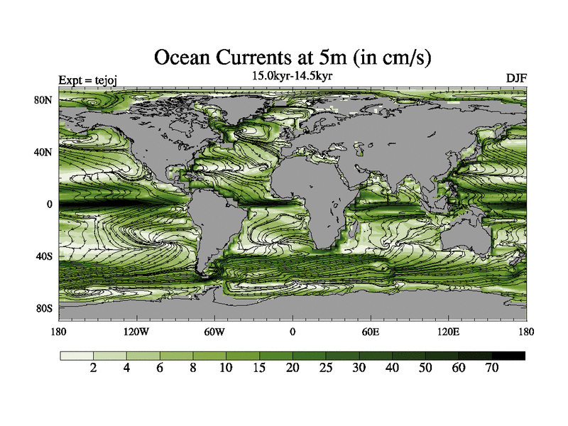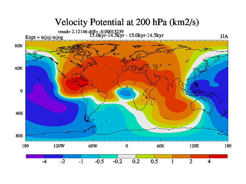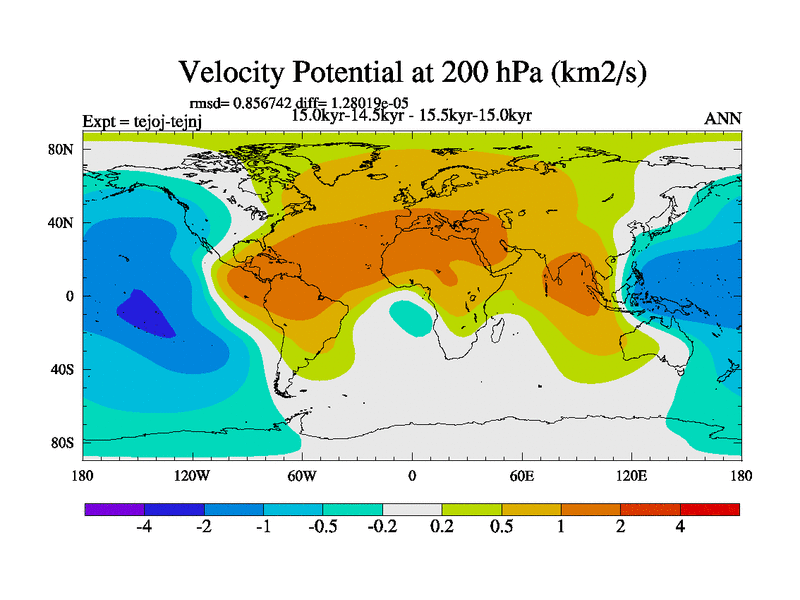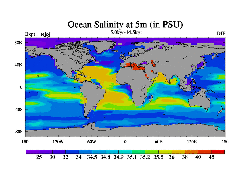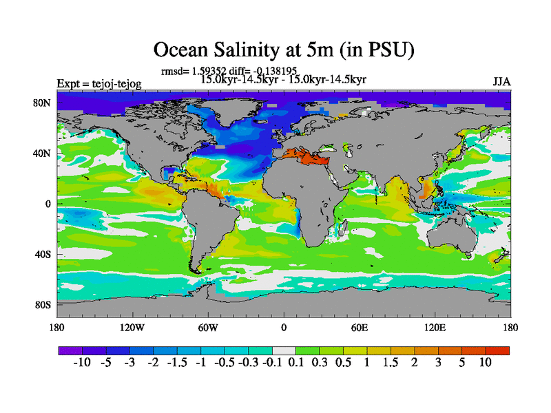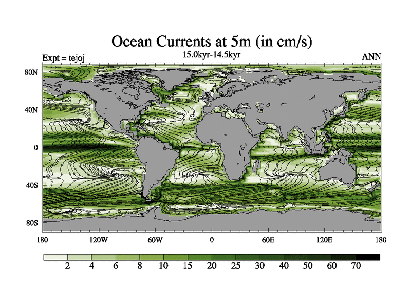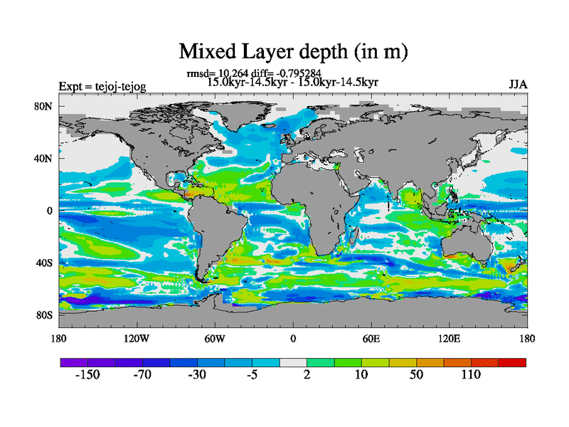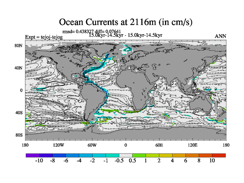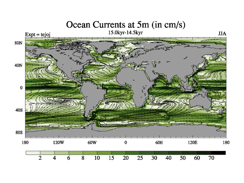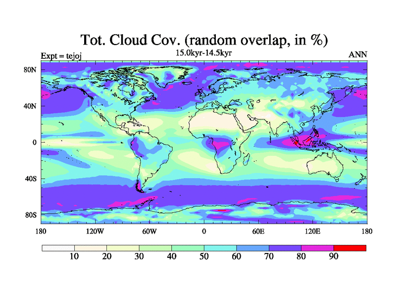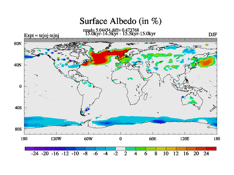 This is part of our deglaciation simulations. All forcings included except melt water fluxes. This series originally started from the tdphm spinup. Revised runoff maps, Russian rivers to Arctic. This vresion uses real meltwater fluxes. |
