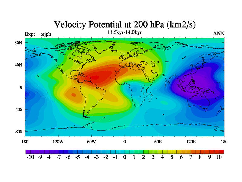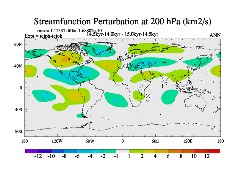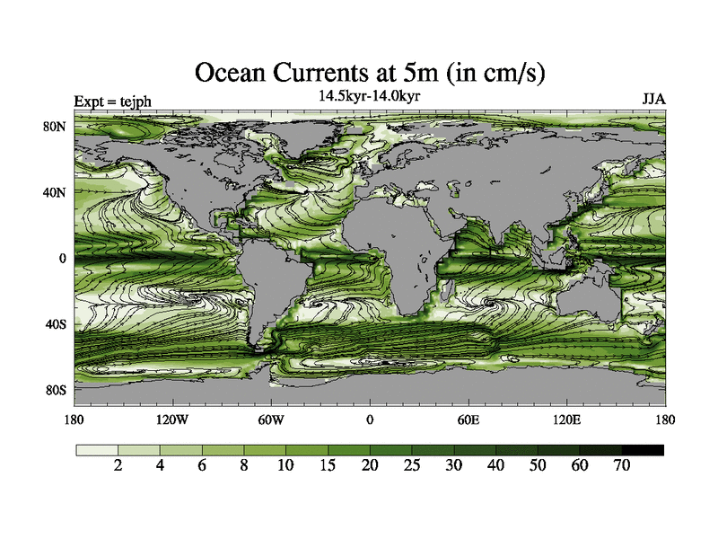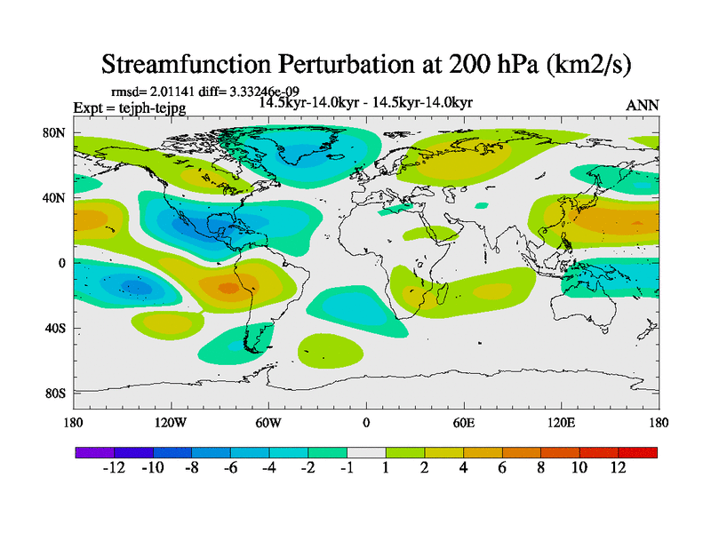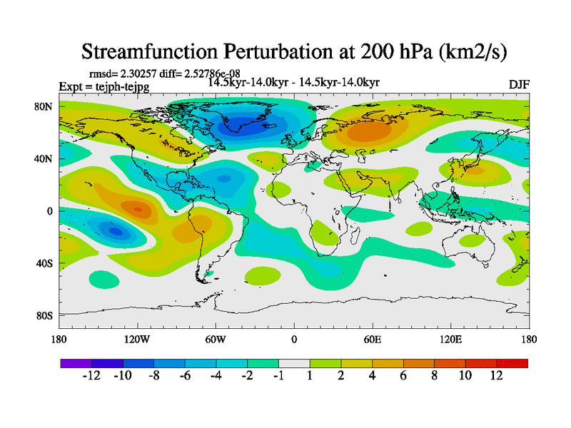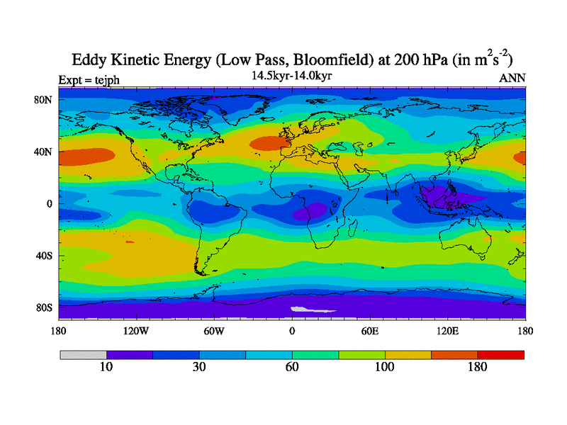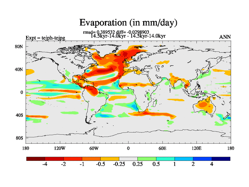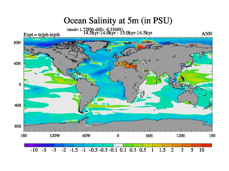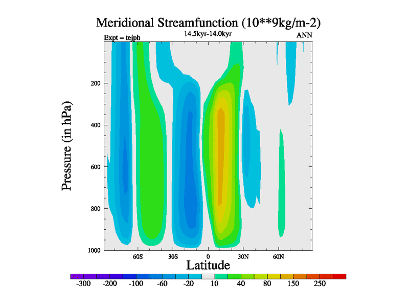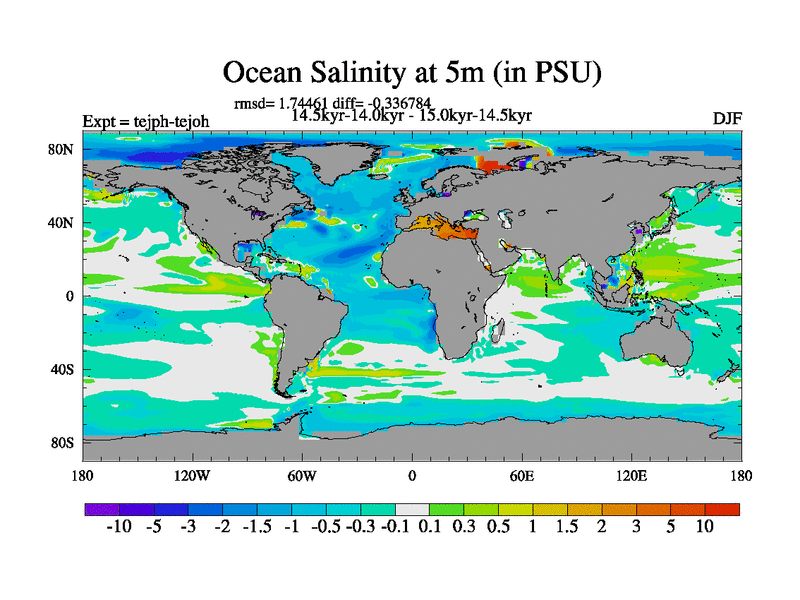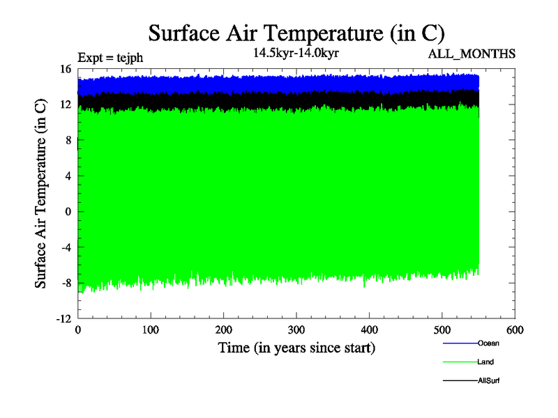 This is part of our deglaciation simulations. All forcings included except melt water fluxes. This series originally started from the tdphm spinup. Revised runoff maps, Russian rivers to Med. This vresion uses real meltwater fluxes. |