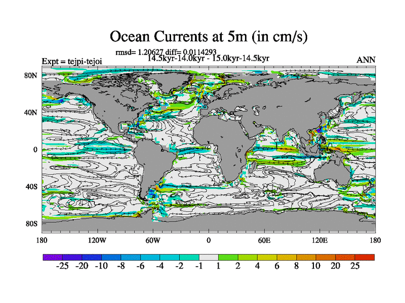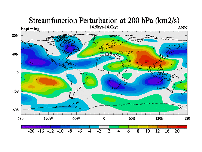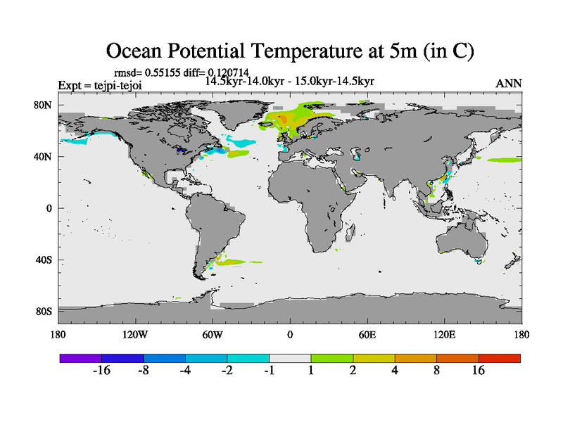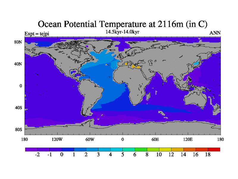 This is part of our deglaciation simulations. All forcings included except melt water fluxes. This series originally started from the tdphl spinup. Revised runoff maps, Russian rivers to Arctic. |