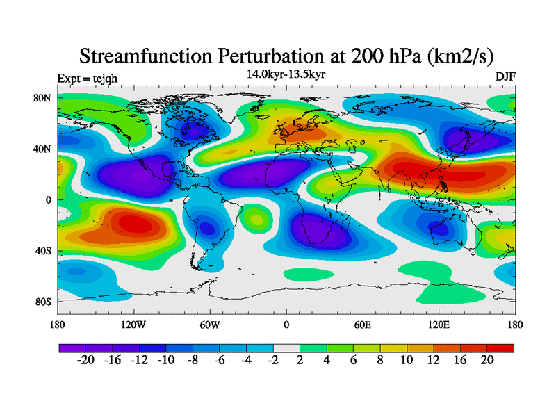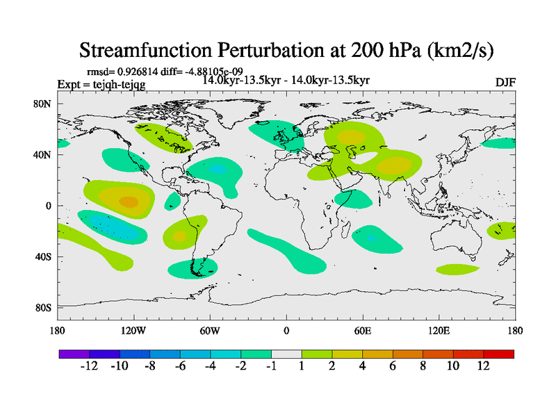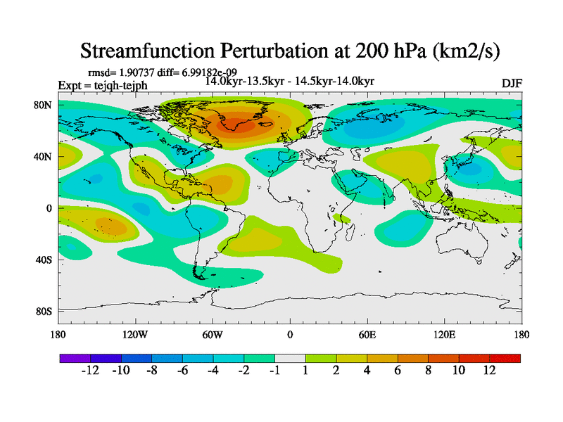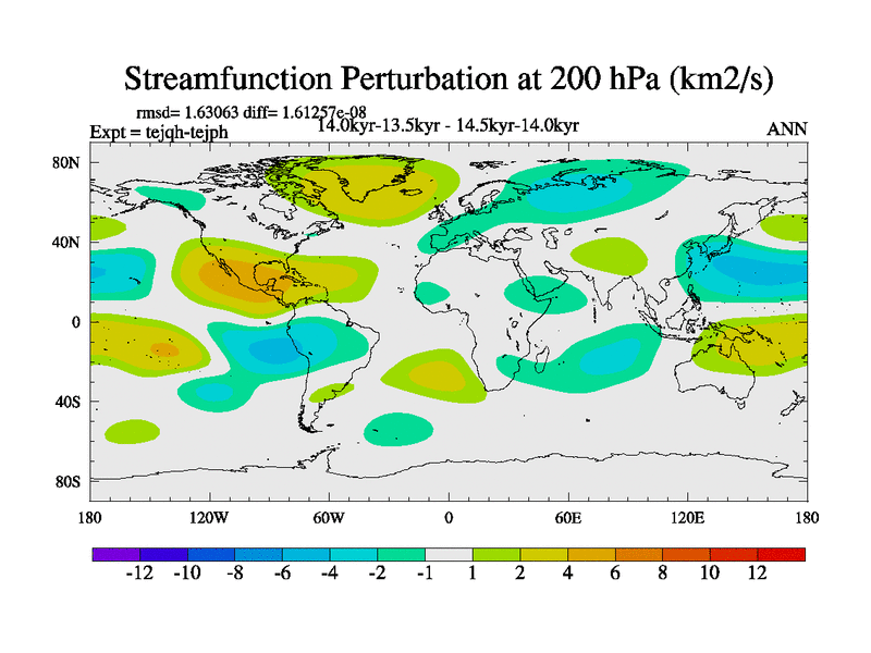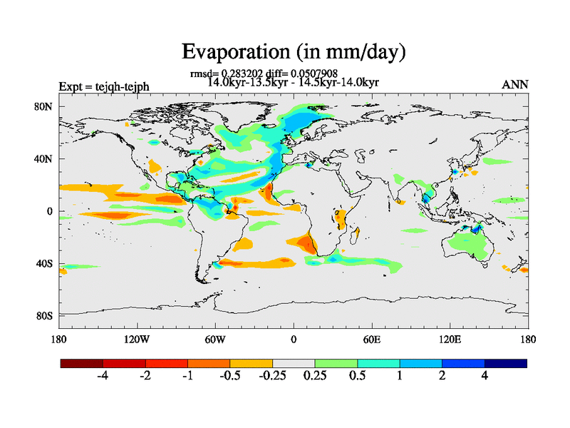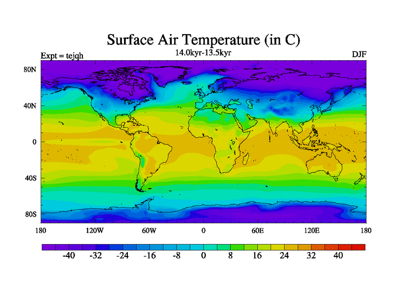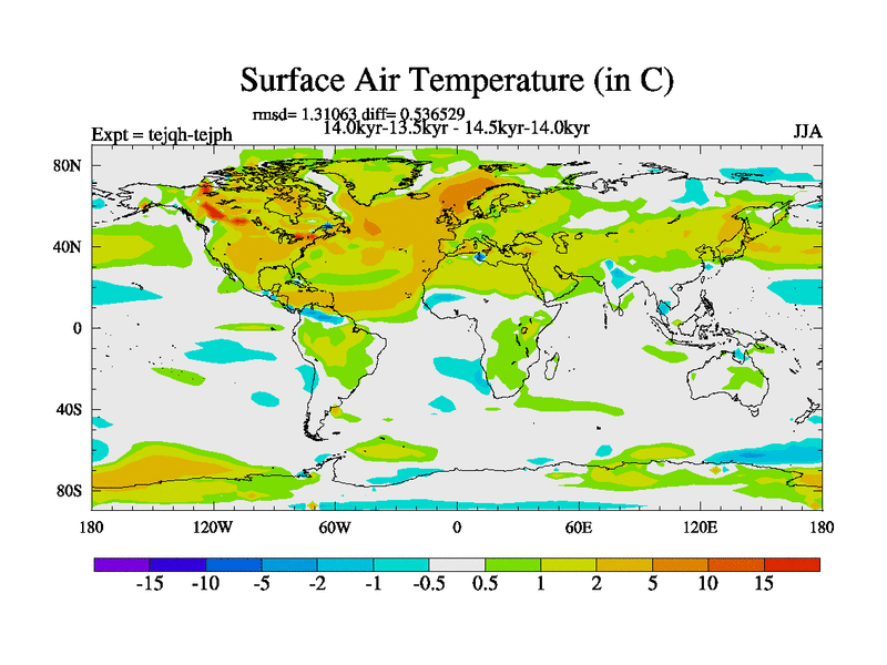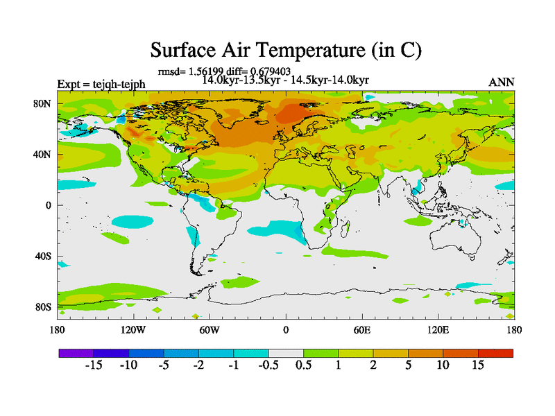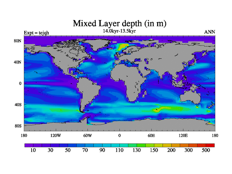 This is part of our deglaciation simulations. All forcings included except melt water fluxes. This series originally started from the tdphm spinup. Revised runoff maps, Russian rivers to Med. This vresion uses real meltwater fluxes. |