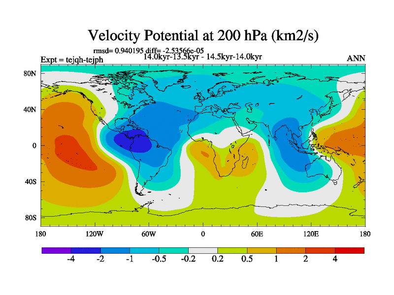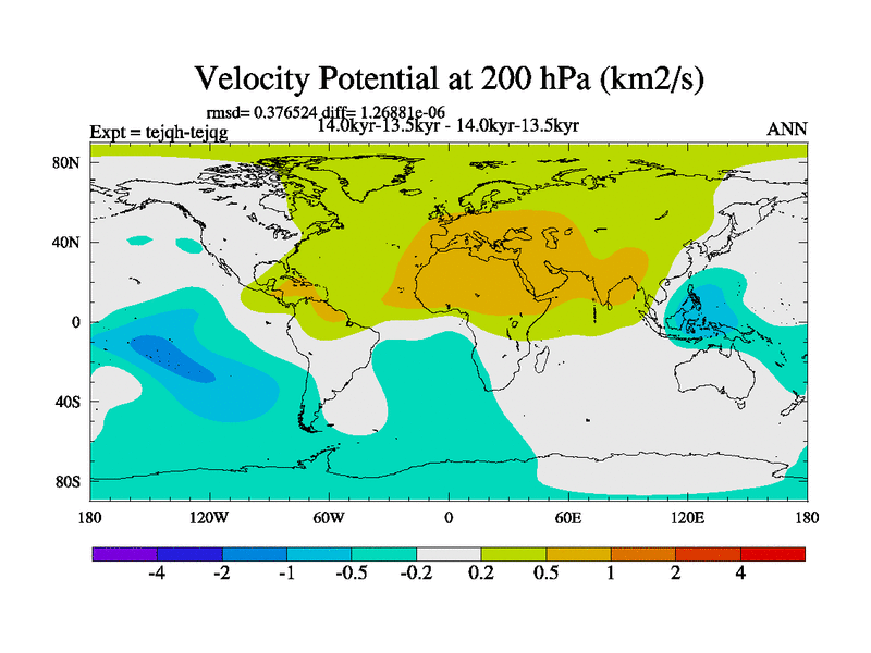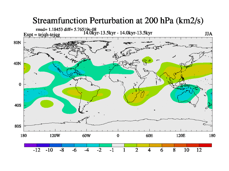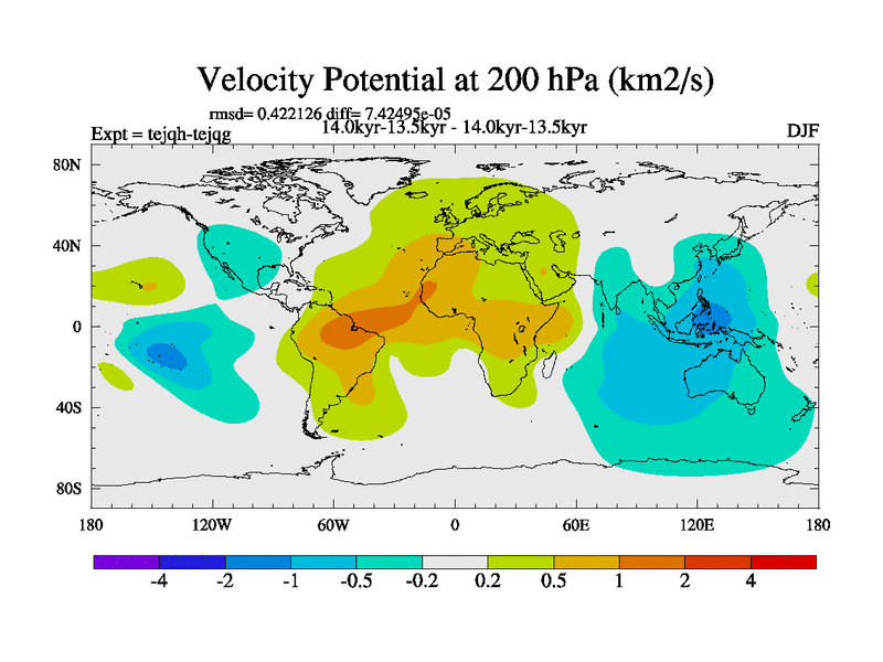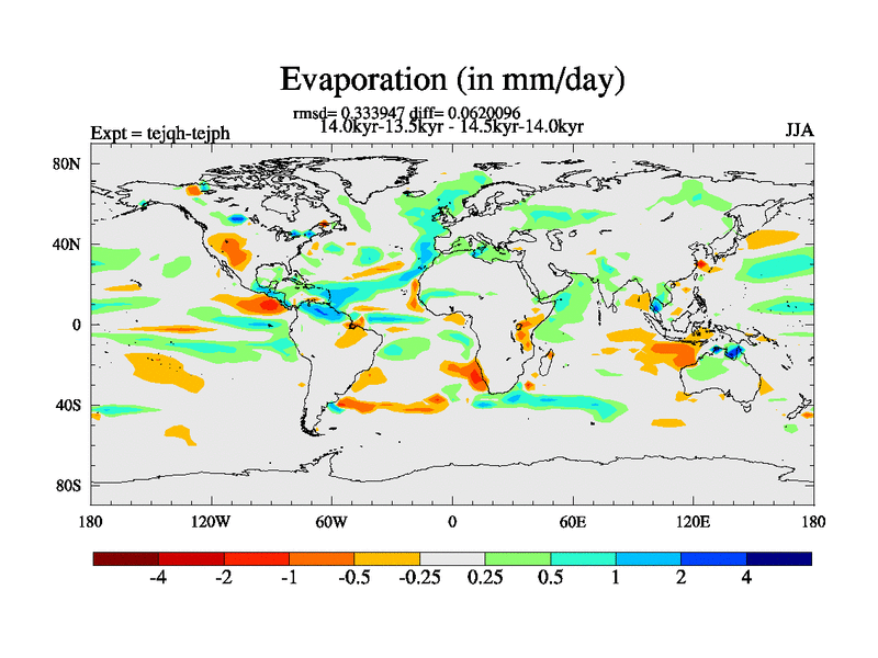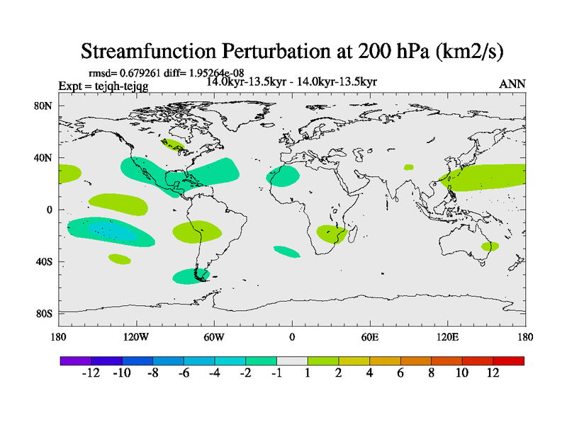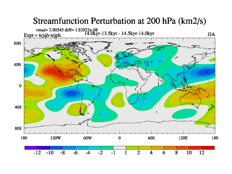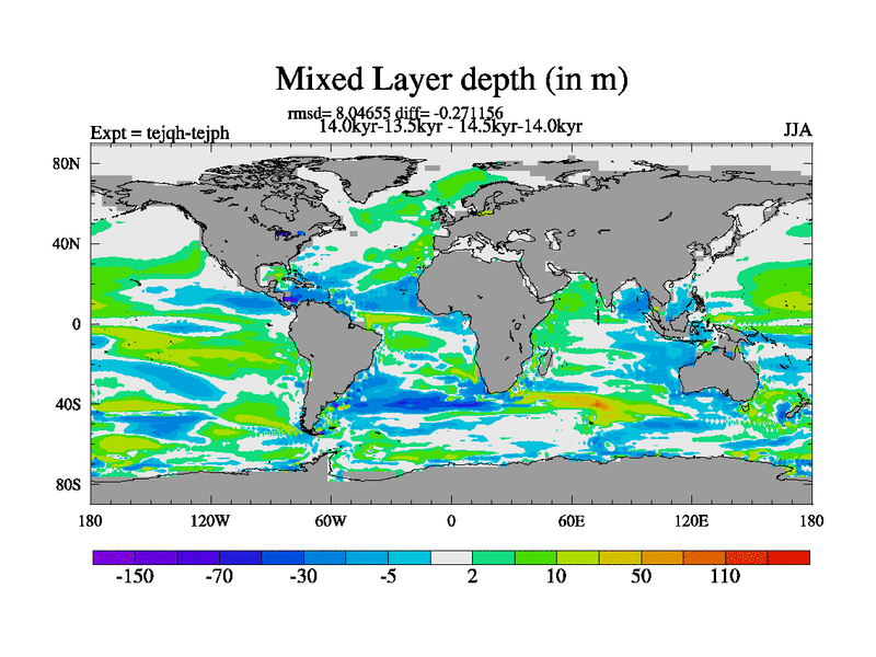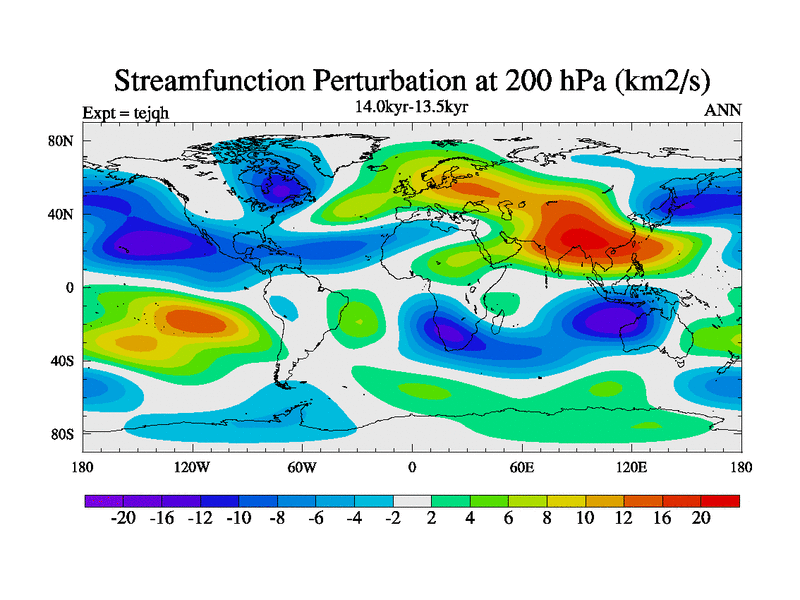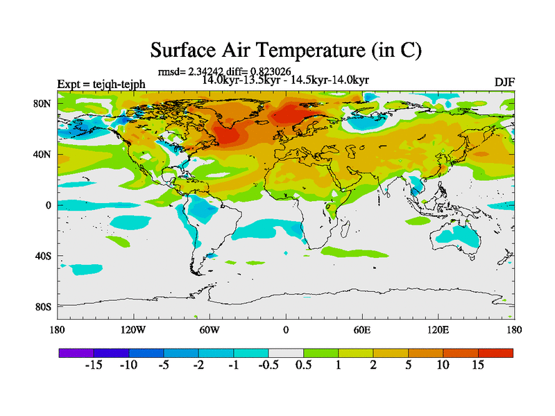 This is part of our deglaciation simulations. All forcings included except melt water fluxes. This series originally started from the tdphm spinup. Revised runoff maps, Russian rivers to Med. This vresion uses real meltwater fluxes. |