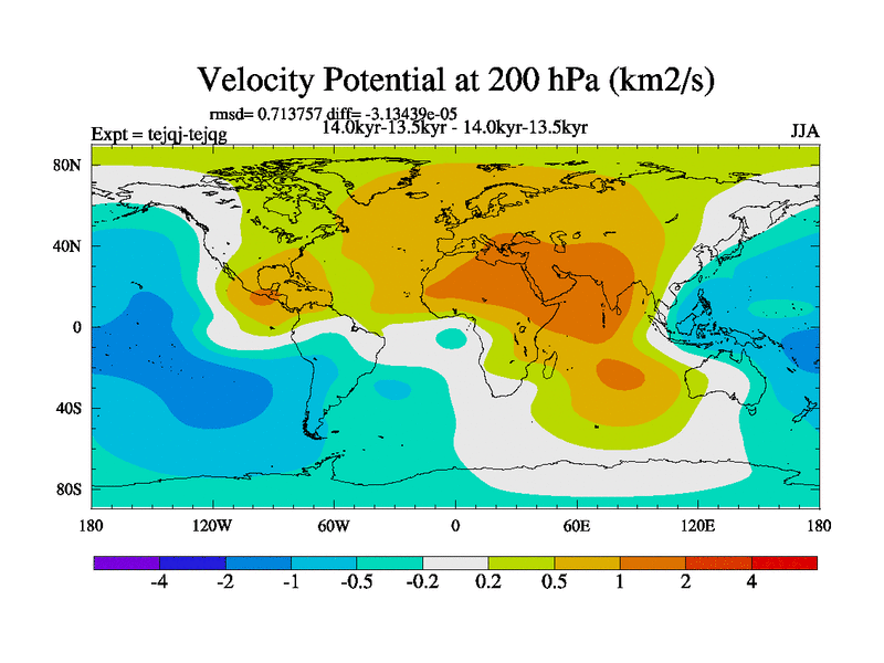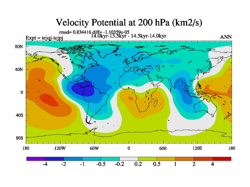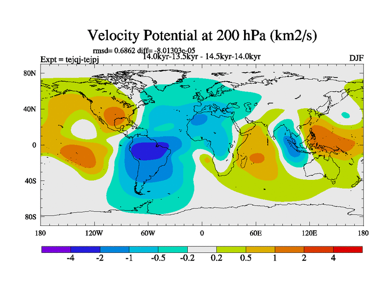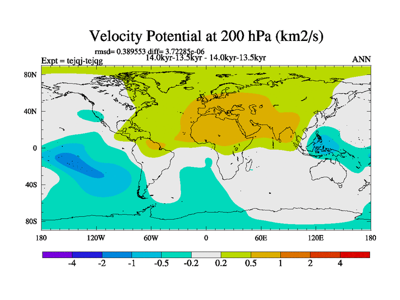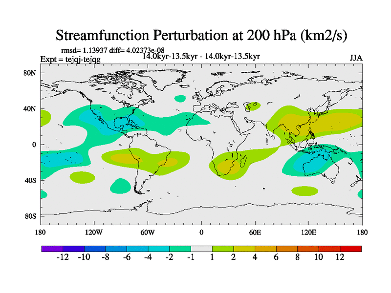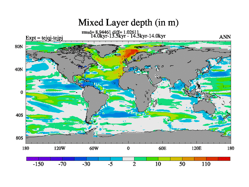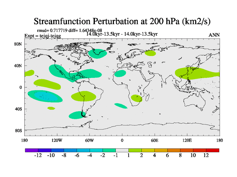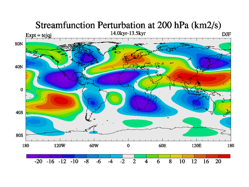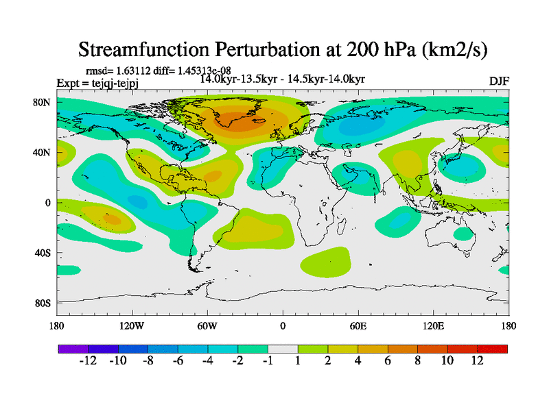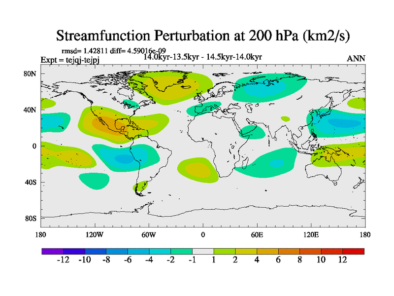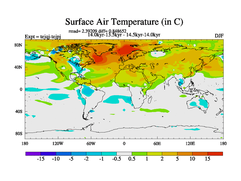 This is part of our deglaciation simulations. All forcings included except melt water fluxes. This series originally started from the tdphm spinup. Revised runoff maps, Russian rivers to Arctic. This vresion uses real meltwater fluxes. |