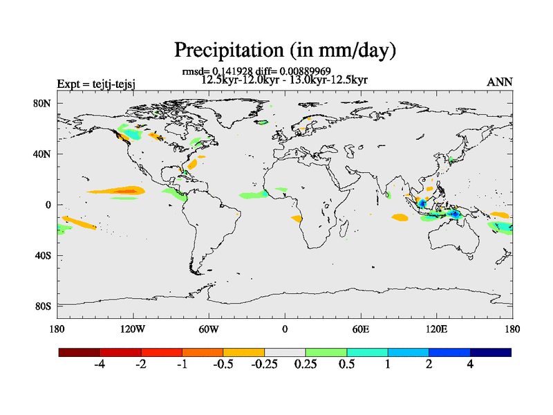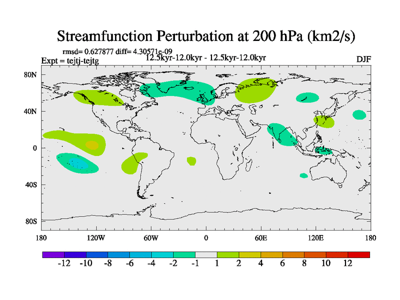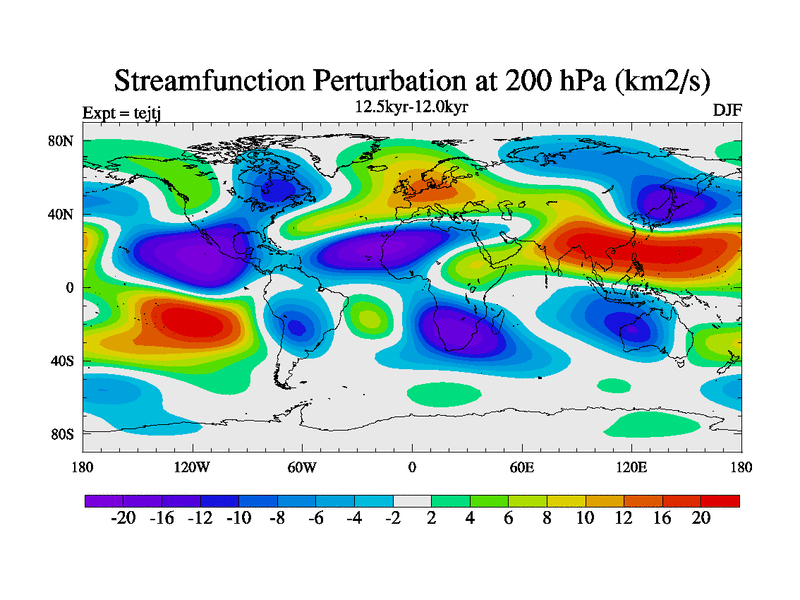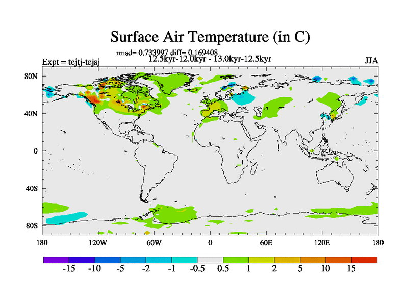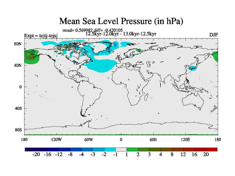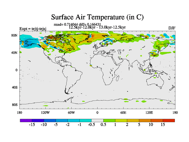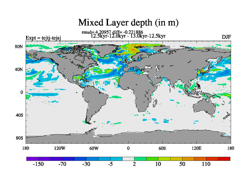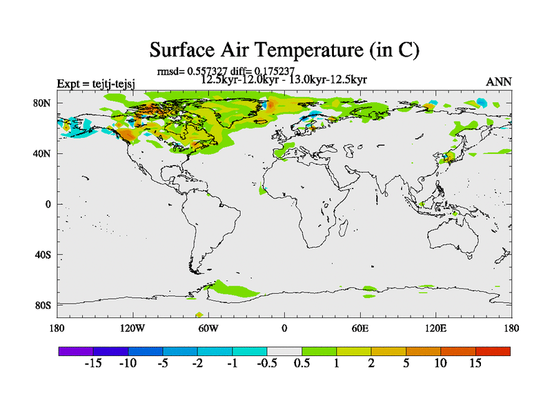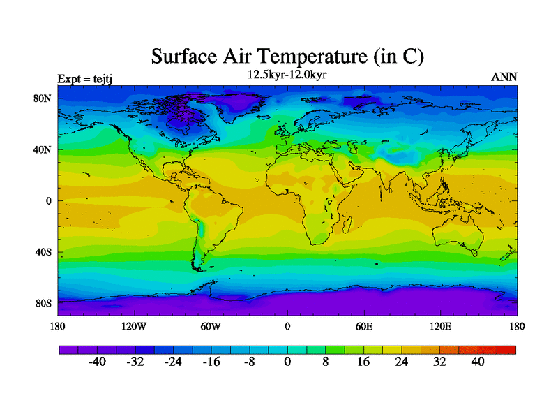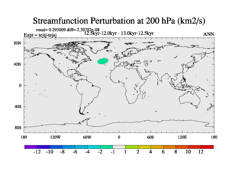 This is part of our deglaciation simulations. All forcings included except melt water fluxes. This series originally started from the tdphm spinup. Revised runoff maps, Russian rivers to Arctic. This vresion uses real meltwater fluxes. |