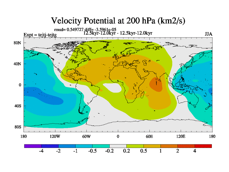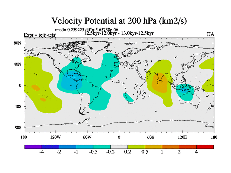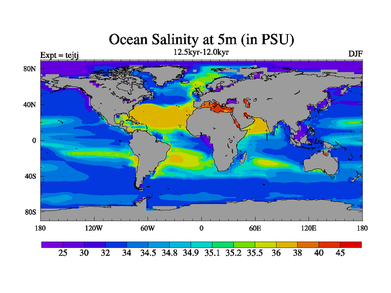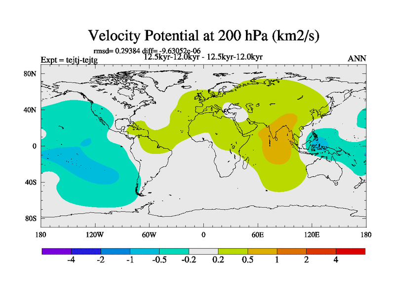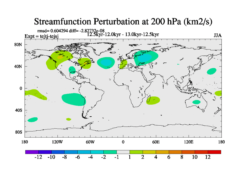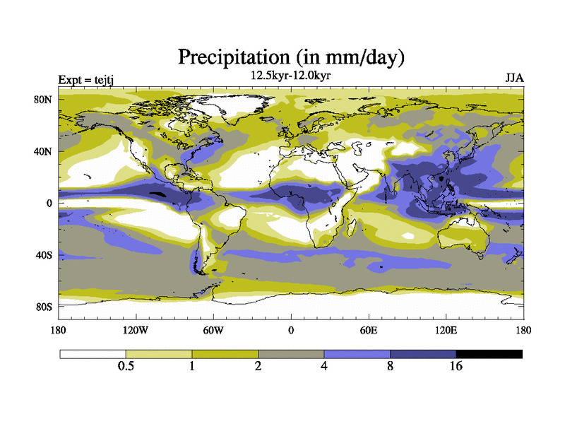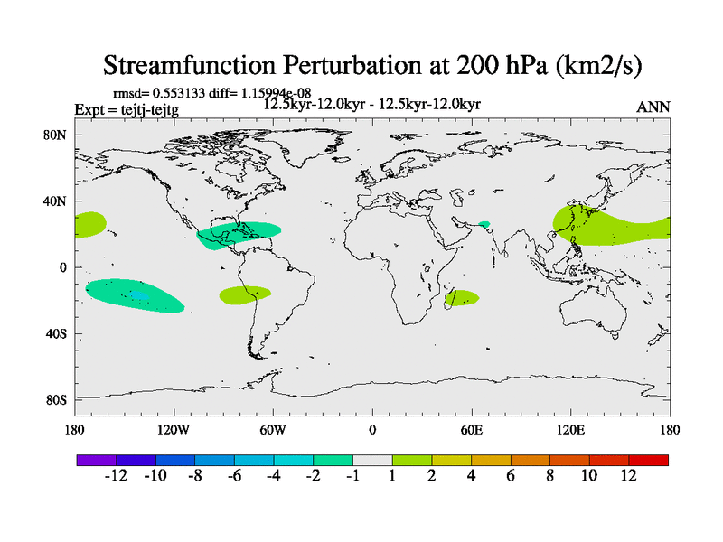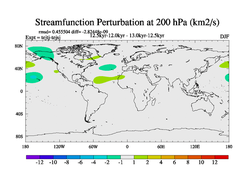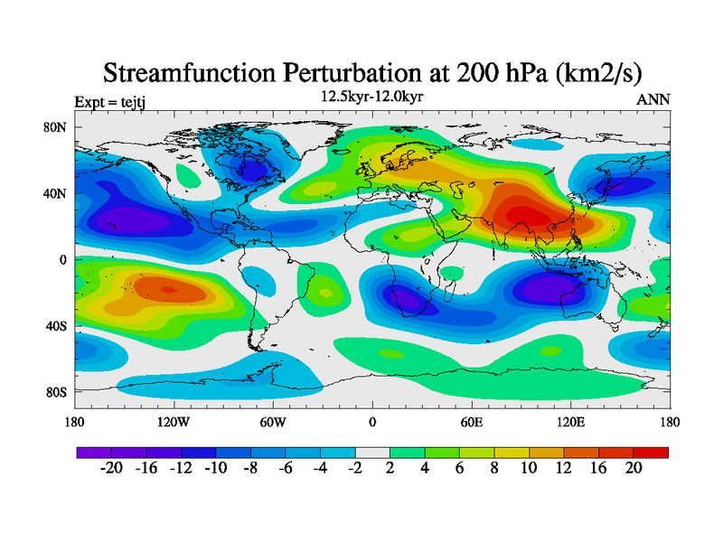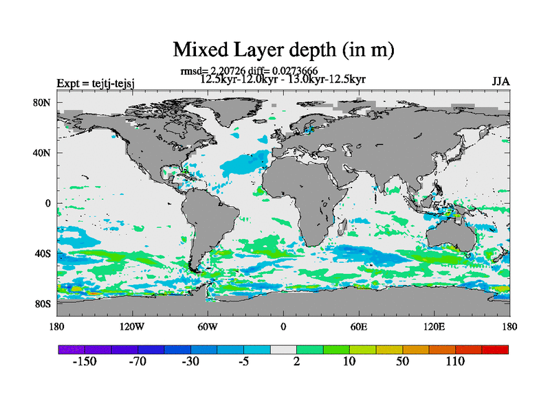 This is part of our deglaciation simulations. All forcings included except melt water fluxes. This series originally started from the tdphm spinup. Revised runoff maps, Russian rivers to Arctic. This vresion uses real meltwater fluxes. |