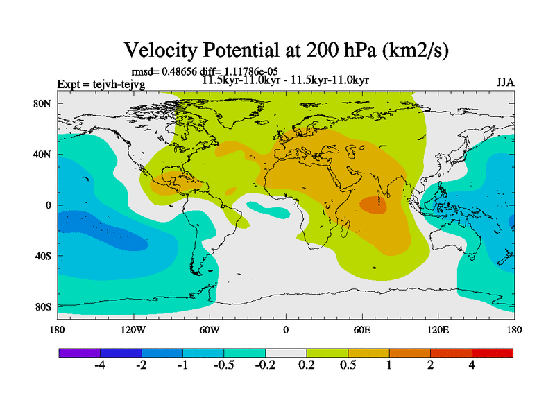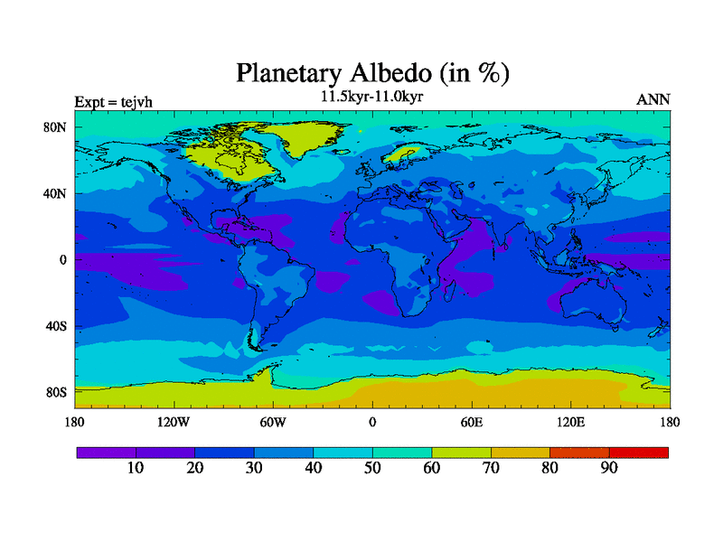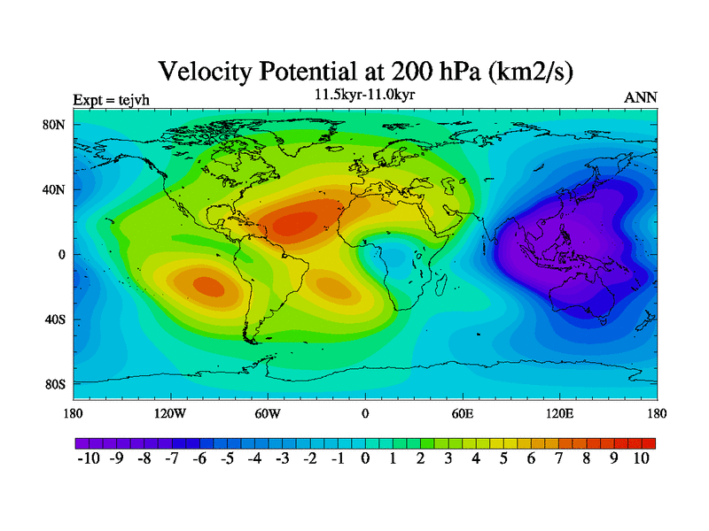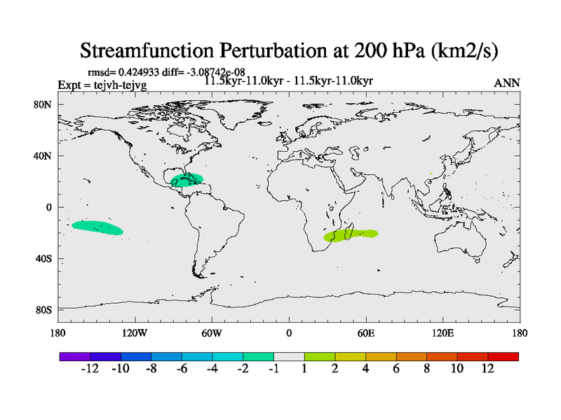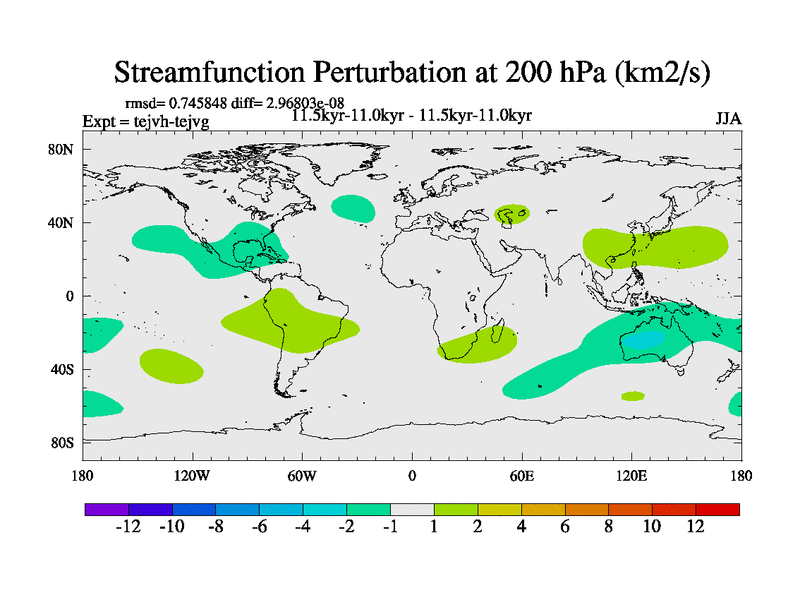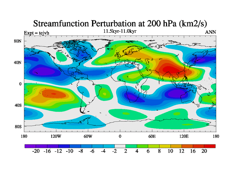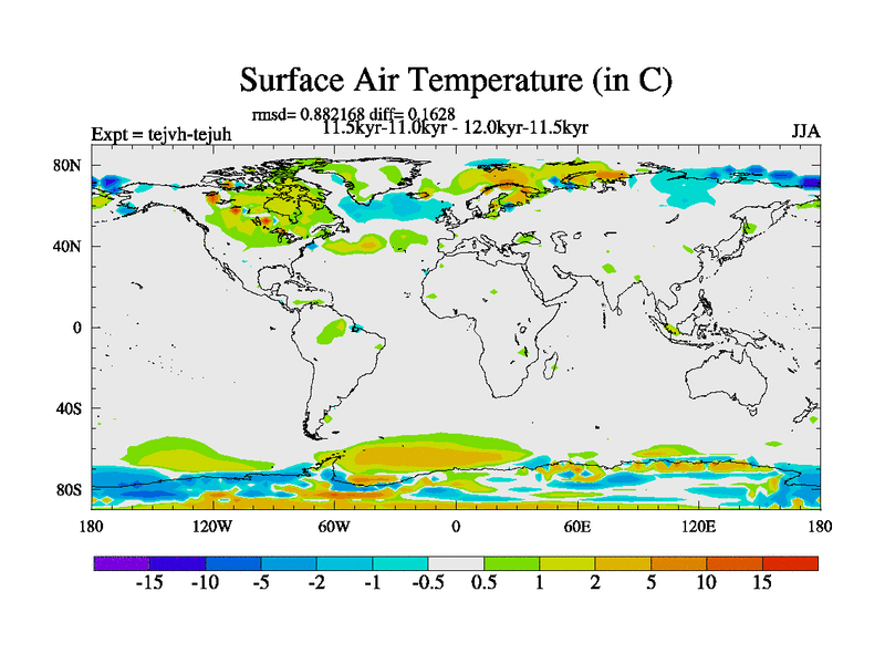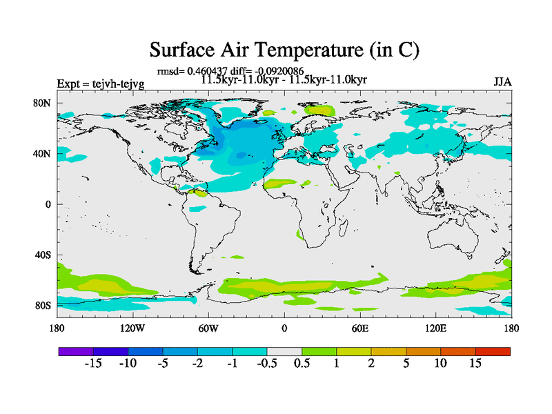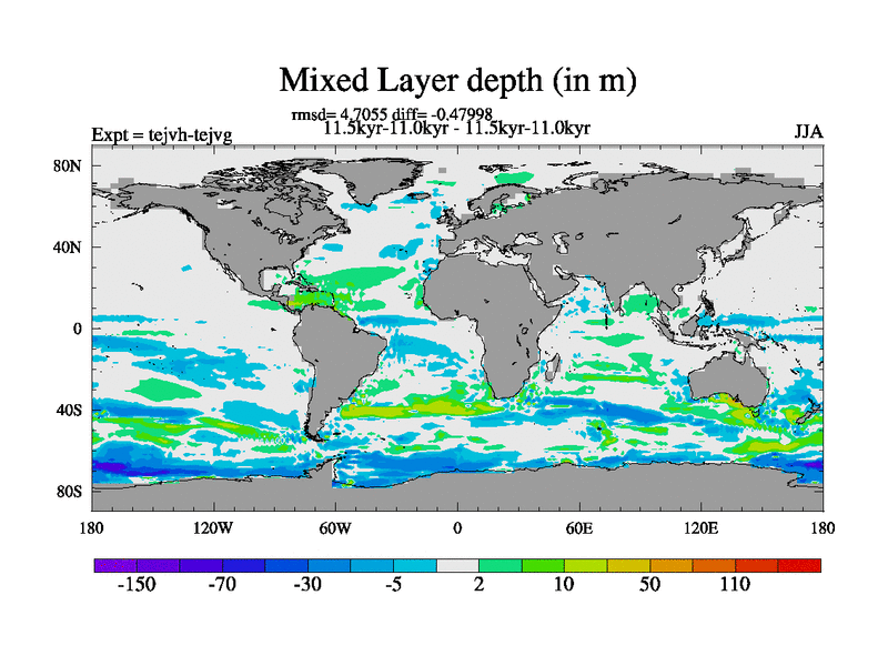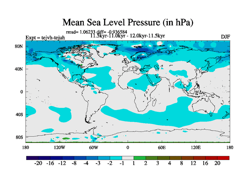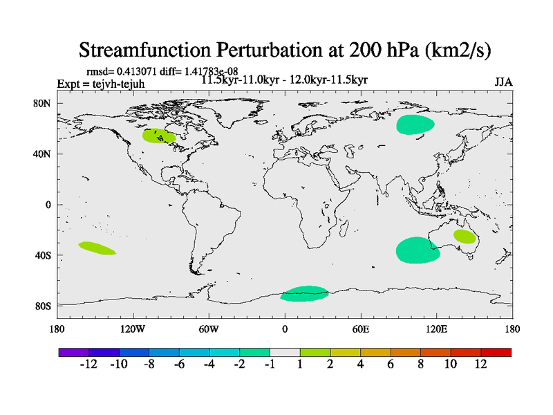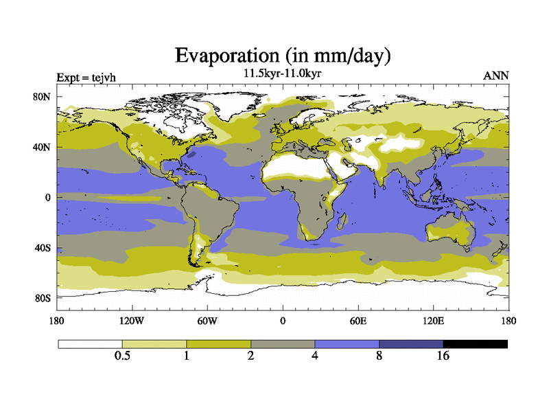 This is part of our deglaciation simulations. All forcings included except melt water fluxes. This series originally started from the tdphm spinup. Revised runoff maps, Russian rivers to Med. This vresion uses real meltwater fluxes. |