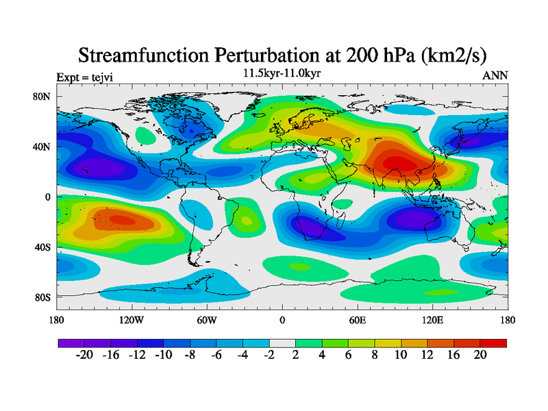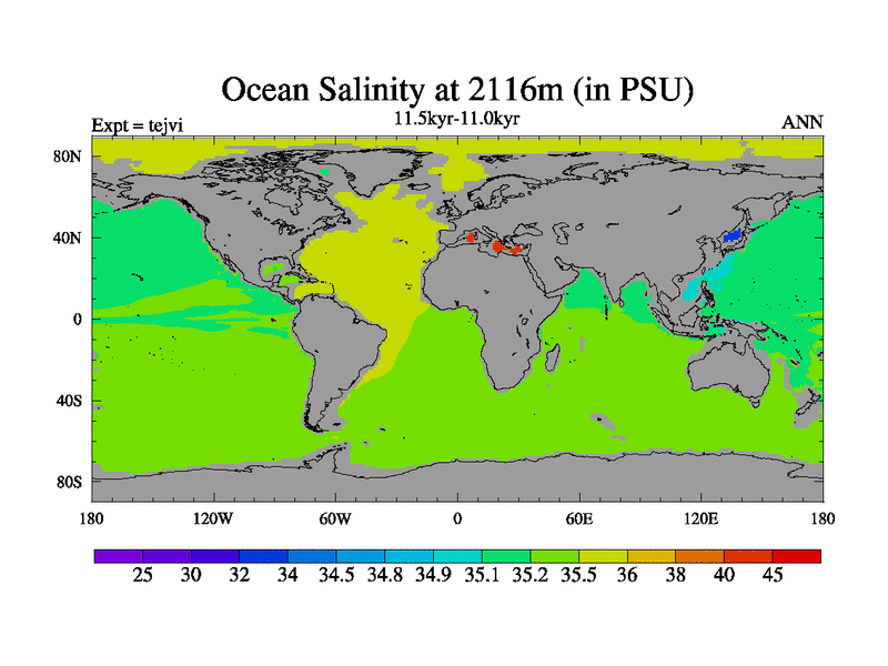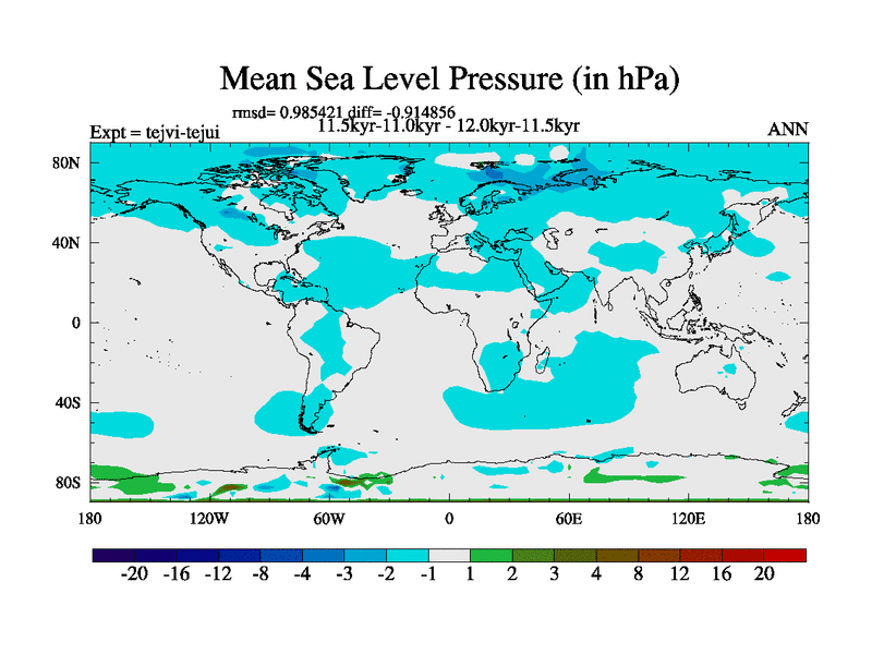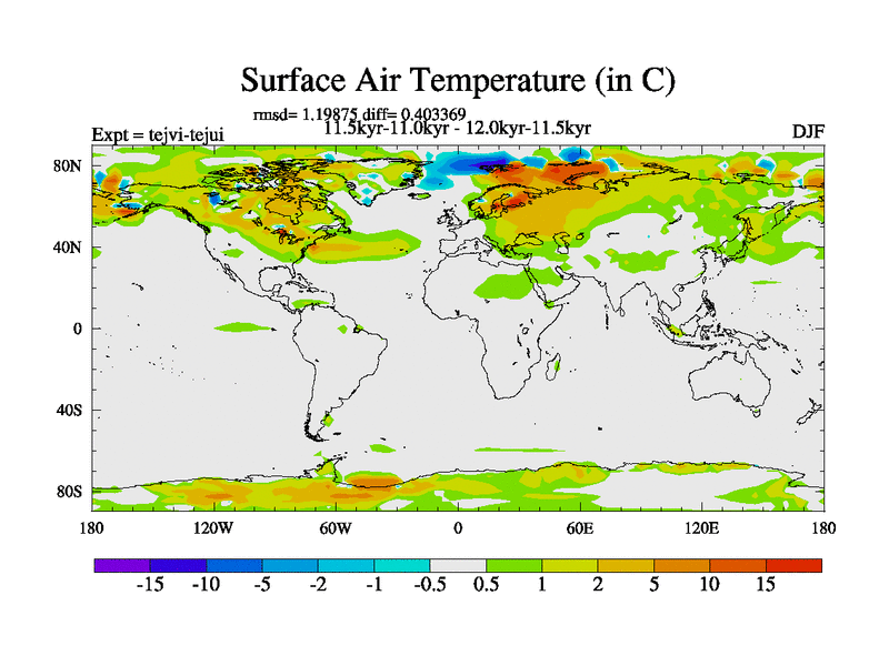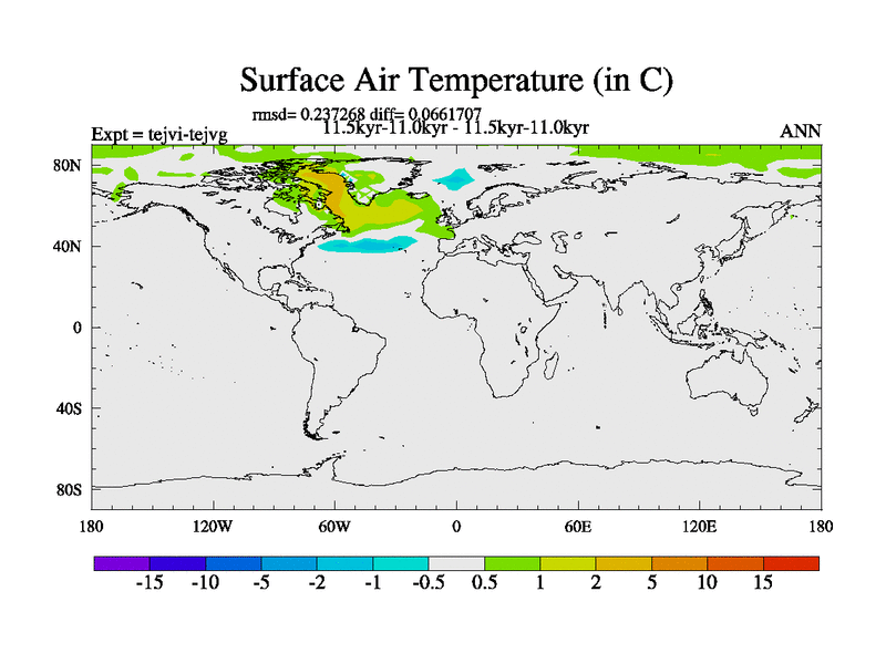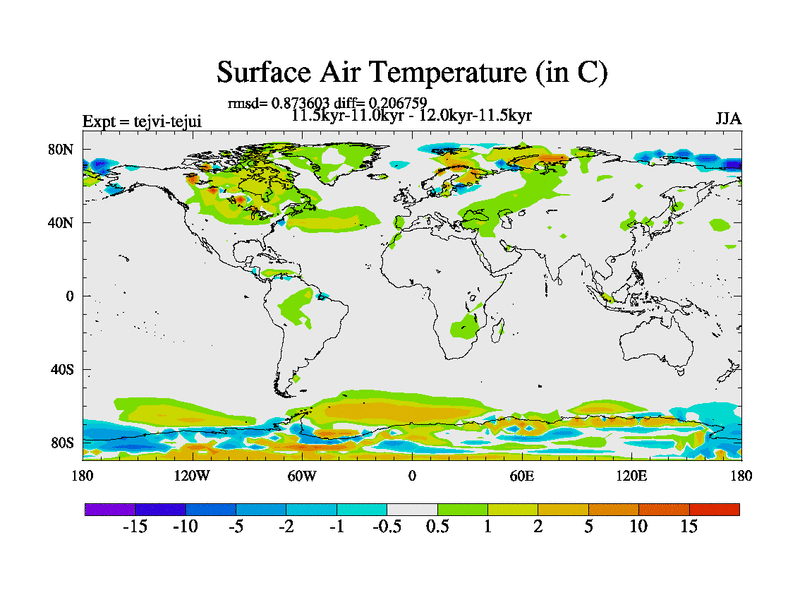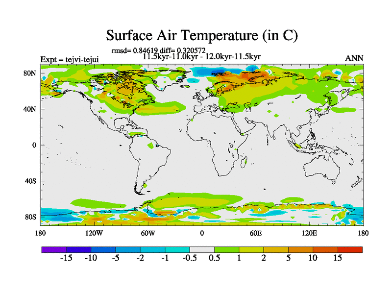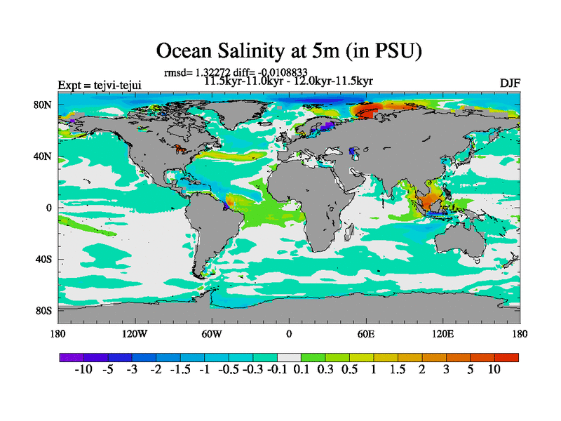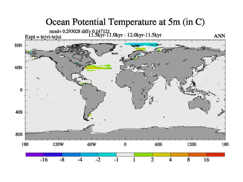 This is part of our deglaciation simulations. All forcings included except melt water fluxes. This series originally started from the tdphl spinup. Revised runoff maps, Russian rivers to Arctic. |