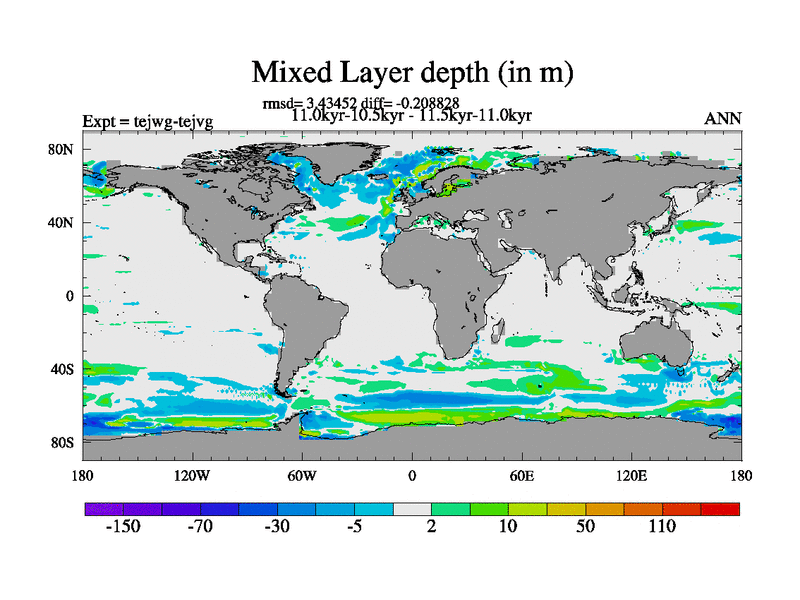 This is part of our deglaciation simulations. All forcings included except melt water fluxes. This series originally started from the tdphl spinup. Revised runoff maps, Russian rivers to Med. |