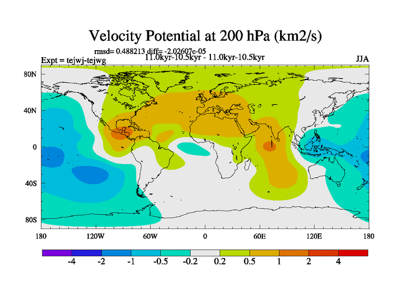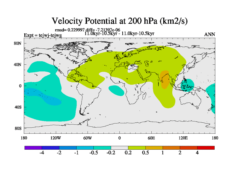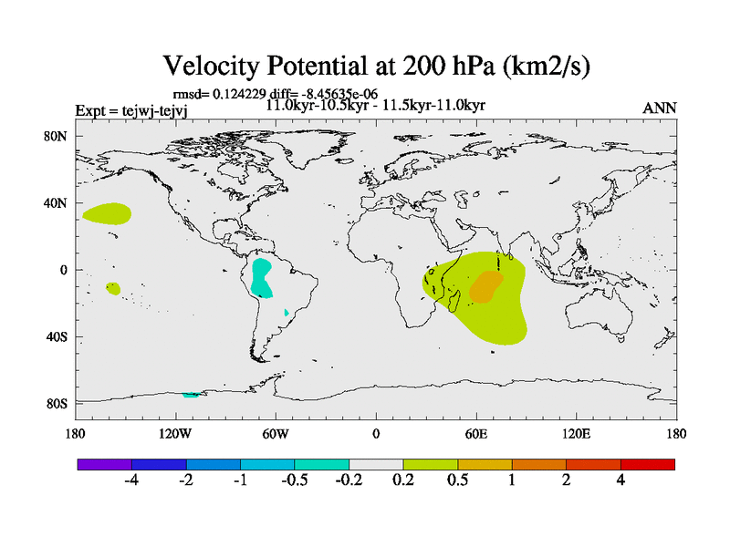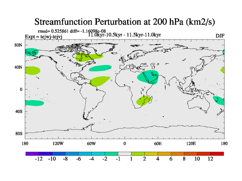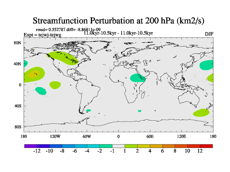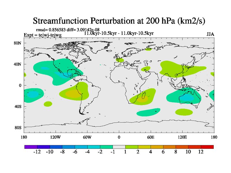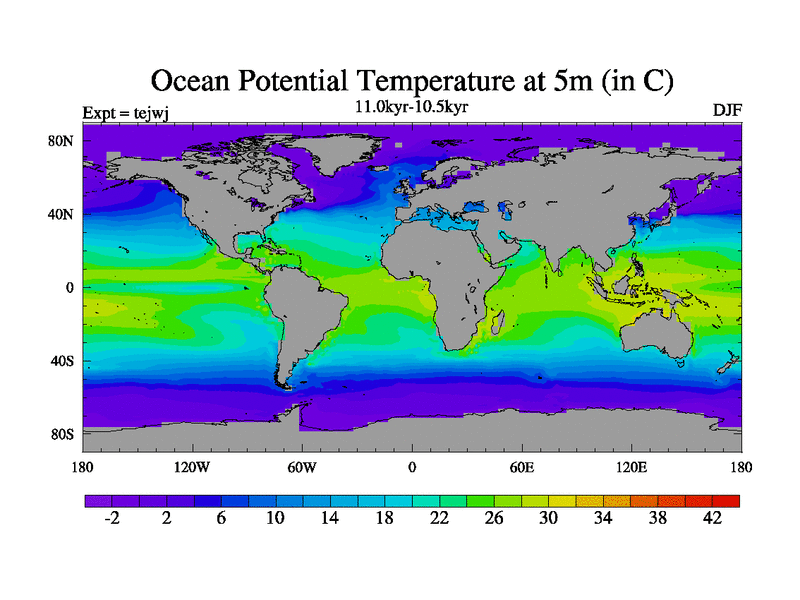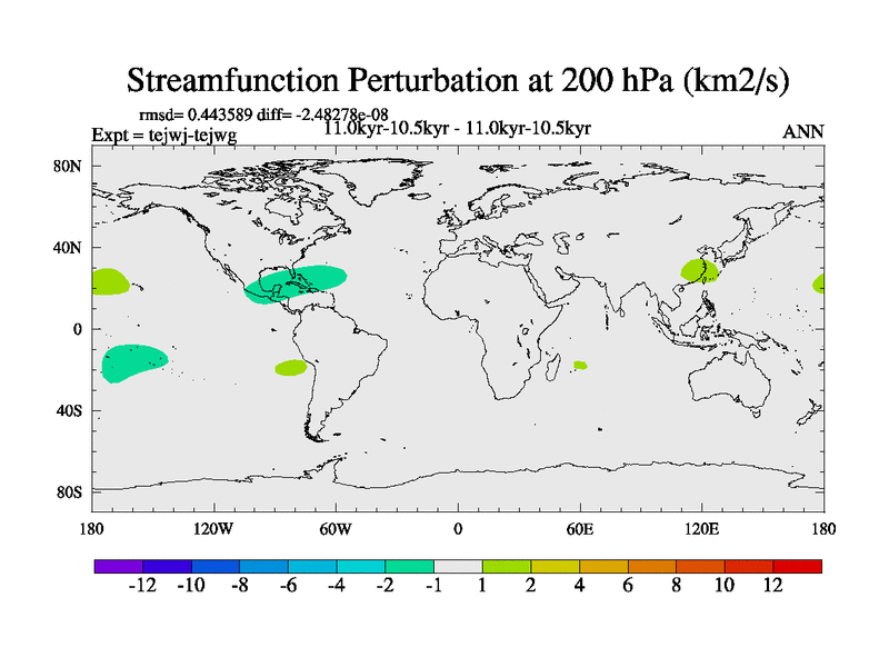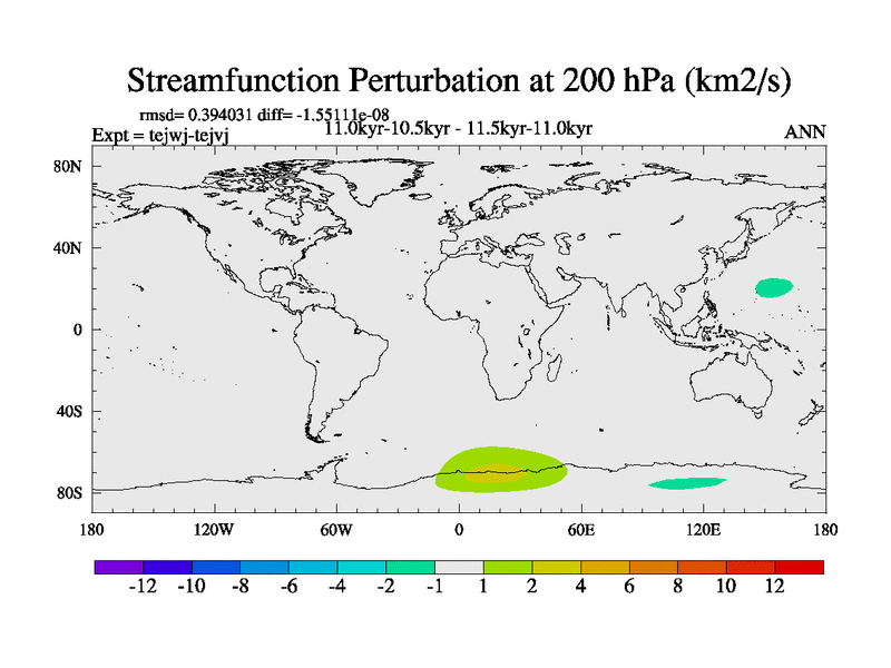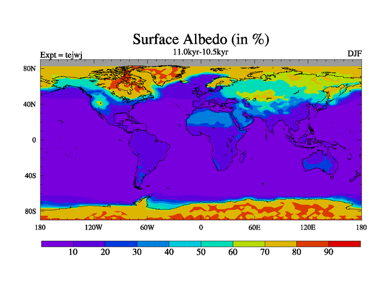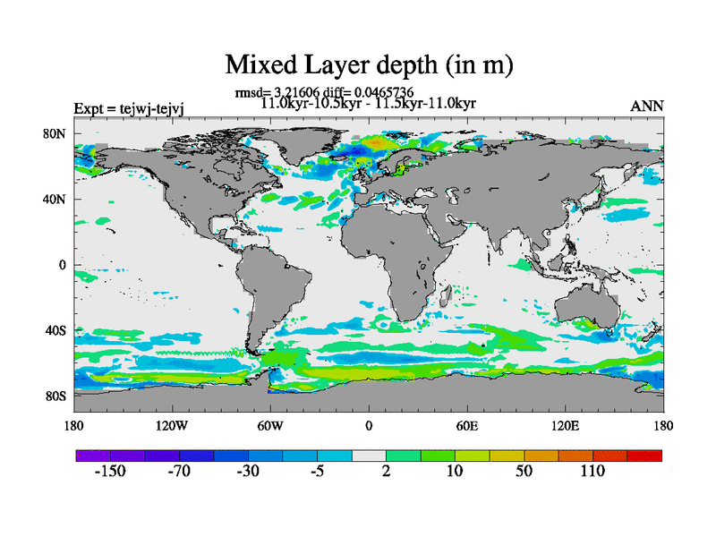 This is part of our deglaciation simulations. All forcings included except melt water fluxes. This series originally started from the tdphm spinup. Revised runoff maps, Russian rivers to Arctic. This vresion uses real meltwater fluxes. |