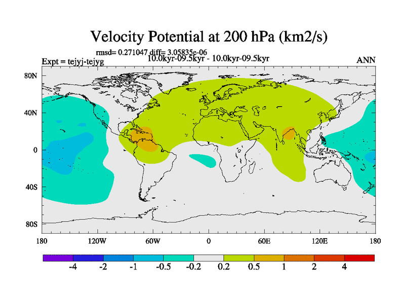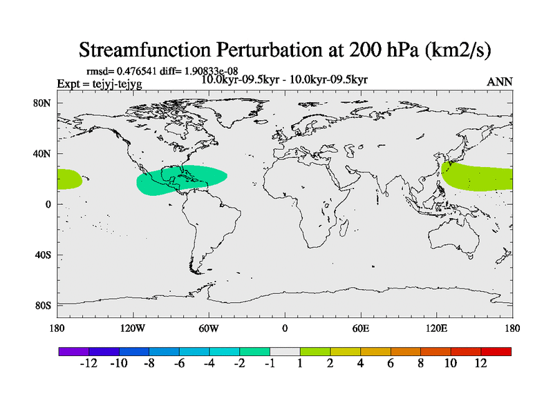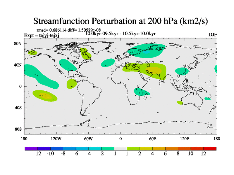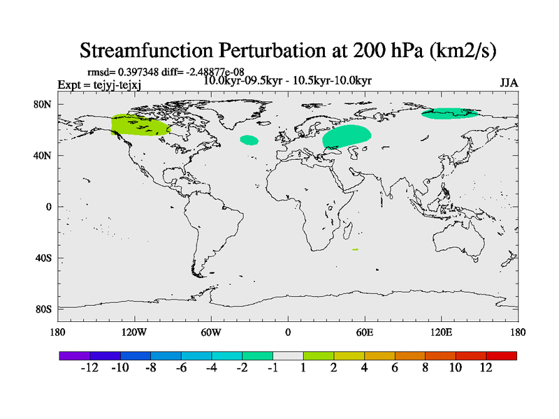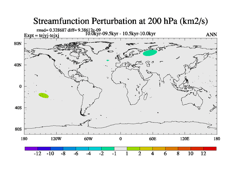 This is part of our deglaciation simulations. All forcings included except melt water fluxes. This series originally started from the tdphm spinup. Revised runoff maps, Russian rivers to Arctic. This vresion uses real meltwater fluxes. |