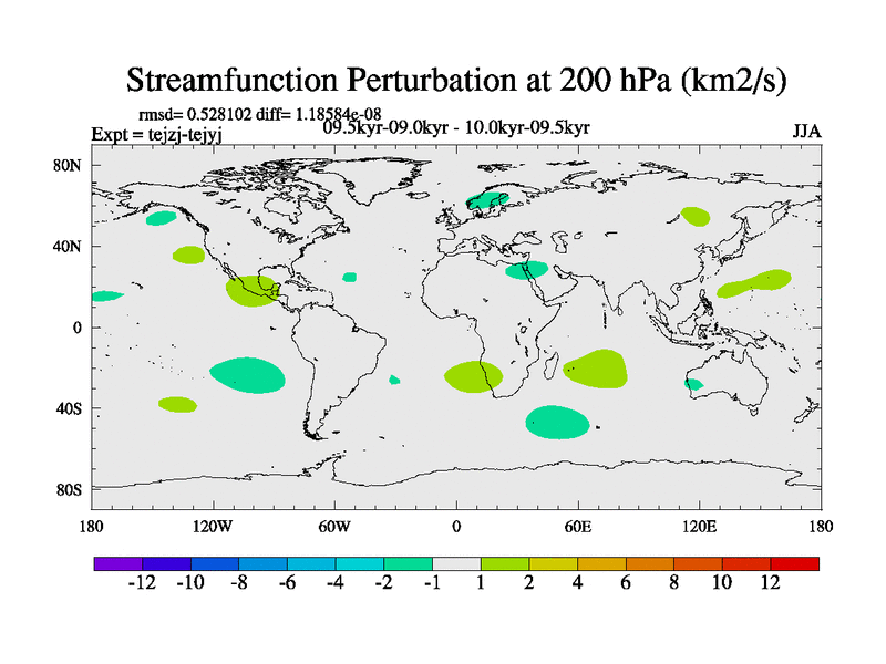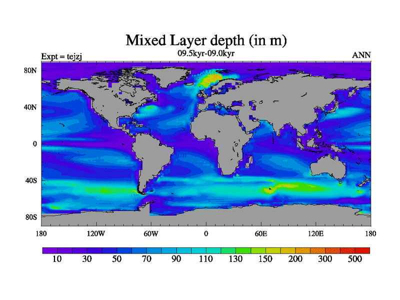 This is part of our deglaciation simulations. All forcings included except melt water fluxes. This series originally started from the tdphm spinup. Revised runoff maps, Russian rivers to Arctic. This vresion uses real meltwater fluxes. |