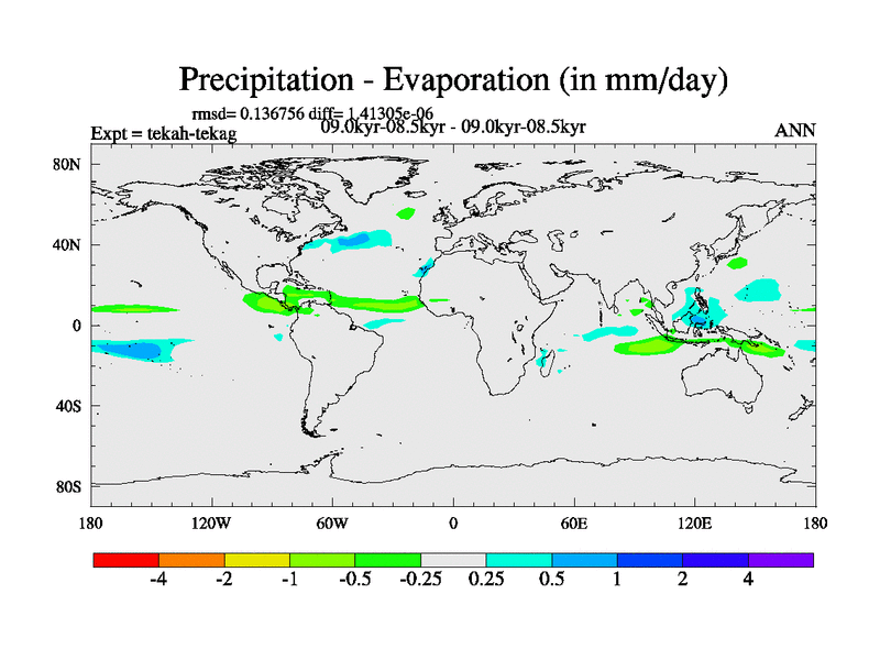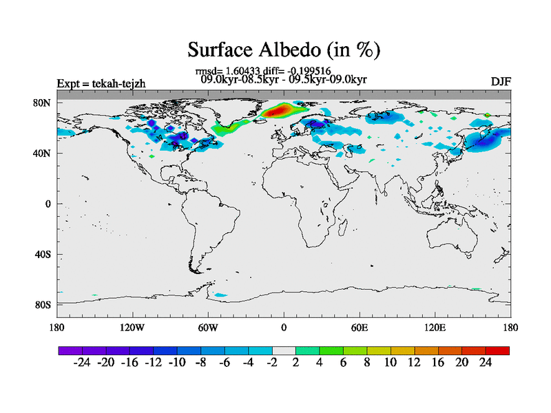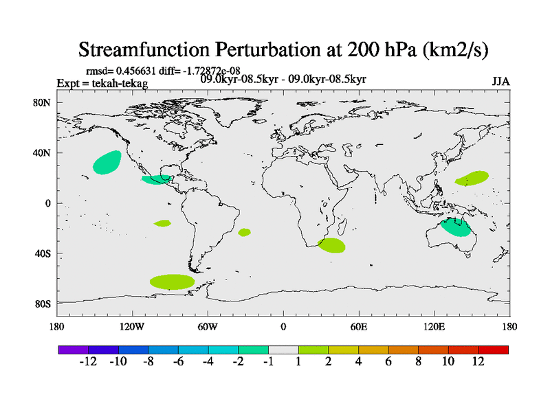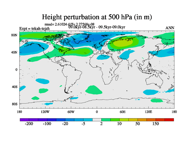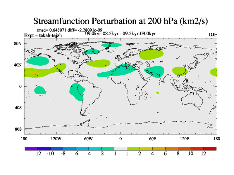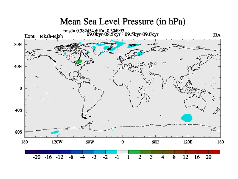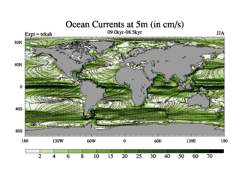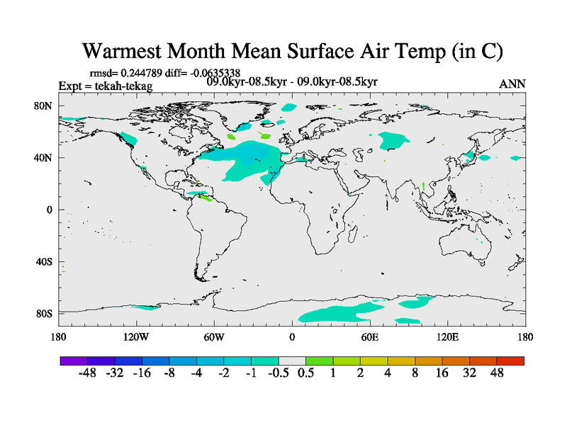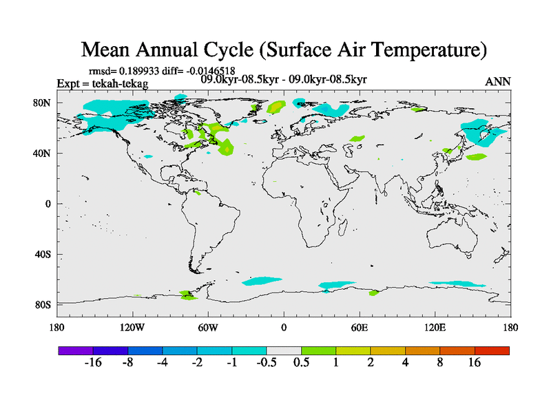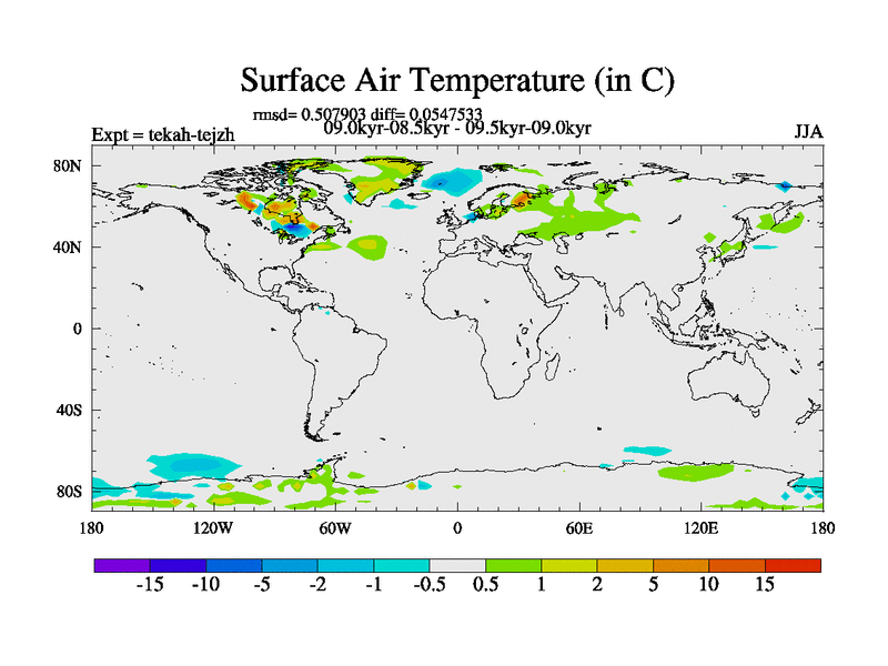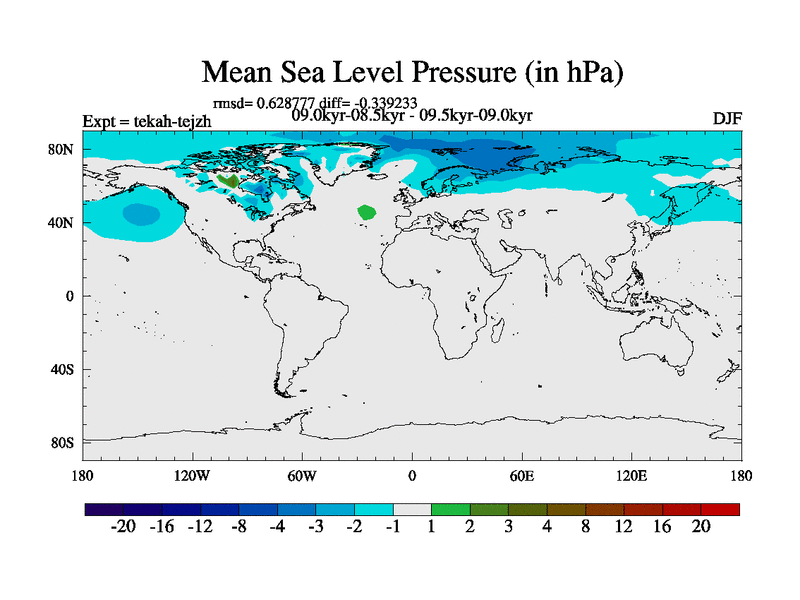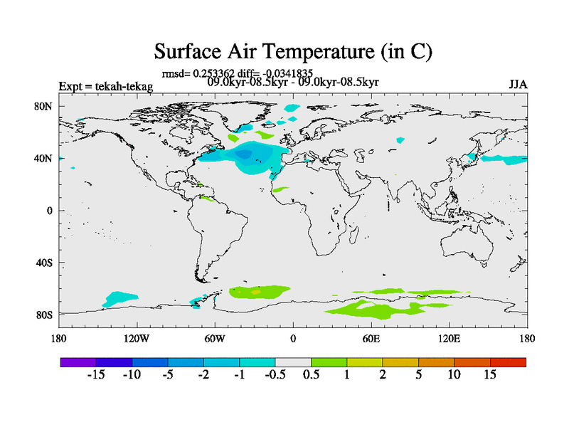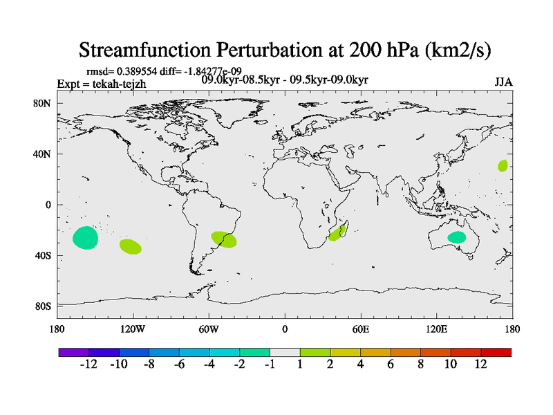 This is part of our deglaciation simulations. All forcings included except melt water fluxes. This series originally started from the tdphm spinup. Revised runoff maps, Russian rivers to Med. This vresion uses real meltwater fluxes. |