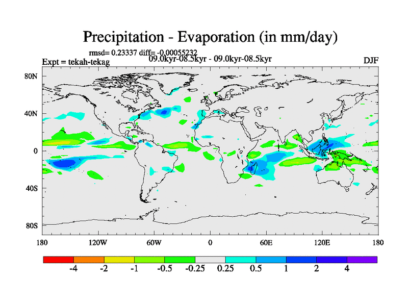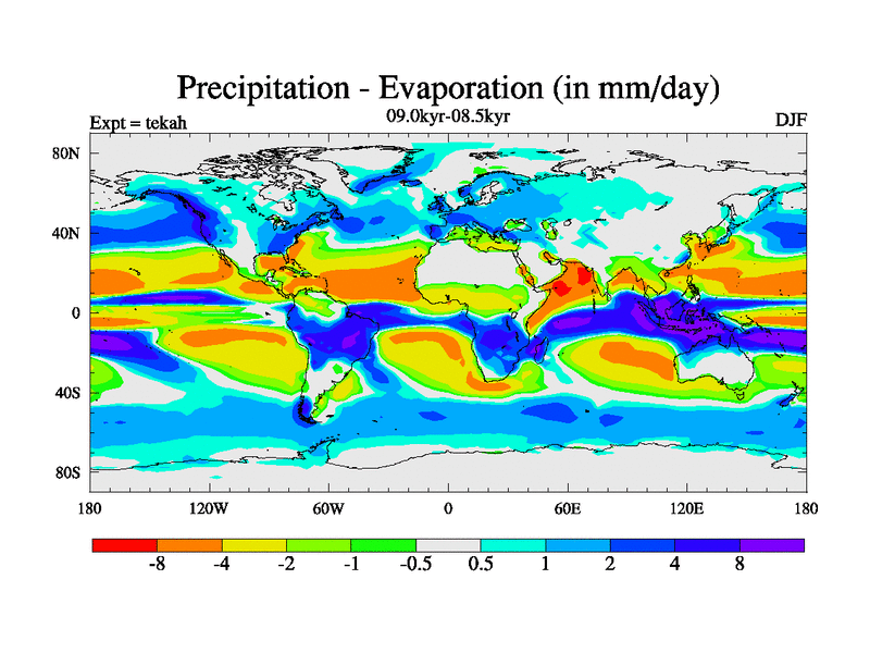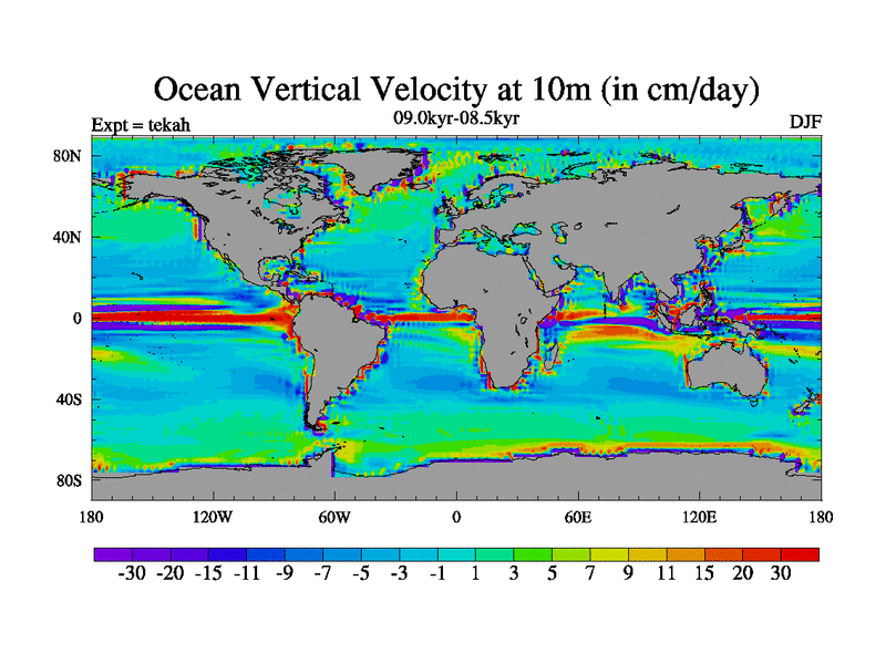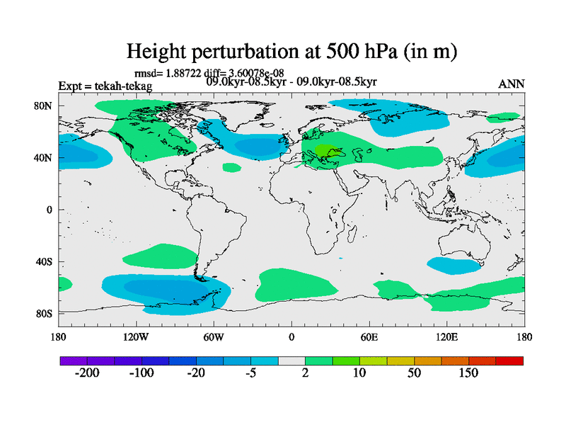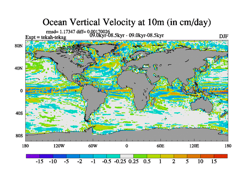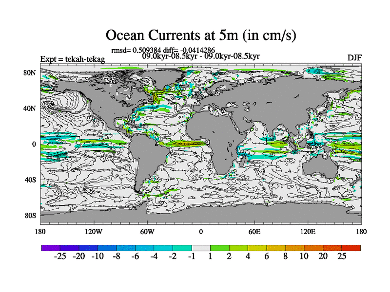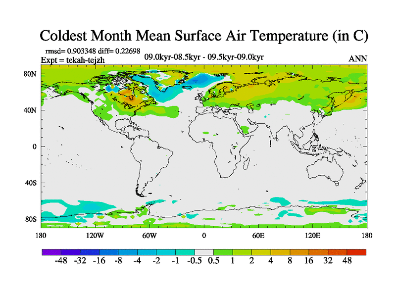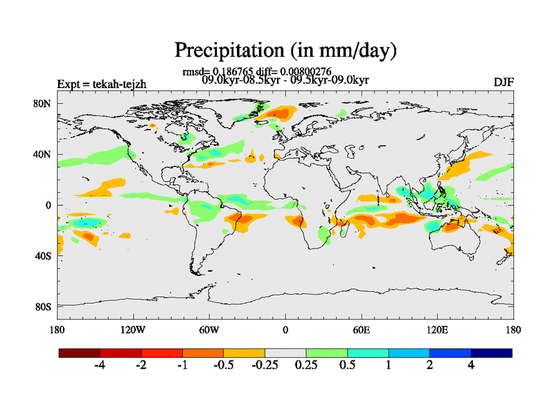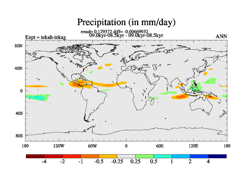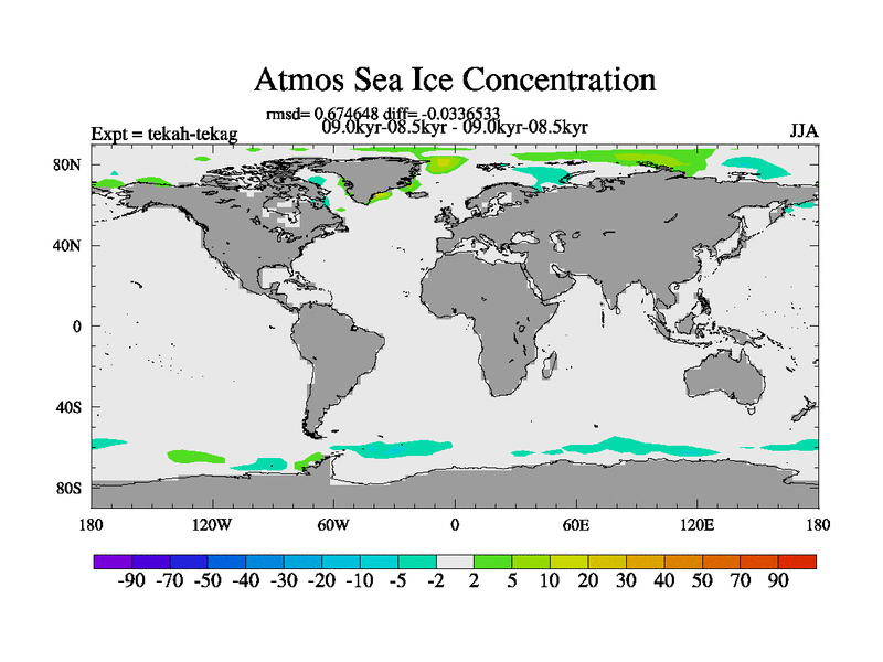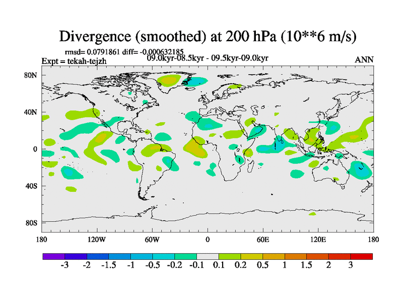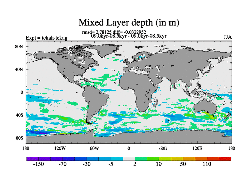 This is part of our deglaciation simulations. All forcings included except melt water fluxes. This series originally started from the tdphm spinup. Revised runoff maps, Russian rivers to Med. This vresion uses real meltwater fluxes. |