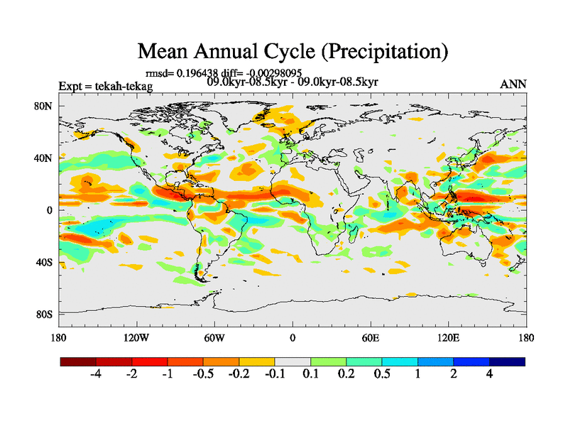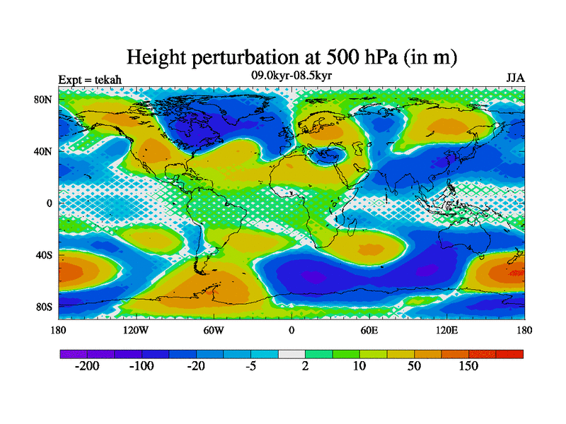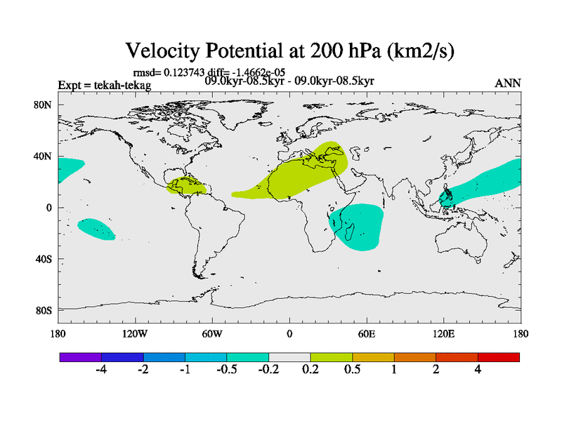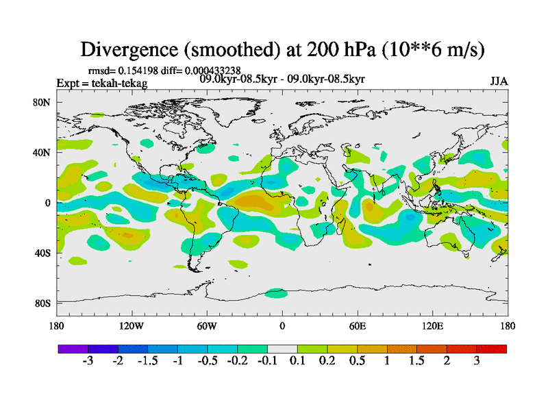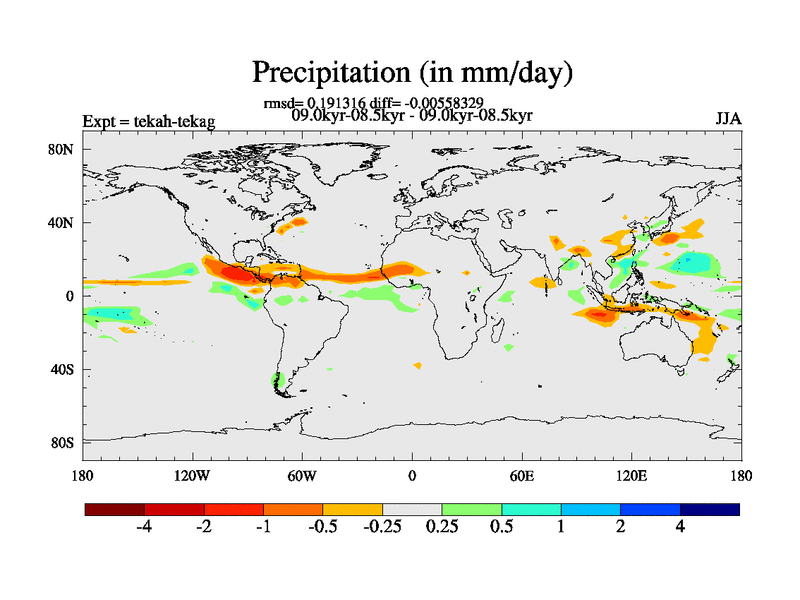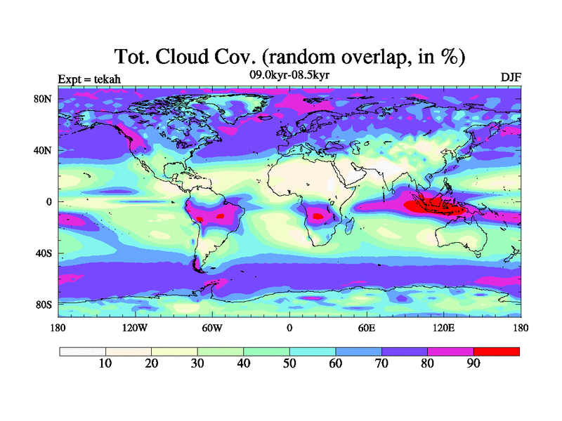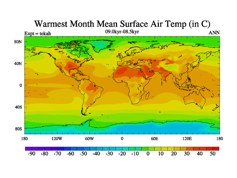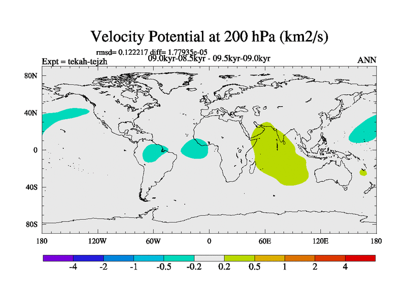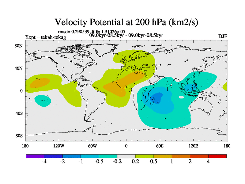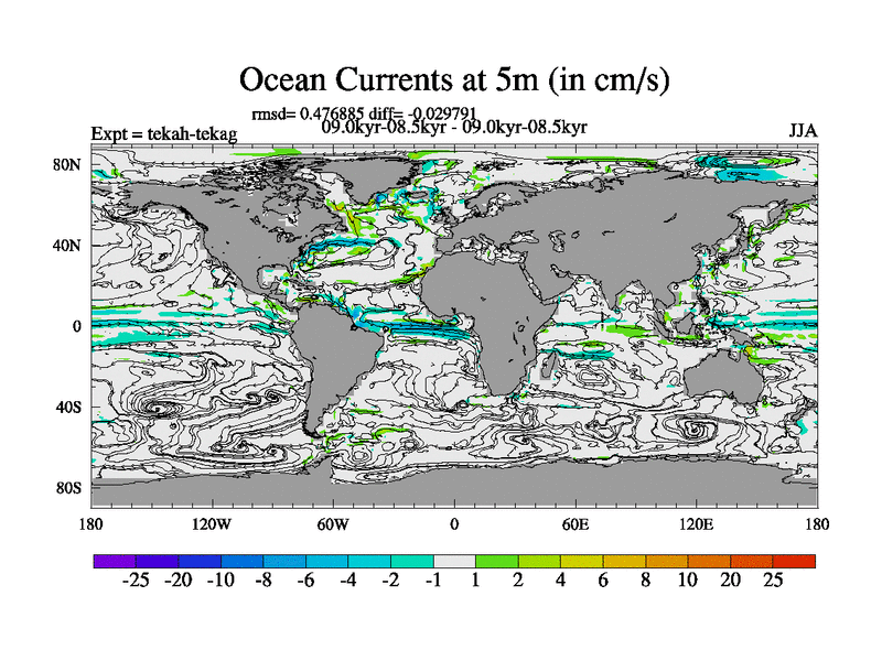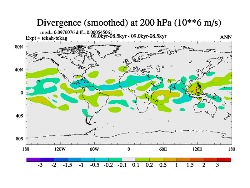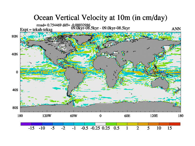 This is part of our deglaciation simulations. All forcings included except melt water fluxes. This series originally started from the tdphm spinup. Revised runoff maps, Russian rivers to Med. This vresion uses real meltwater fluxes. |
