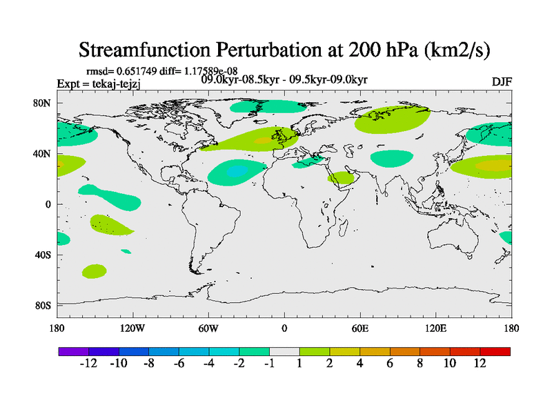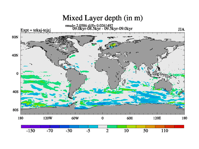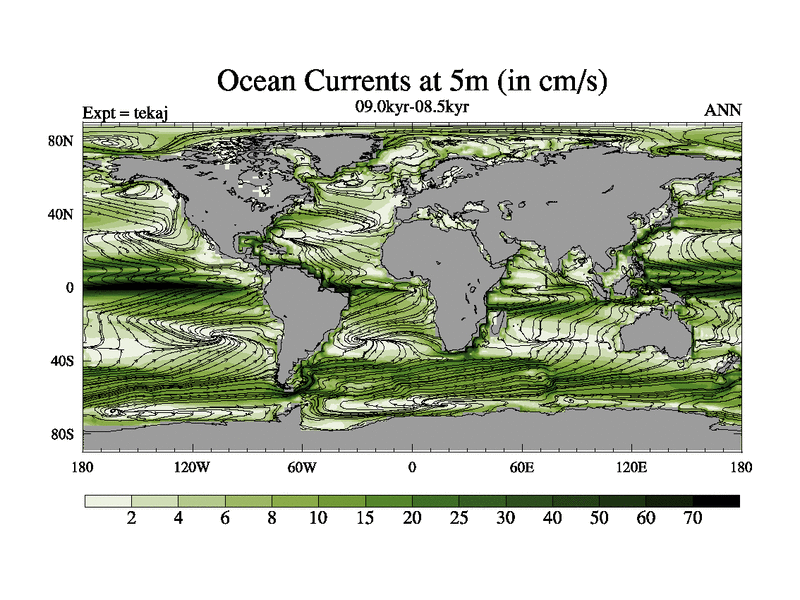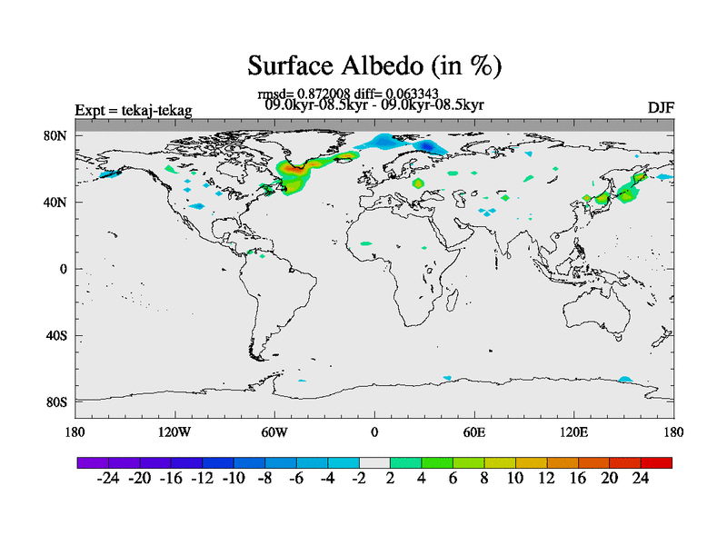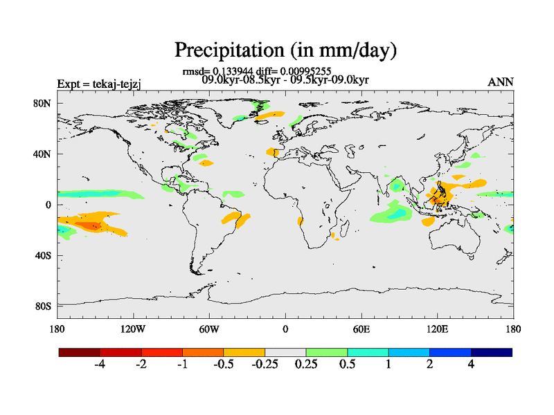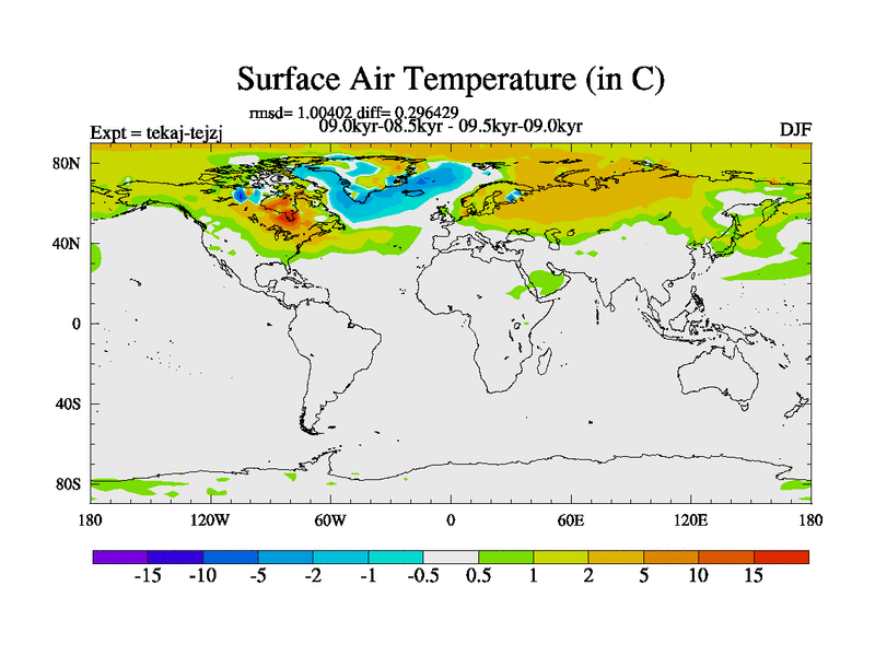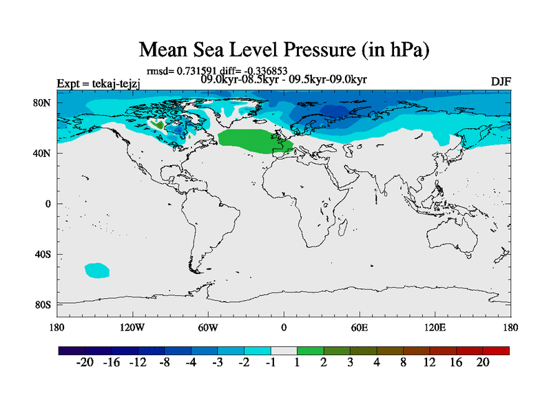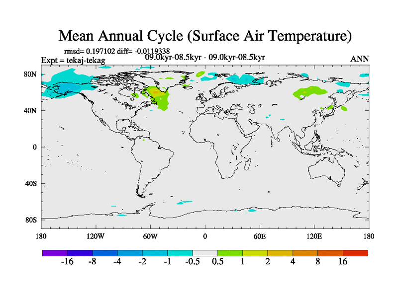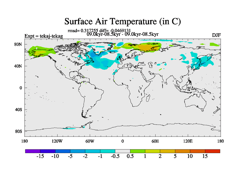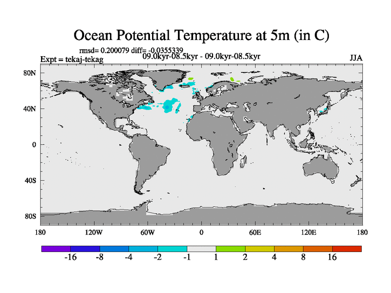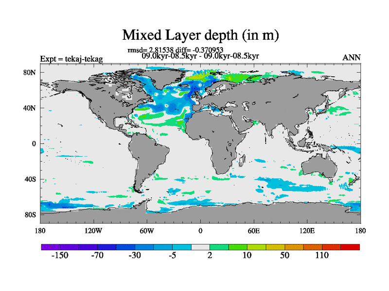 This is part of our deglaciation simulations. All forcings included except melt water fluxes. This series originally started from the tdphm spinup. Revised runoff maps, Russian rivers to Arctic. This vresion uses real meltwater fluxes. |